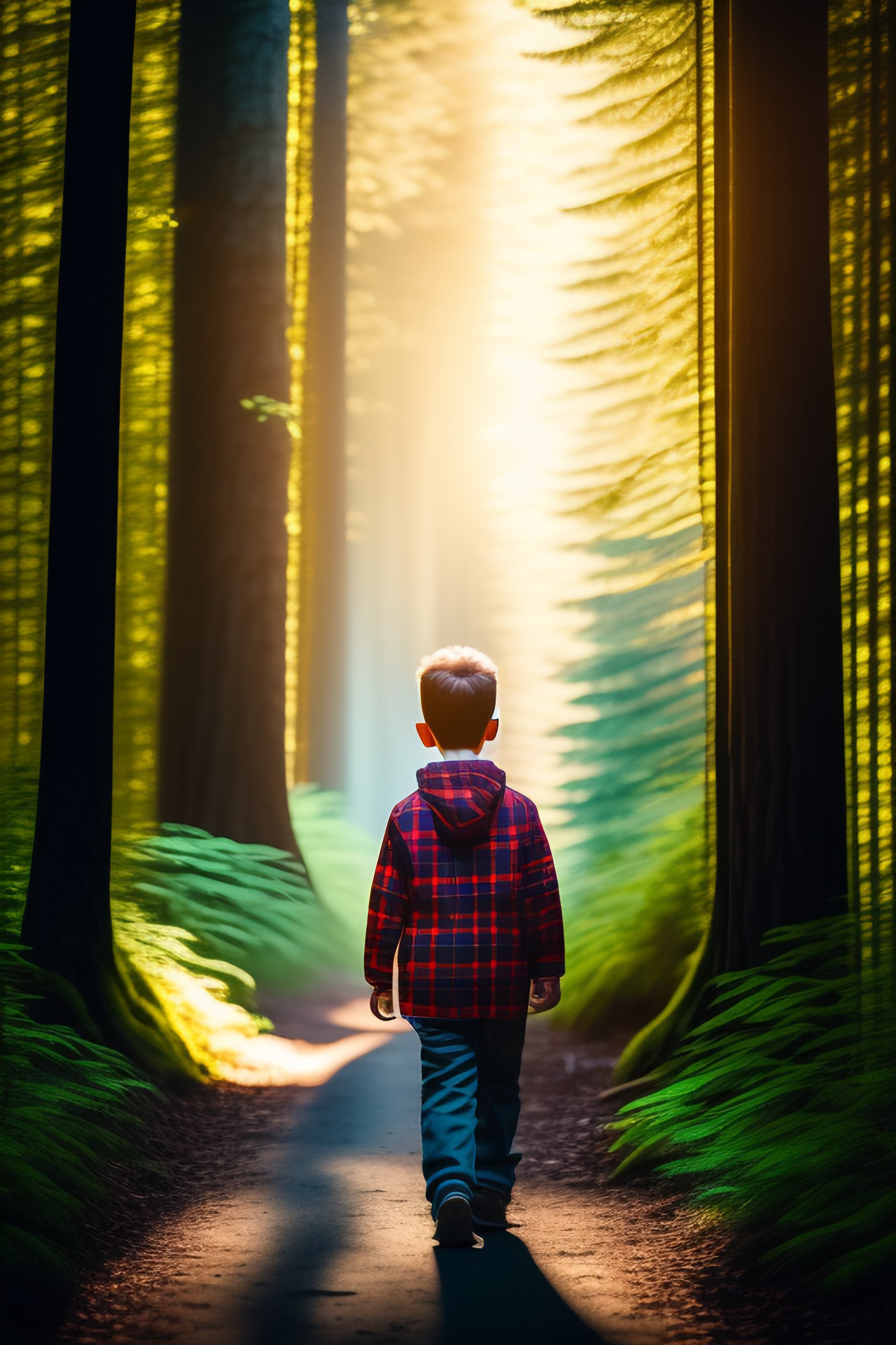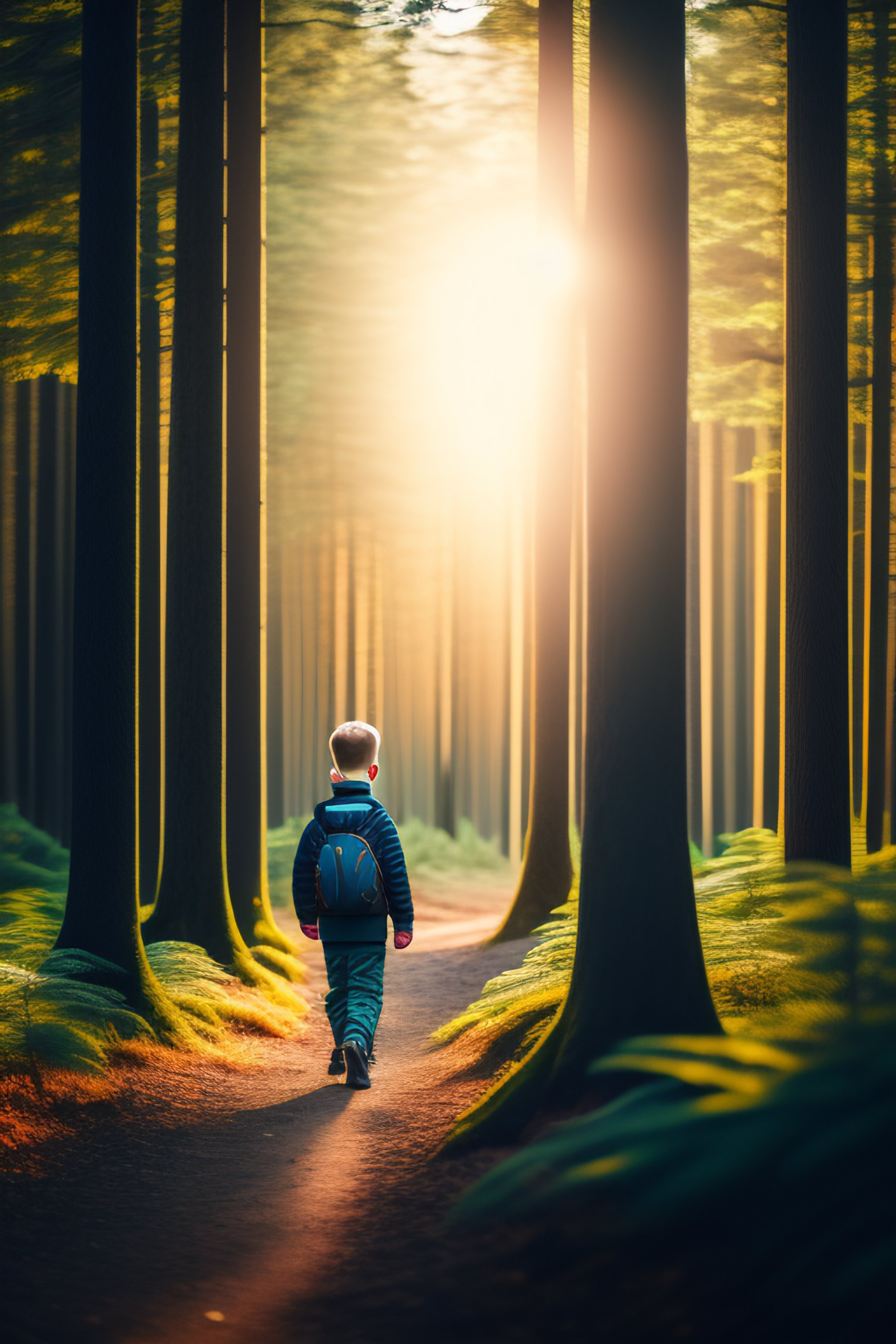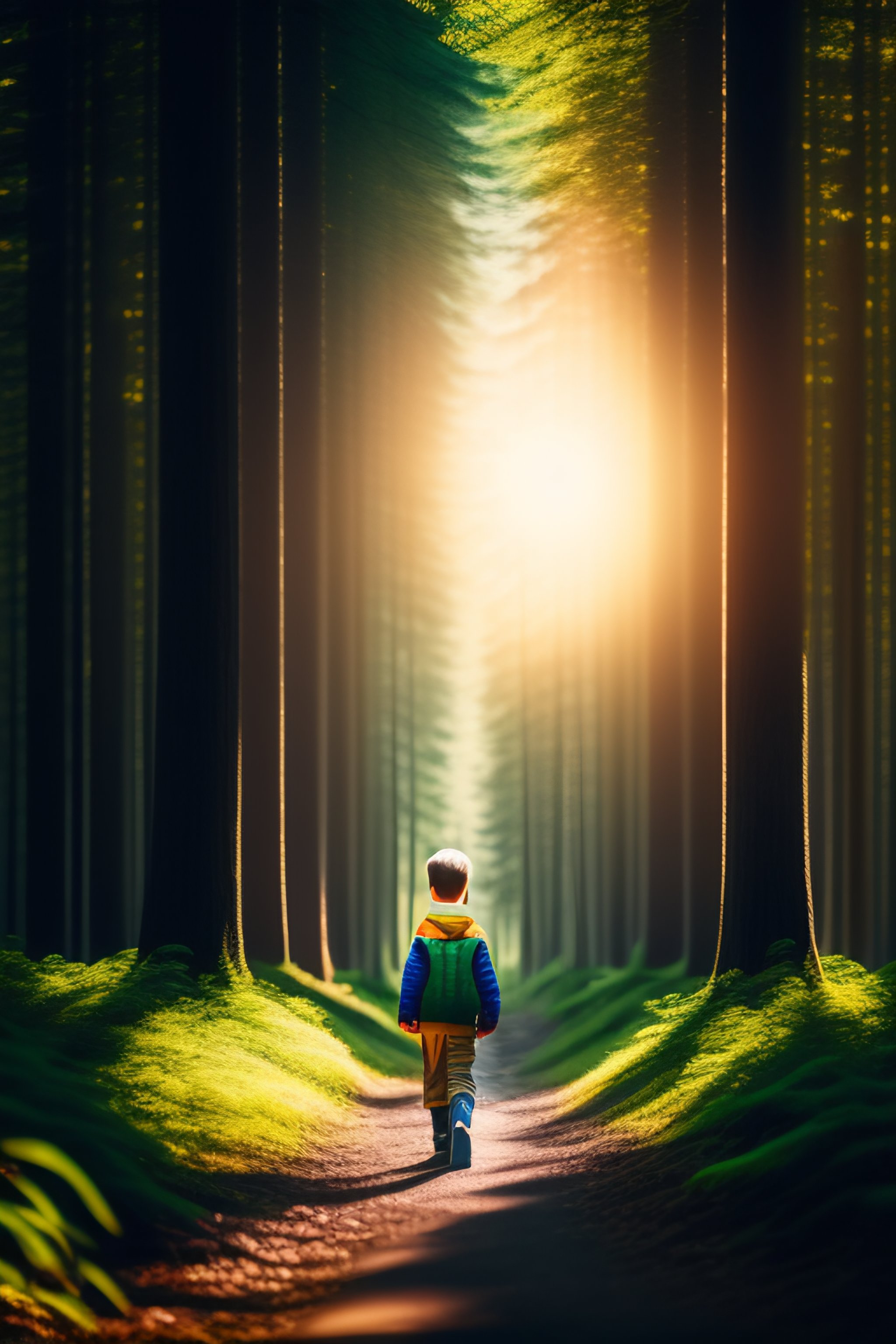 Boy walking alone in th forest