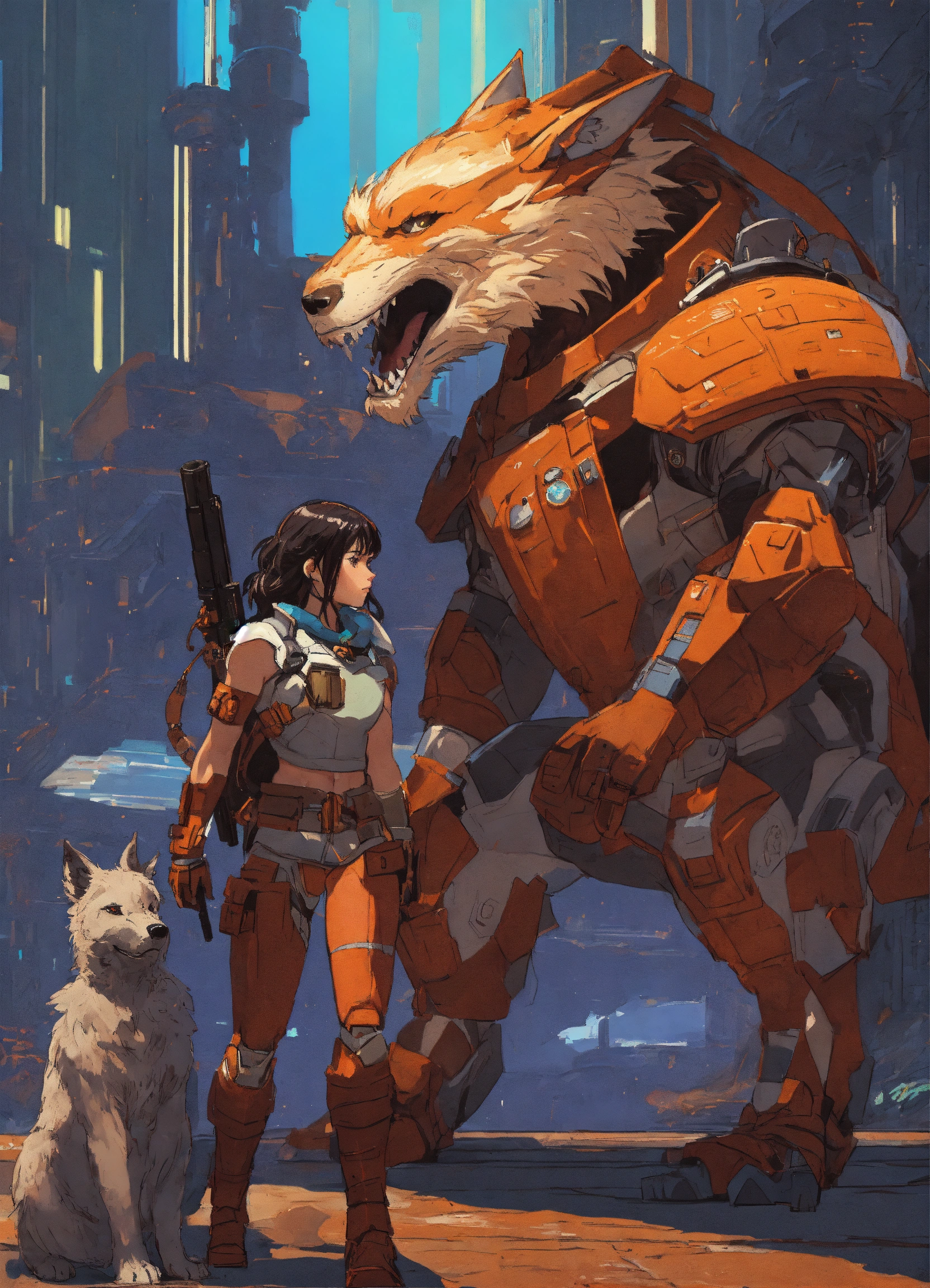 Male and female werewolves\raven athletic cyborg men and women in 60th century dragon-like muscular humanoid in full body armor holding 5965 a.d. advanced star wars-like weapons in a photo of a quetzal armored figure fighting on a detailed advanced futuristic civilized back-drop densely worlds with metallic chrome dragons on land and in space with the style of laurie greasley, studio ghibli, akira tomiyama, gene roddenberry, george lucas, james gilliard, genshin impact, trending pixiv fanbox, acrylic palette knife, 4k, chrome, vibrant colors, deviantart, trending on artstation, all highly detailed