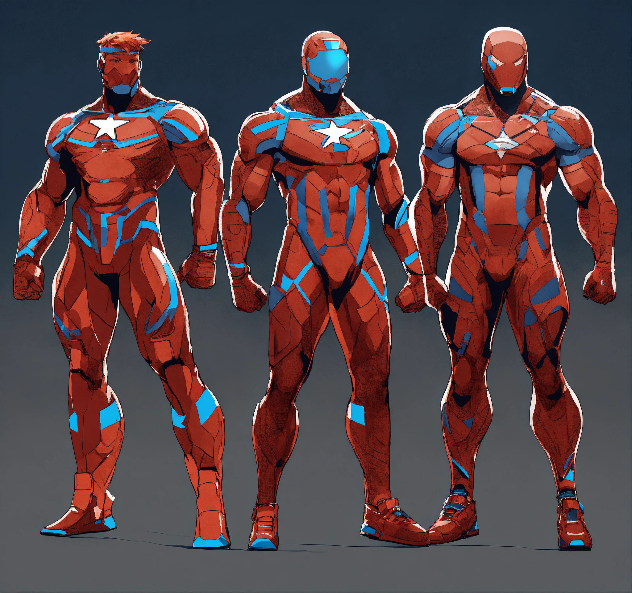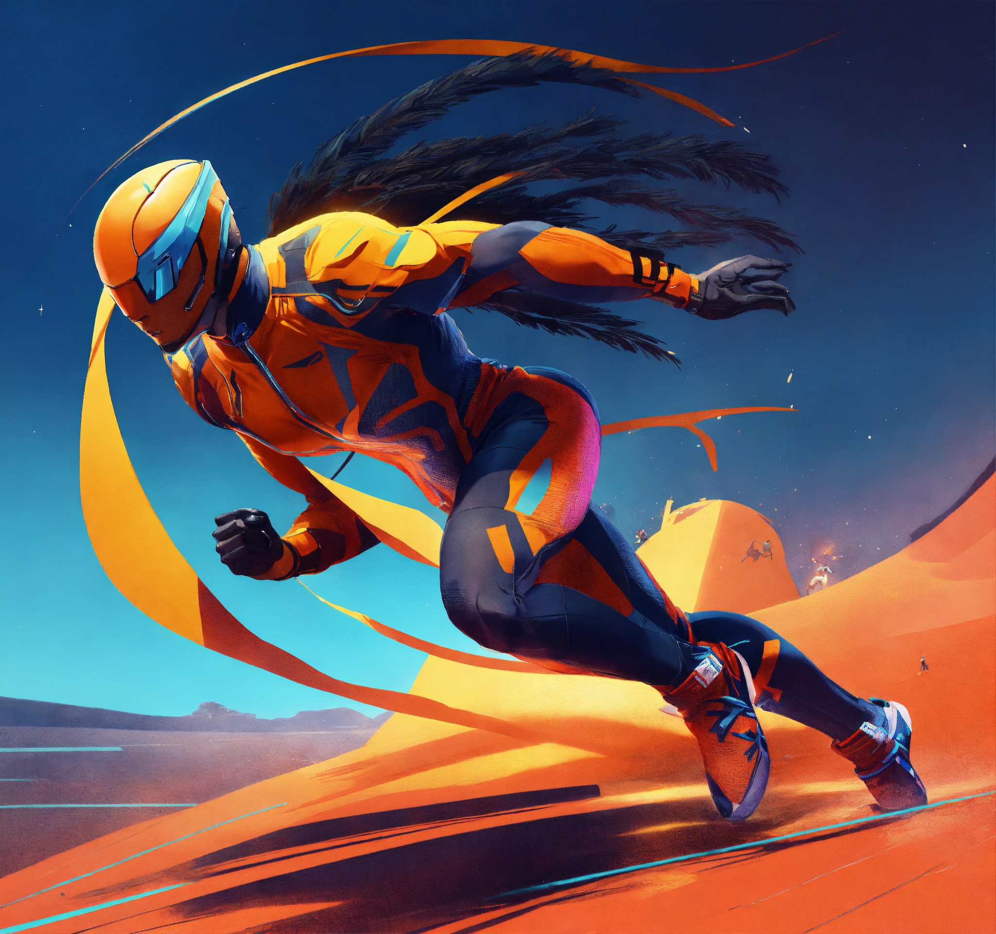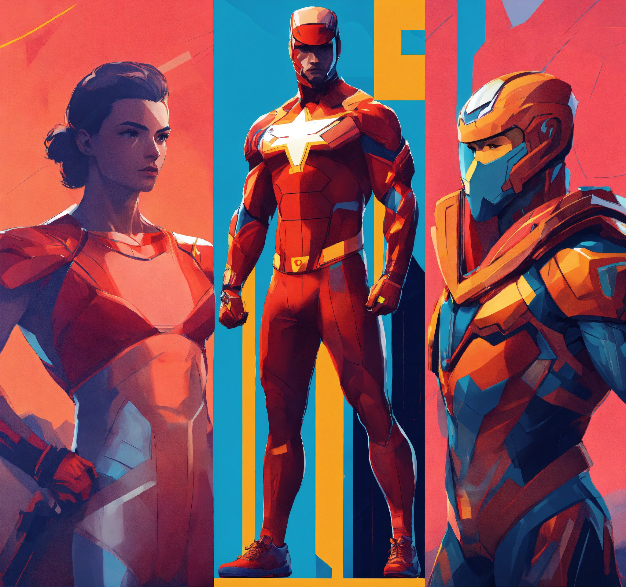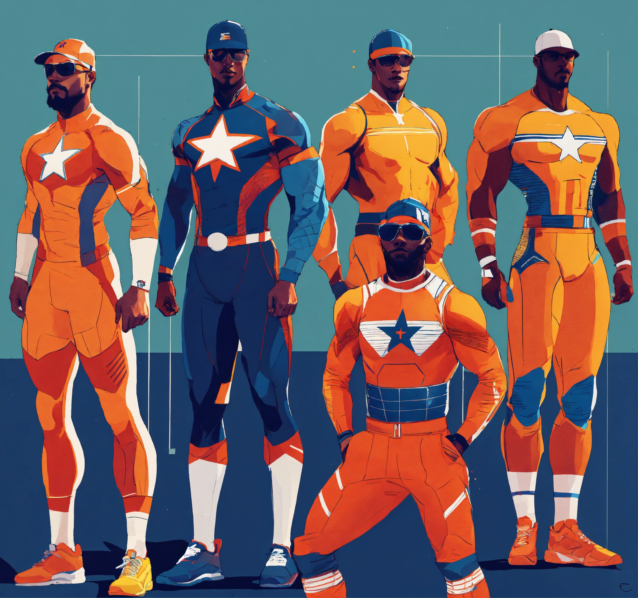 Futuristic athlete designs, strong silhouette, heroes from another age, hard edges, complex and vibrant, highly detailed, minimal and powerful, concept art, sport stars, athletic and dapper, classic, iconic