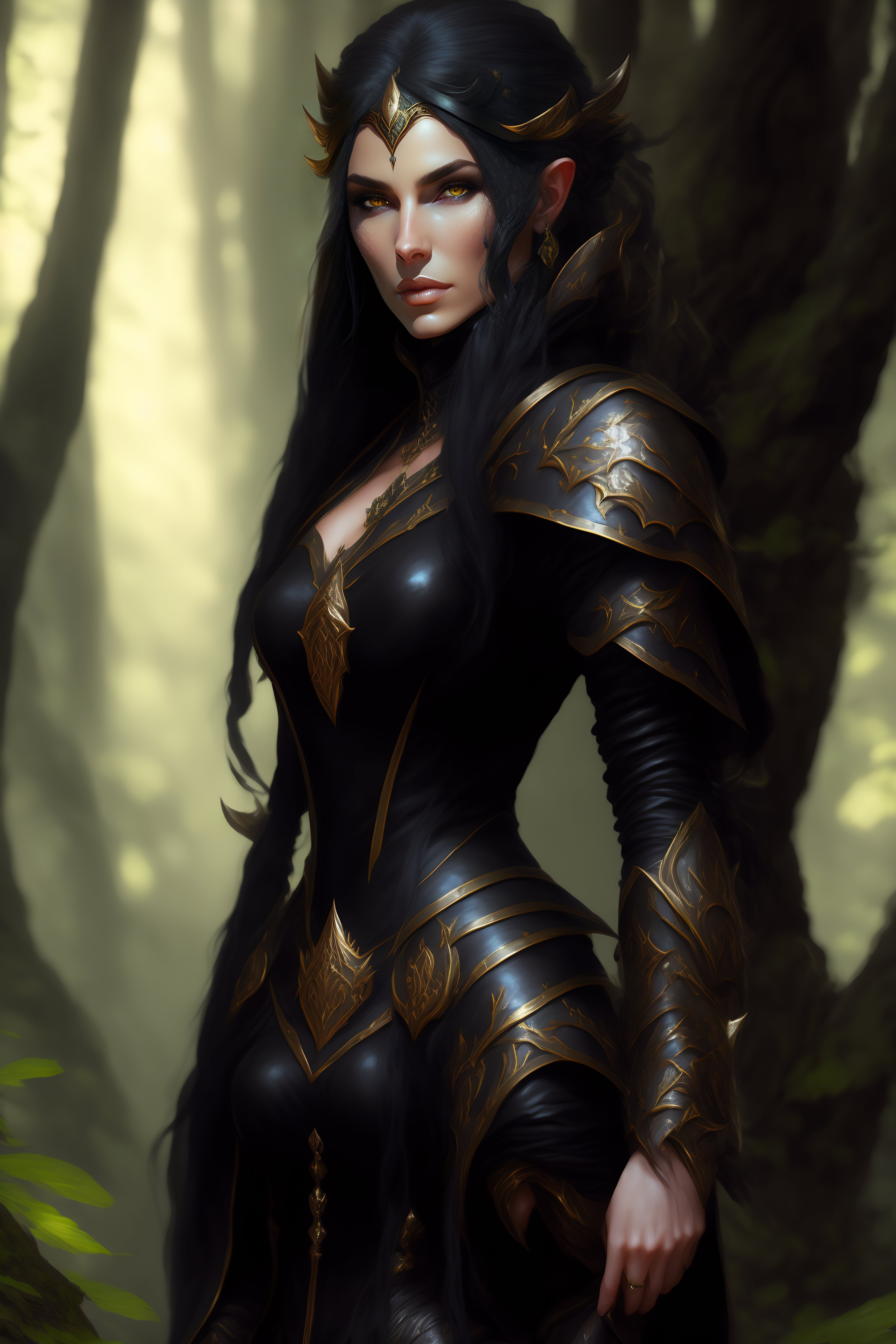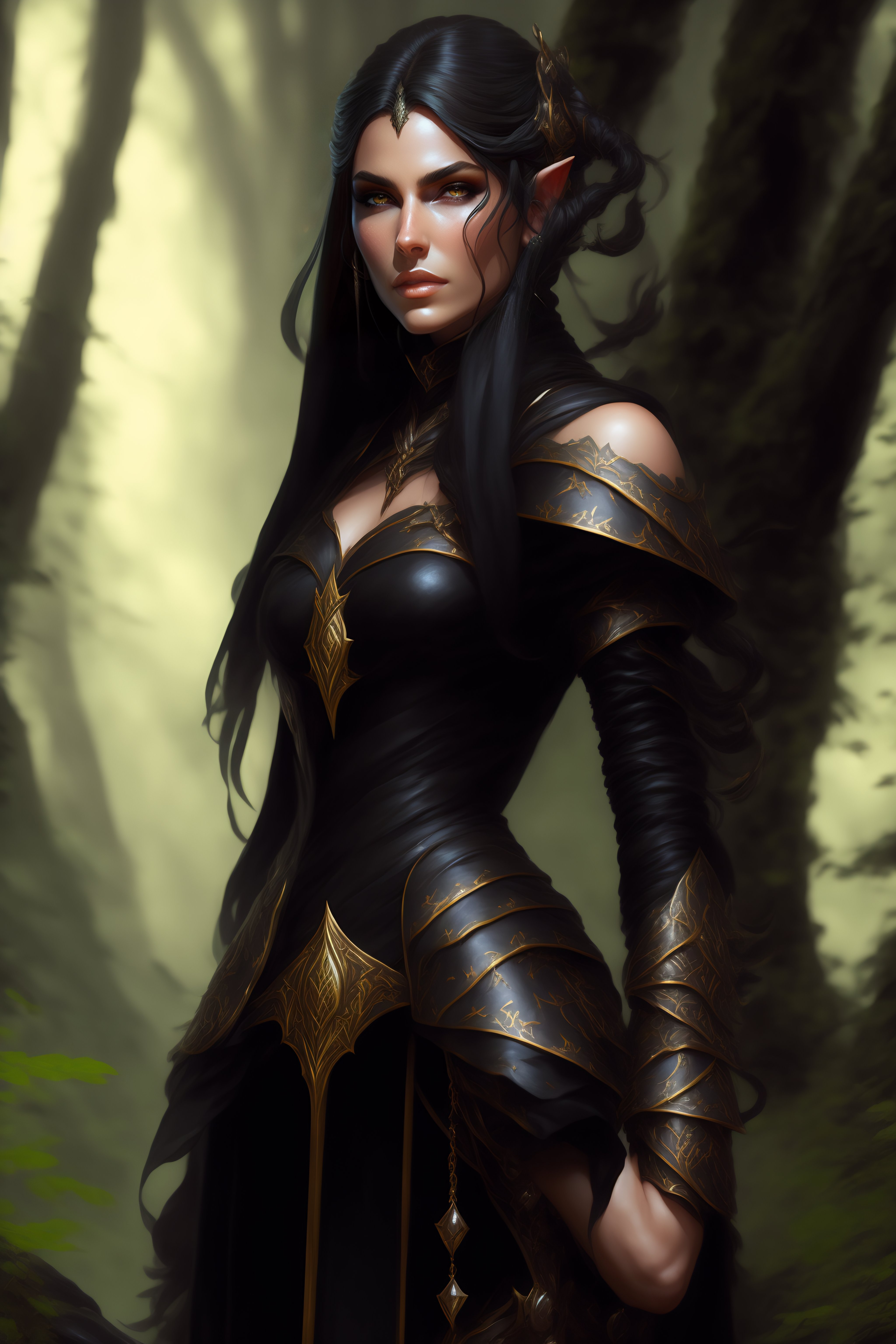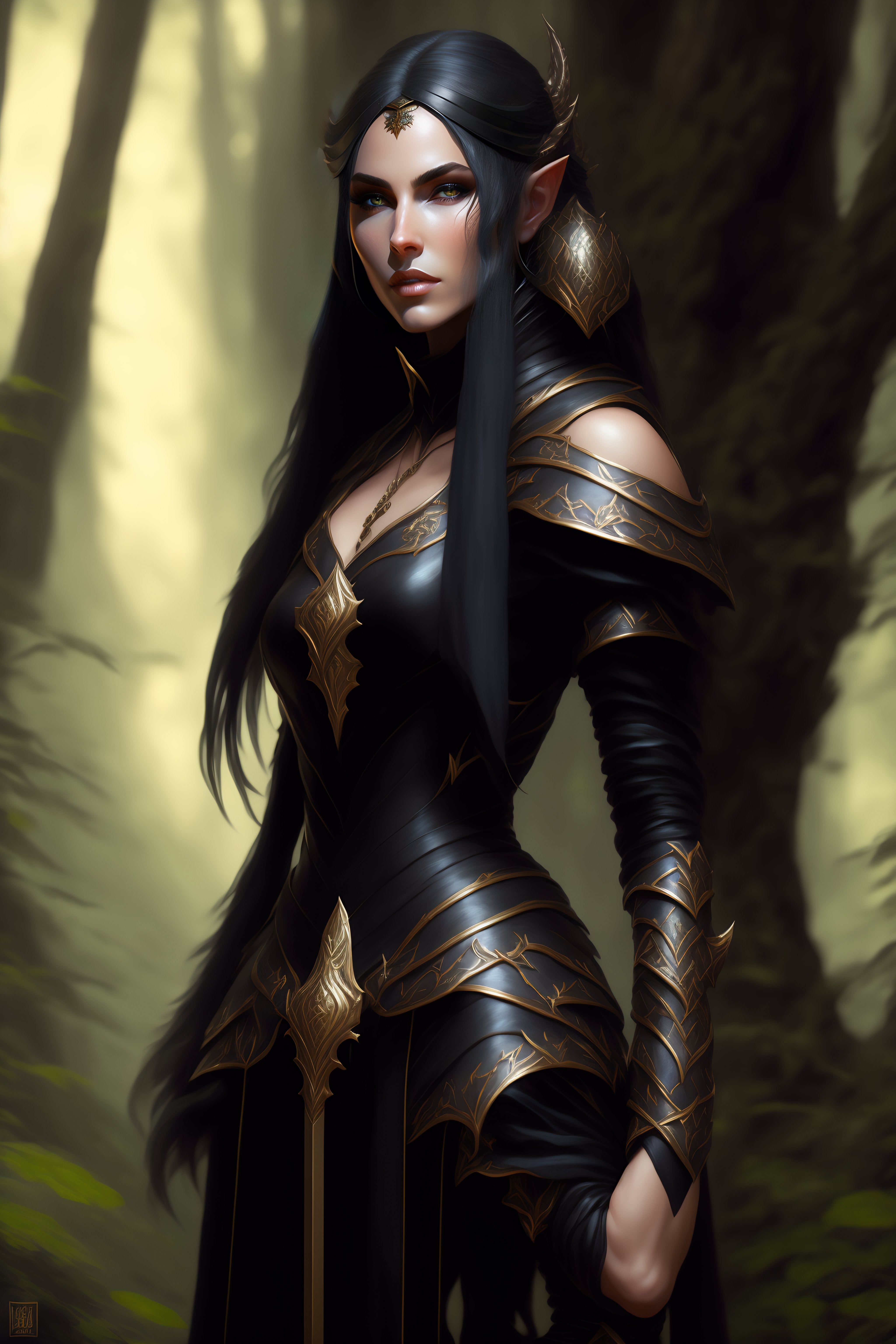 Rogue, elf female, black clothes, rapier in hand, full body, forest, d&d, fantasy, intricate, elegant, highly detailed, digital painting, artstation, octane render, concept art, matte, sharp focus, illustration, hearthstone, art by artgerm and greg rutkowski and alphonse mucha