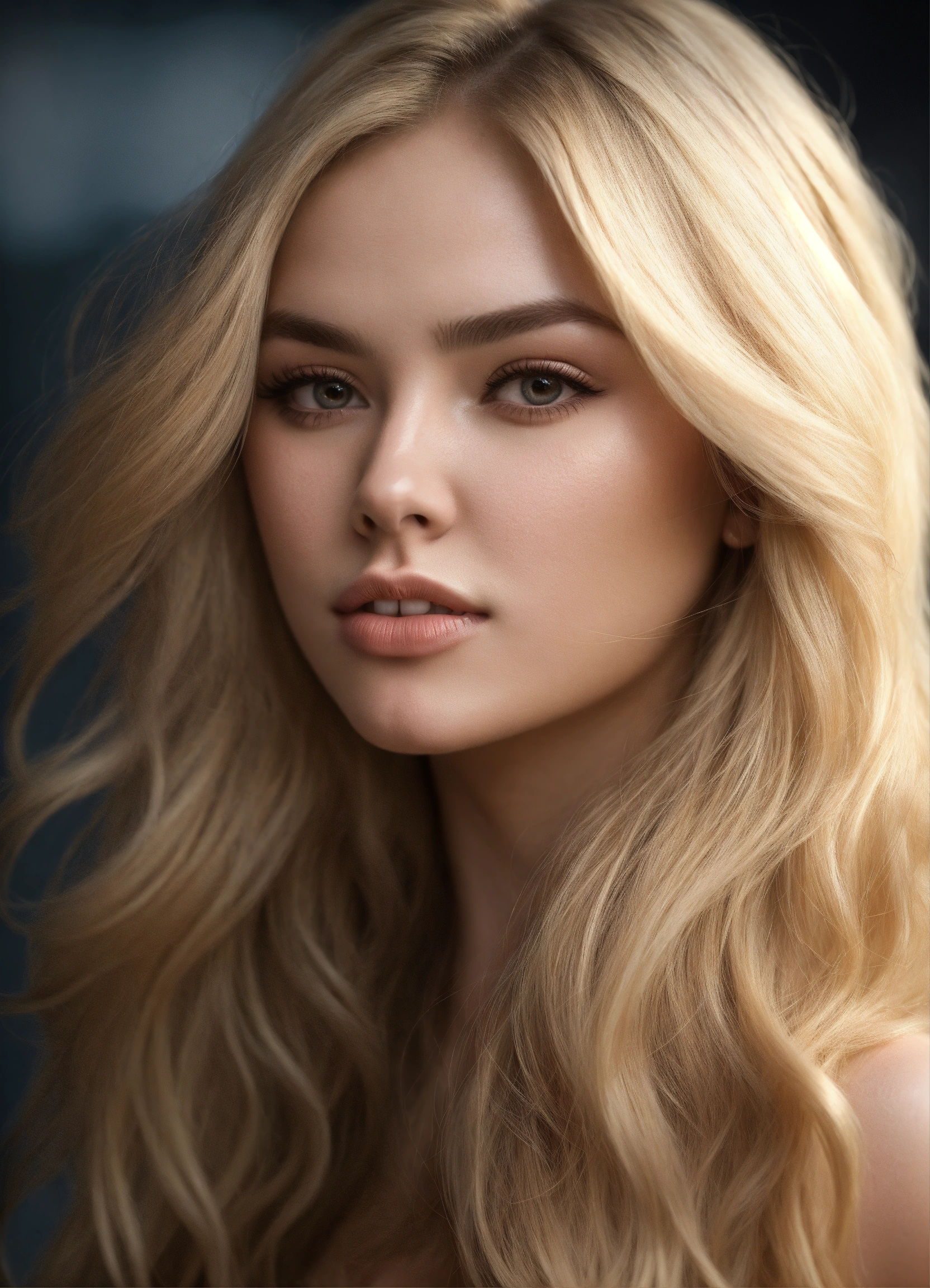 Ultra-realistic very innocent incredibly beautiful women with 20-year-old with full lips and long blonde hairs, photo realistic