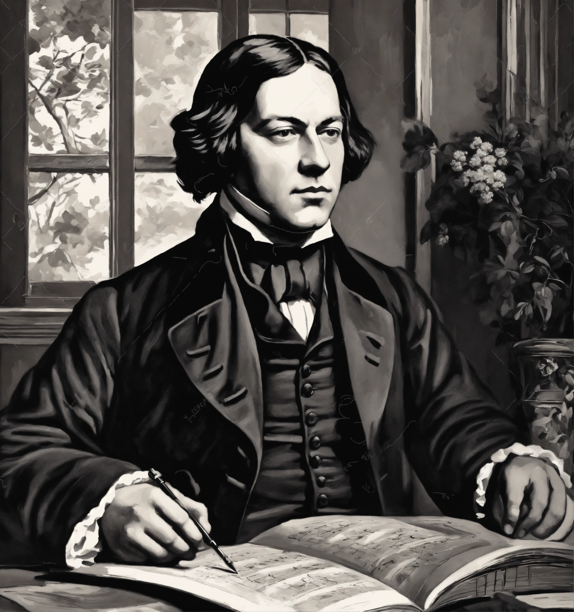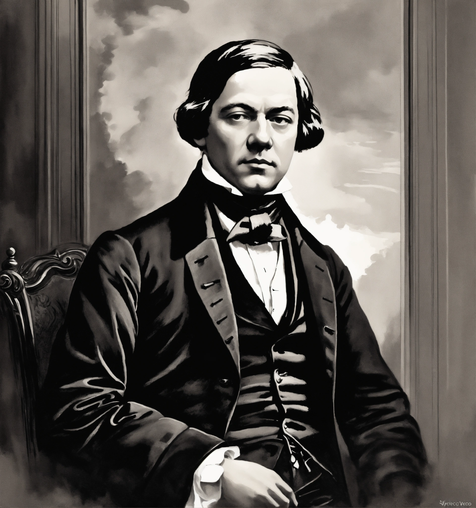 Classic depicted in paintings robert schumann in vector black and white style
