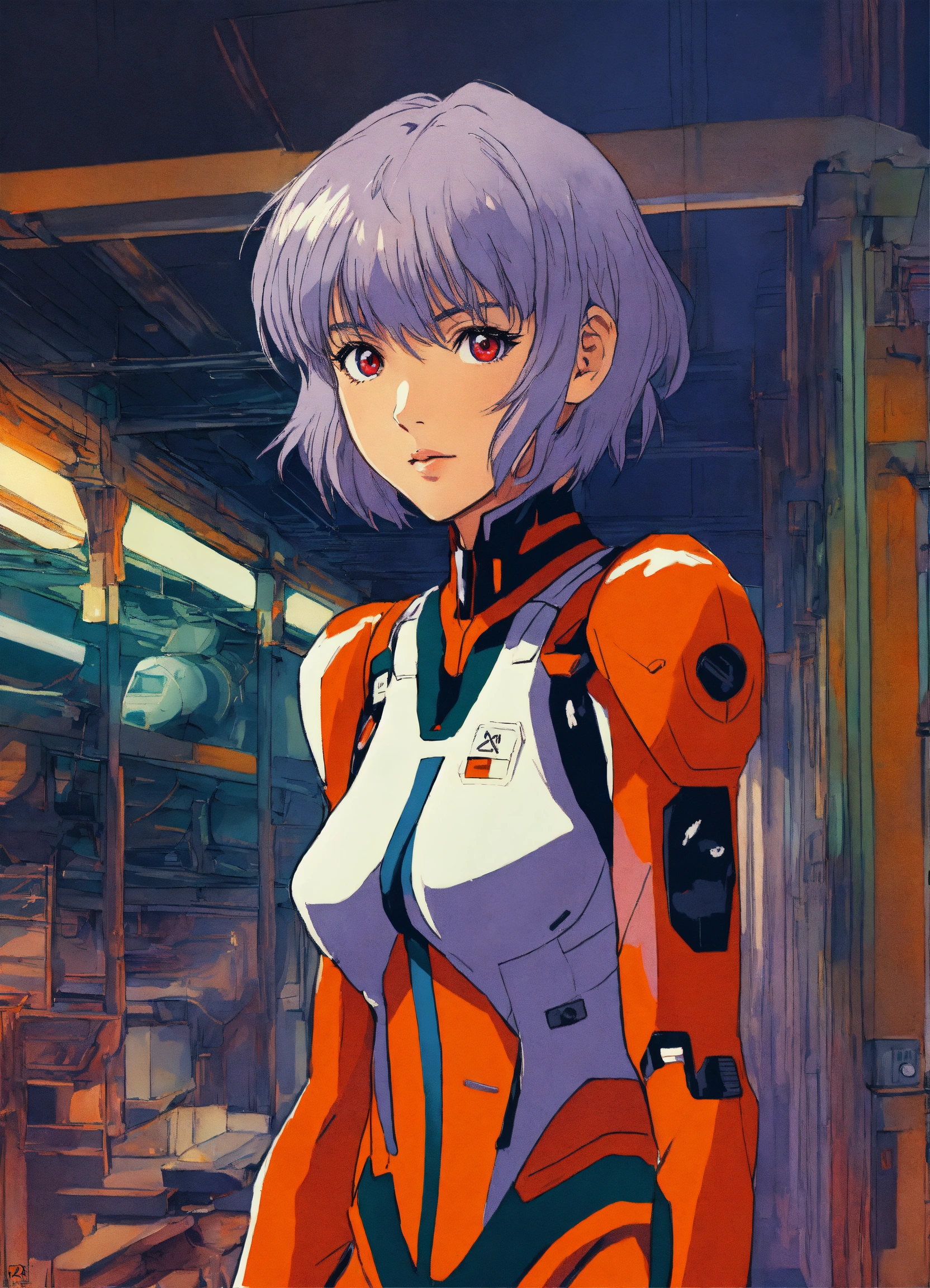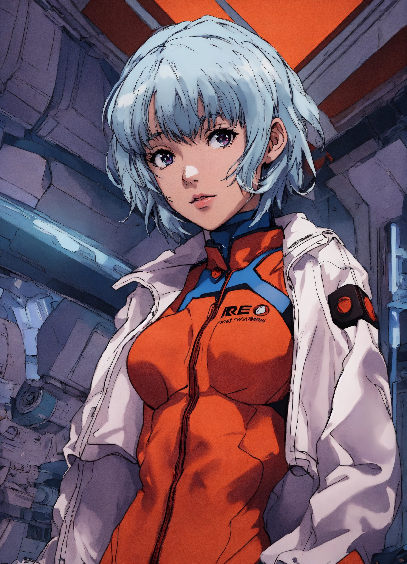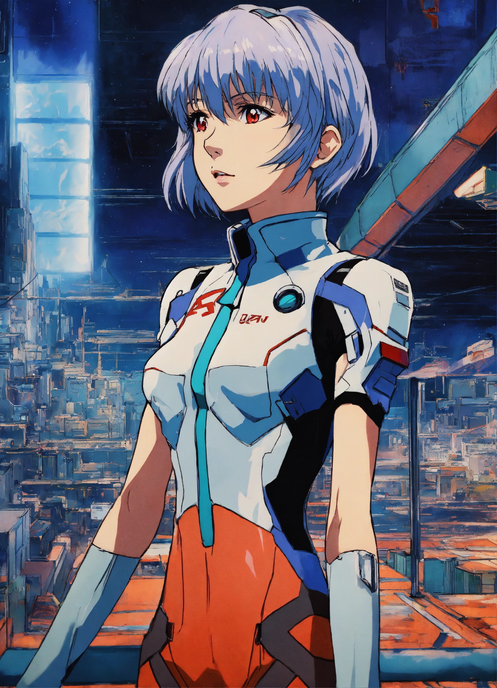 Beautiful anime art of rei ayanami from neon genesis evangelion, detailed scene, stunning details, trending on artstation, ray-traced environment, vintage 90's anime artwork, pen and ink illustration, behance trending