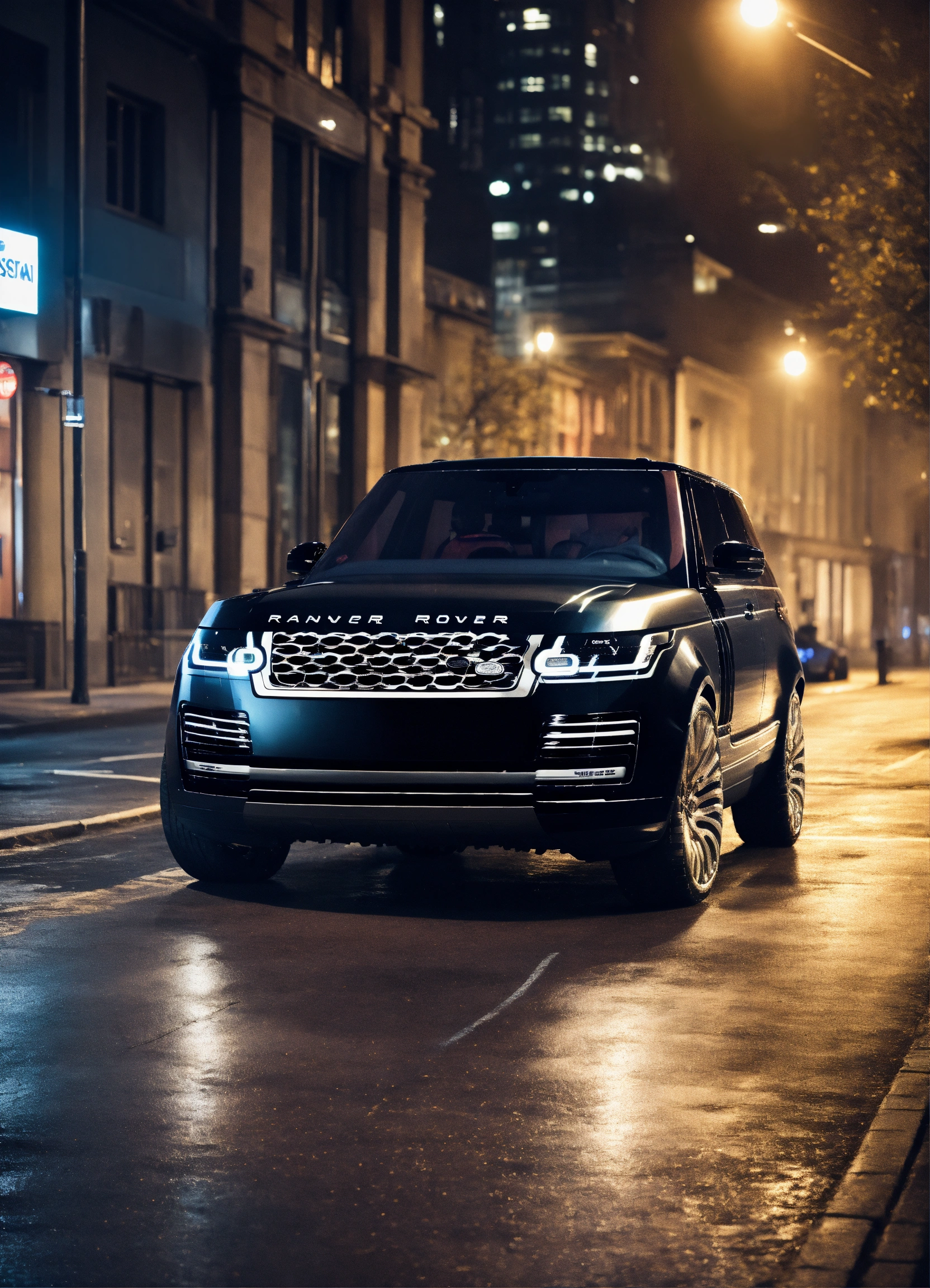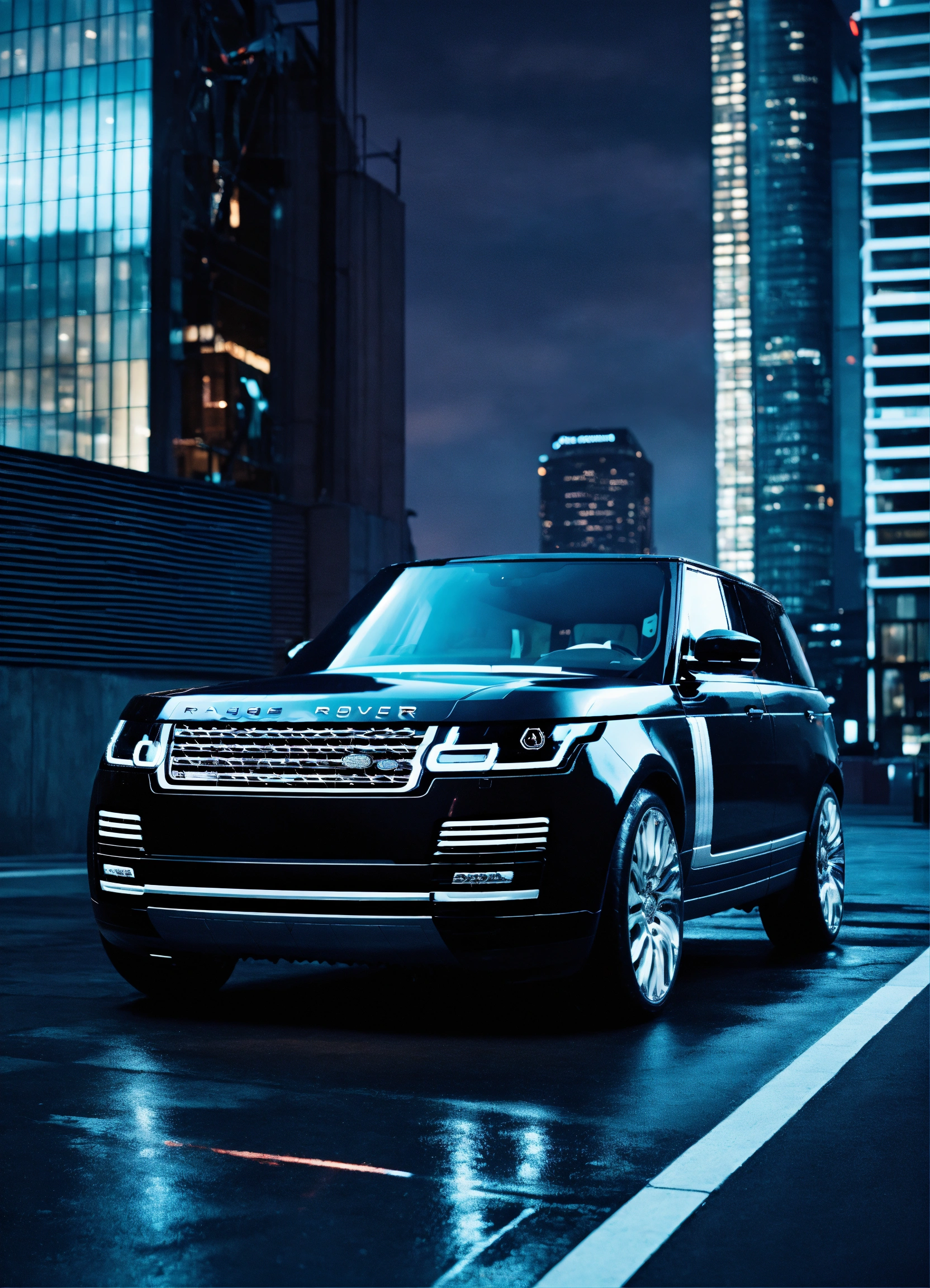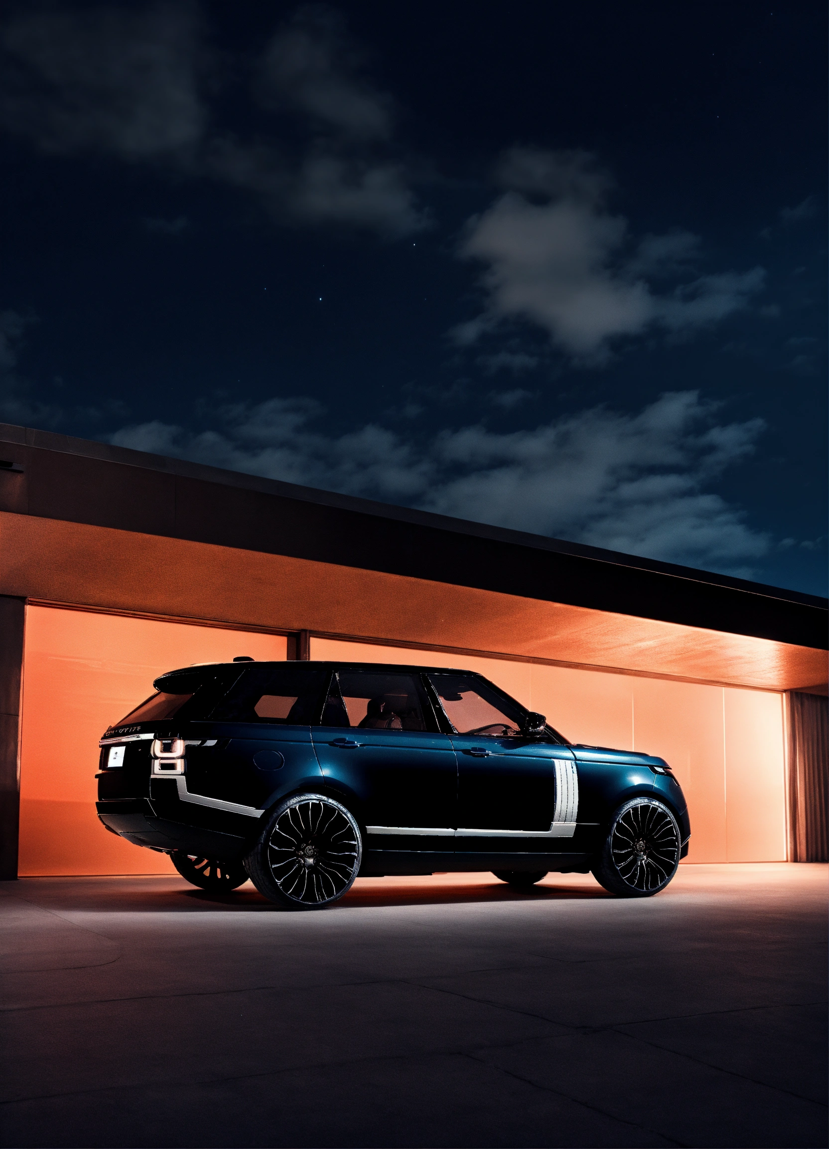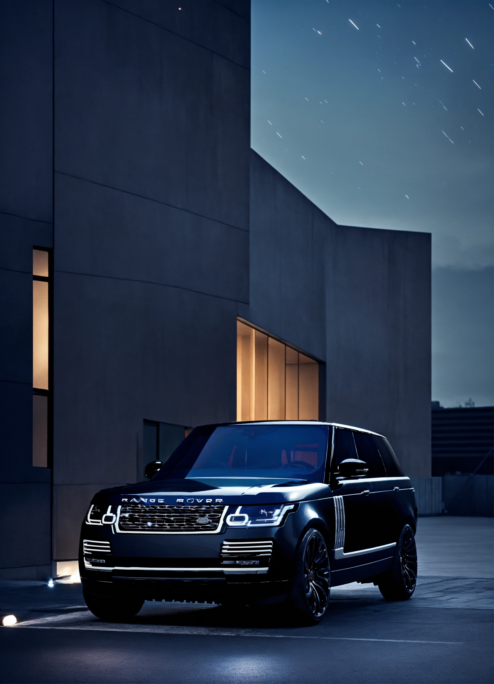 Photo of concept range rover from 2025, 8k resoultion, hyper realstic, black, night, 35mm film, editorial, high fashion, gran turismo