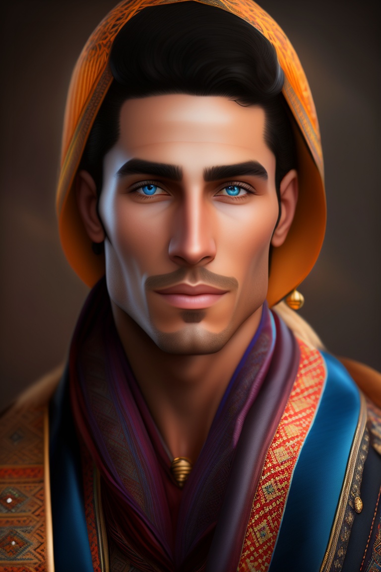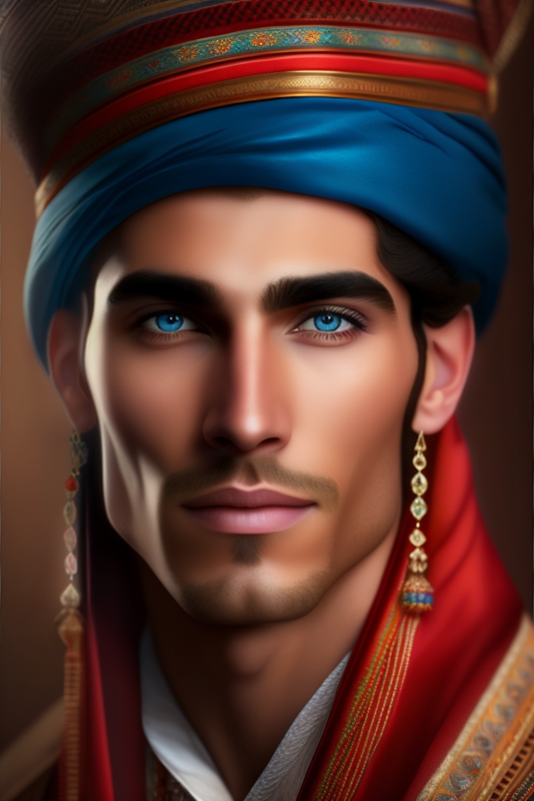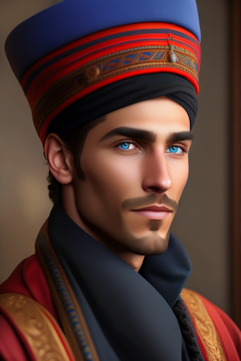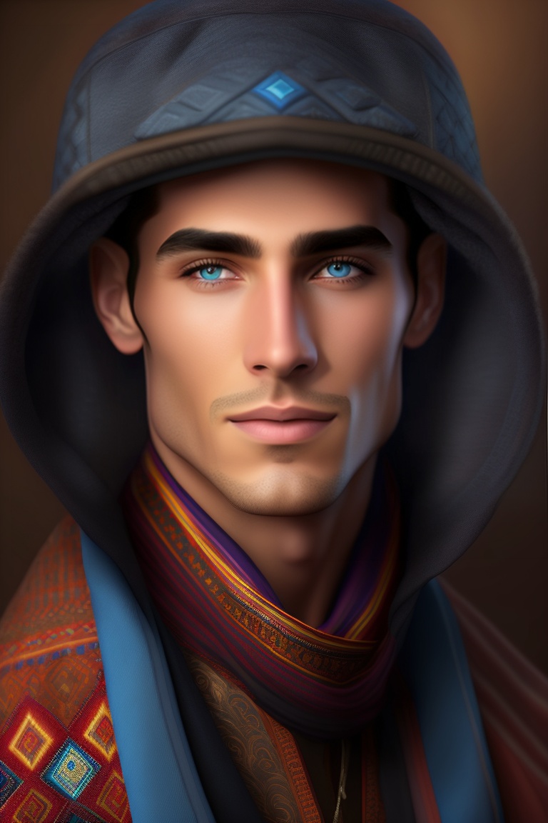 Berber man in berber clothes, doctor, blue eyes, black hair, beautiful face, professional photography