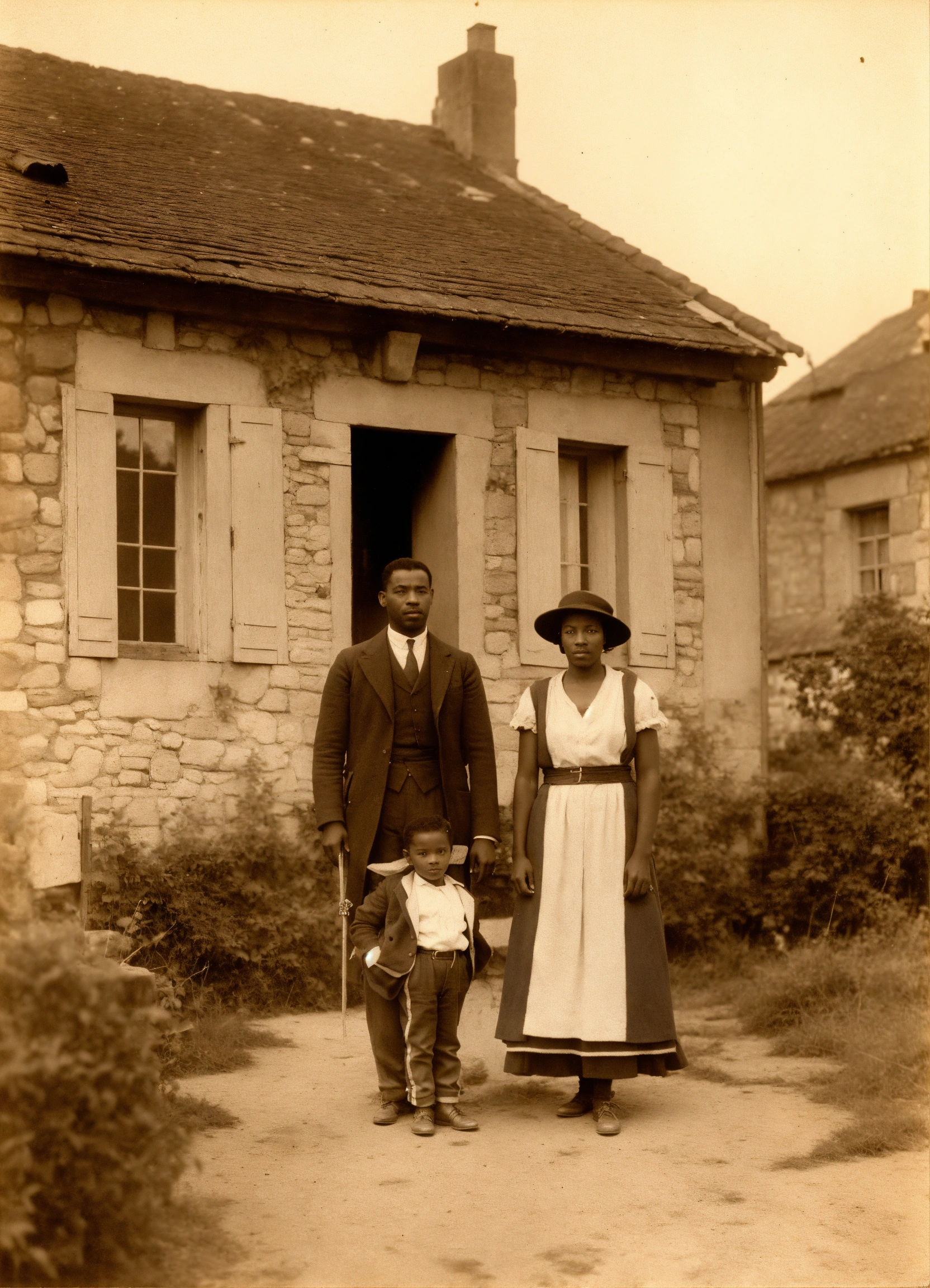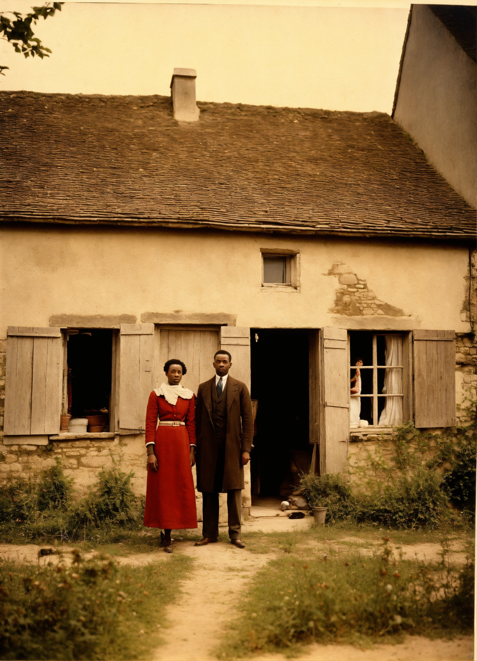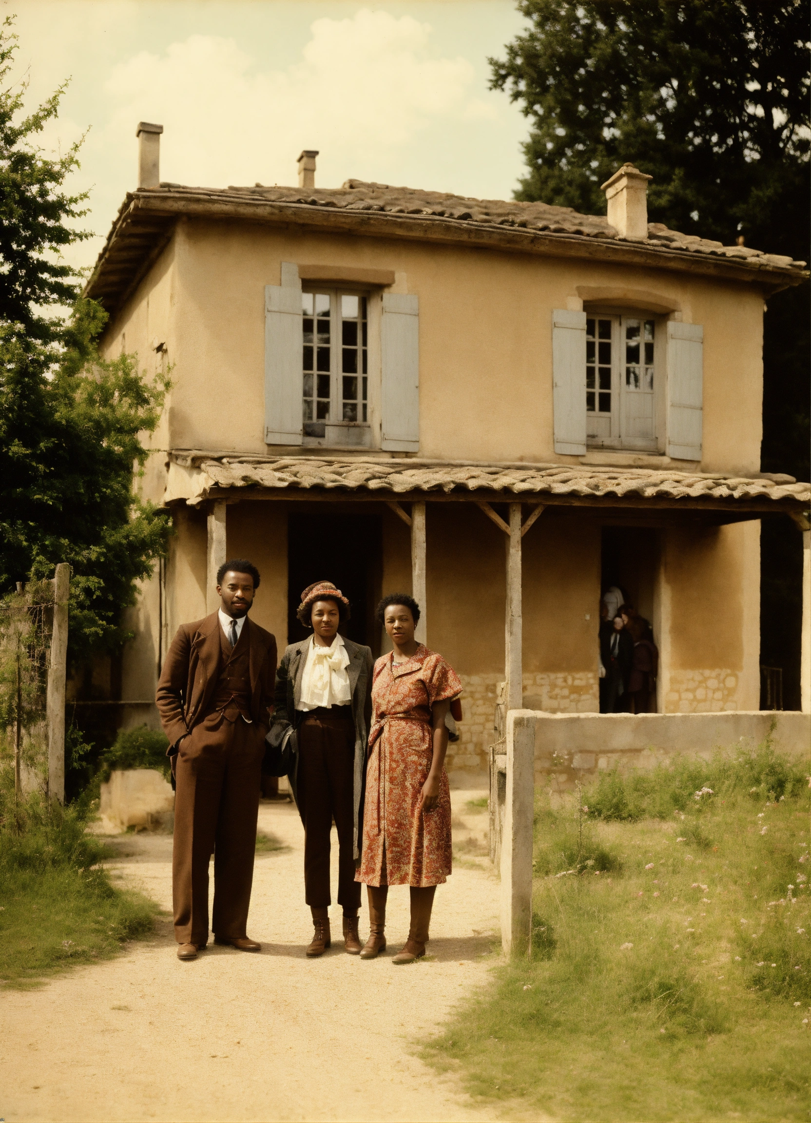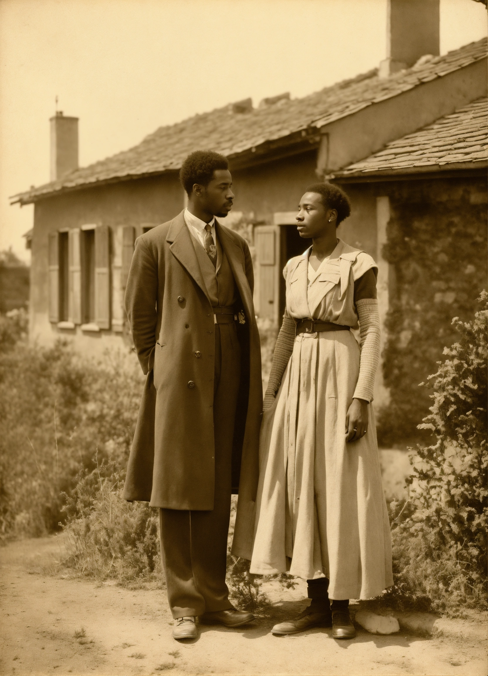 Une photo de couple entre un caucasien et une afroamericaine devant une maison a poitiers en 1935