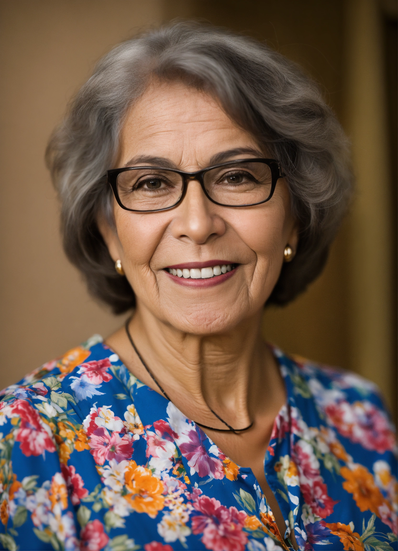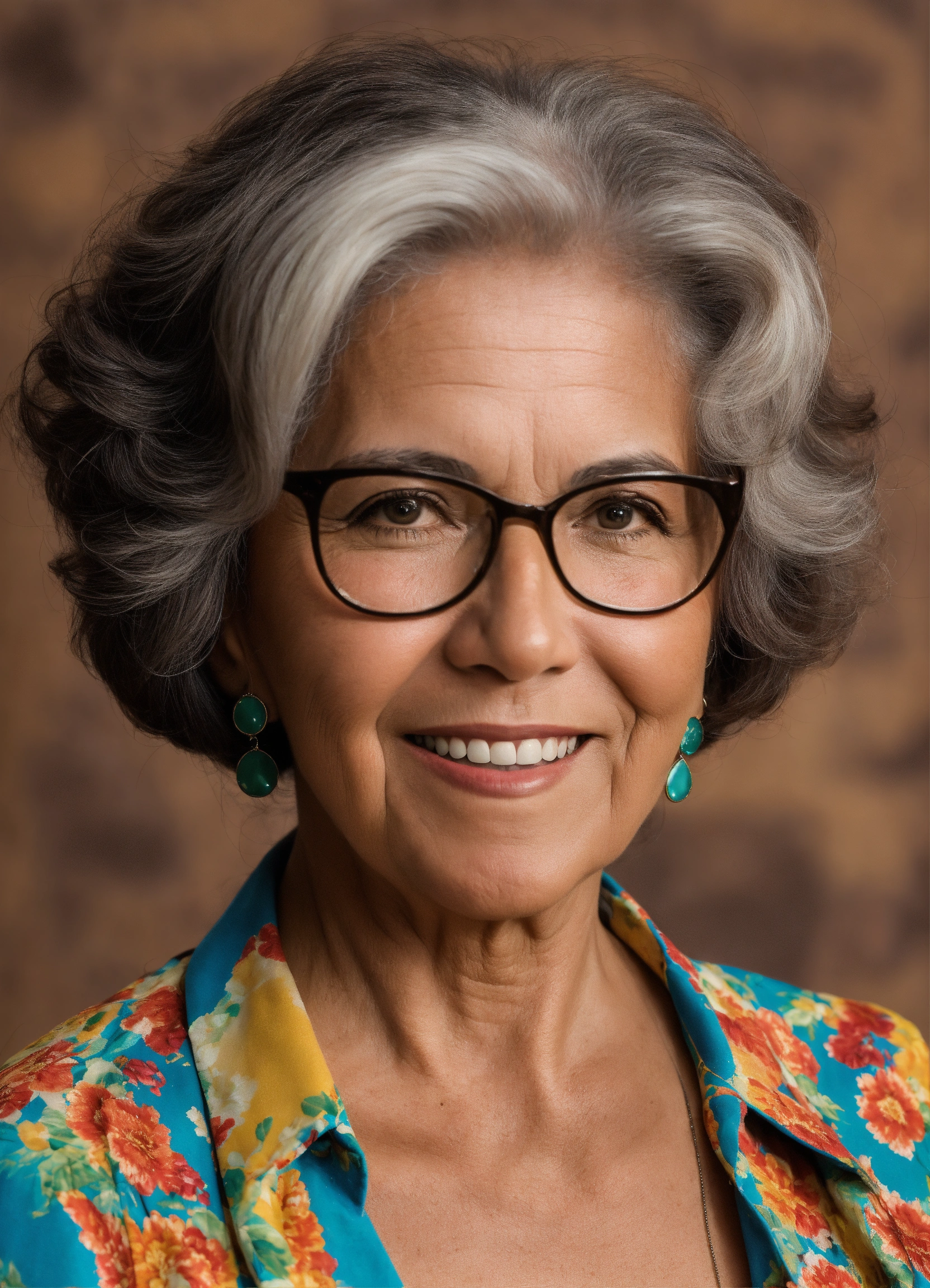 Create a 60-year-old woman who lives in 2010 in brazil, her name is ilma passos, she has a post-doctorate and doctorate in education from the state university of campinas. professor emeritus at the university of brasília. he works in the fields of didactics, teacher training, higher education, university teaching, his short hair to the shoulder, completely black hair, small mouth smiling with the gums visible, rectangular and large head, with age marks, he has few indiginous features of the brazil and her skin tone is white, she wears a flowery blouse.