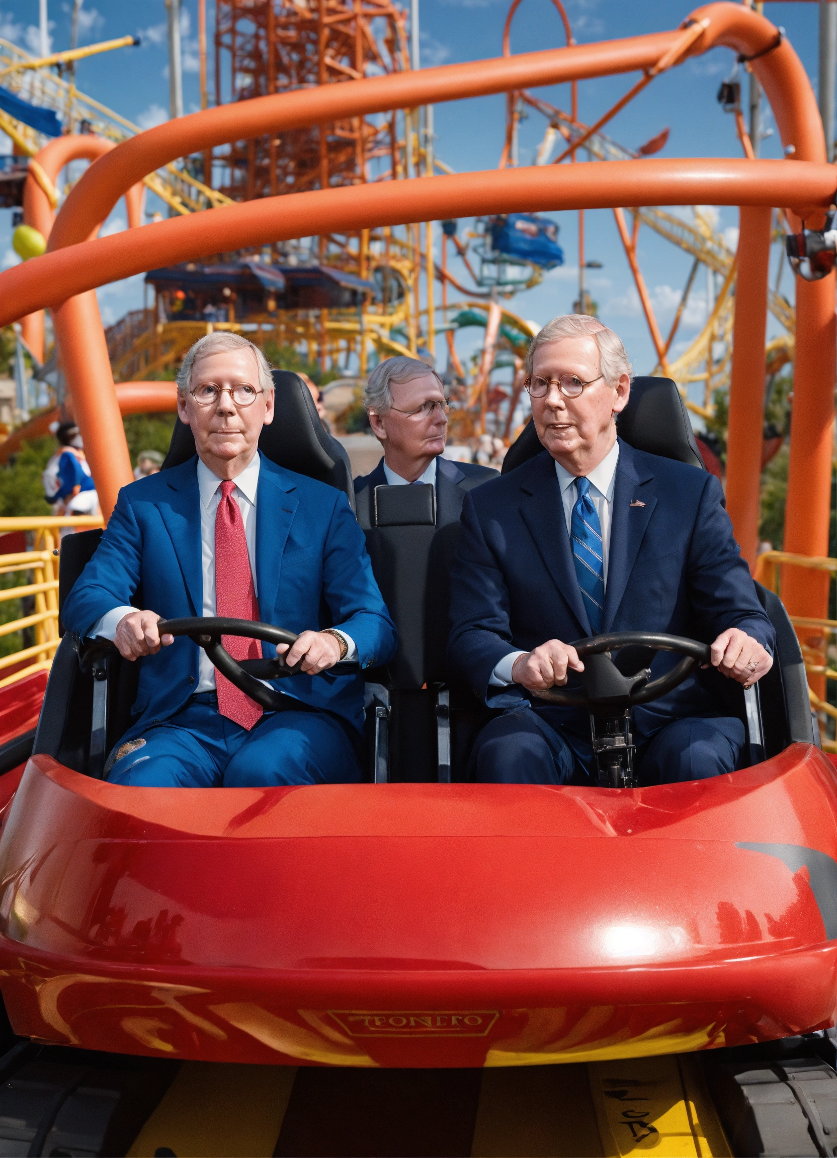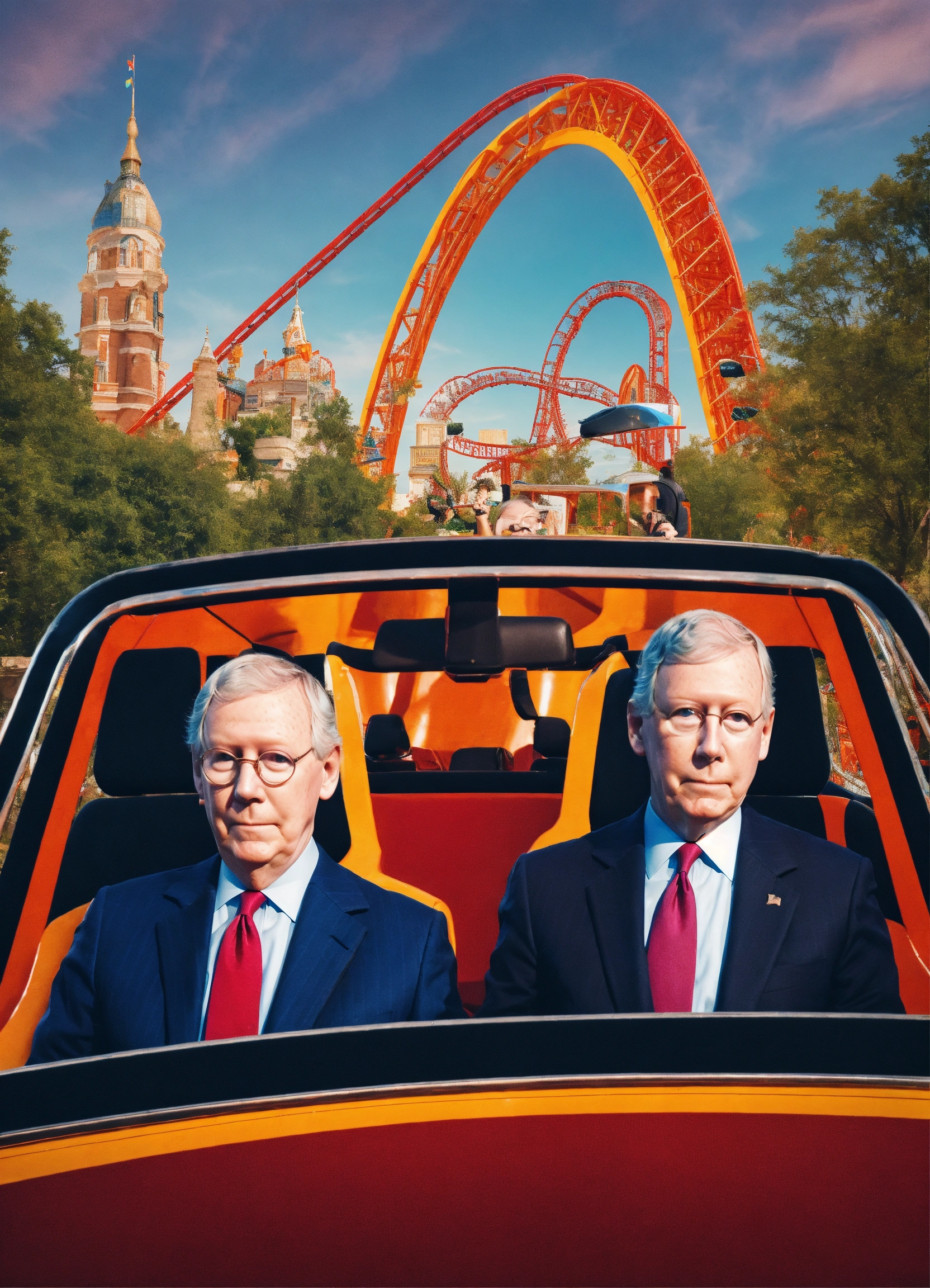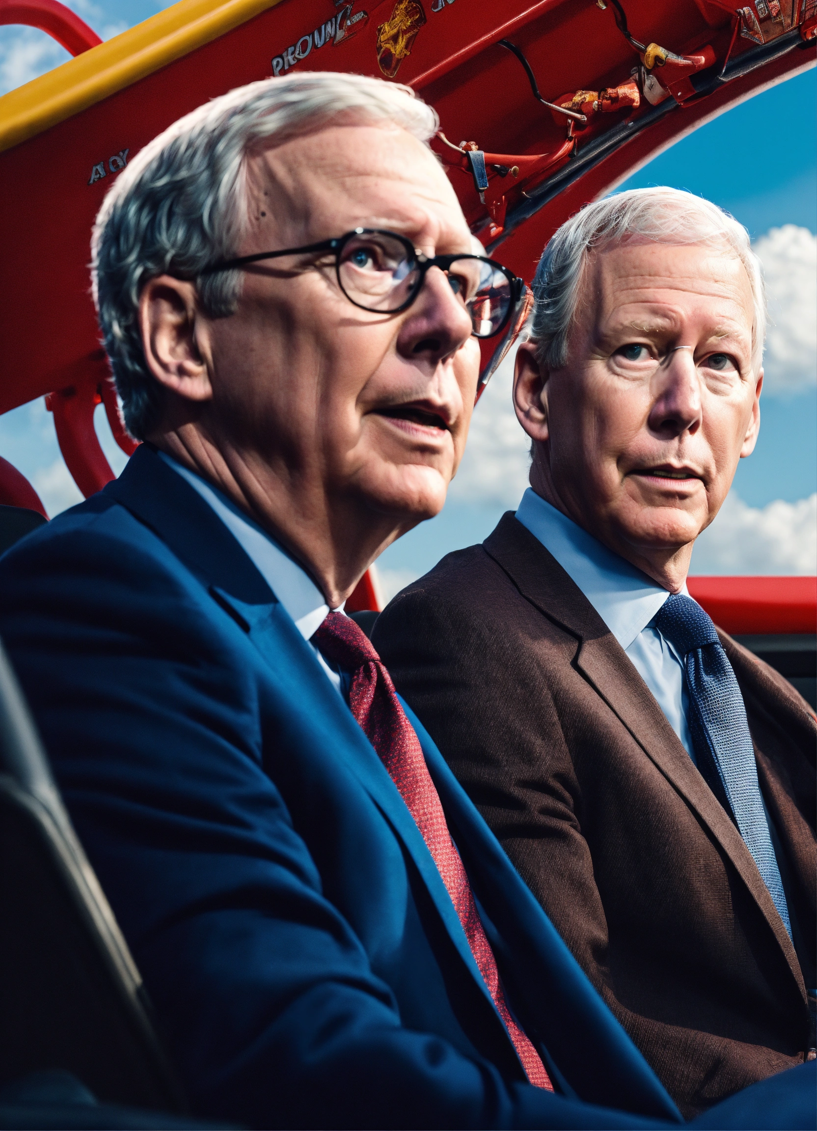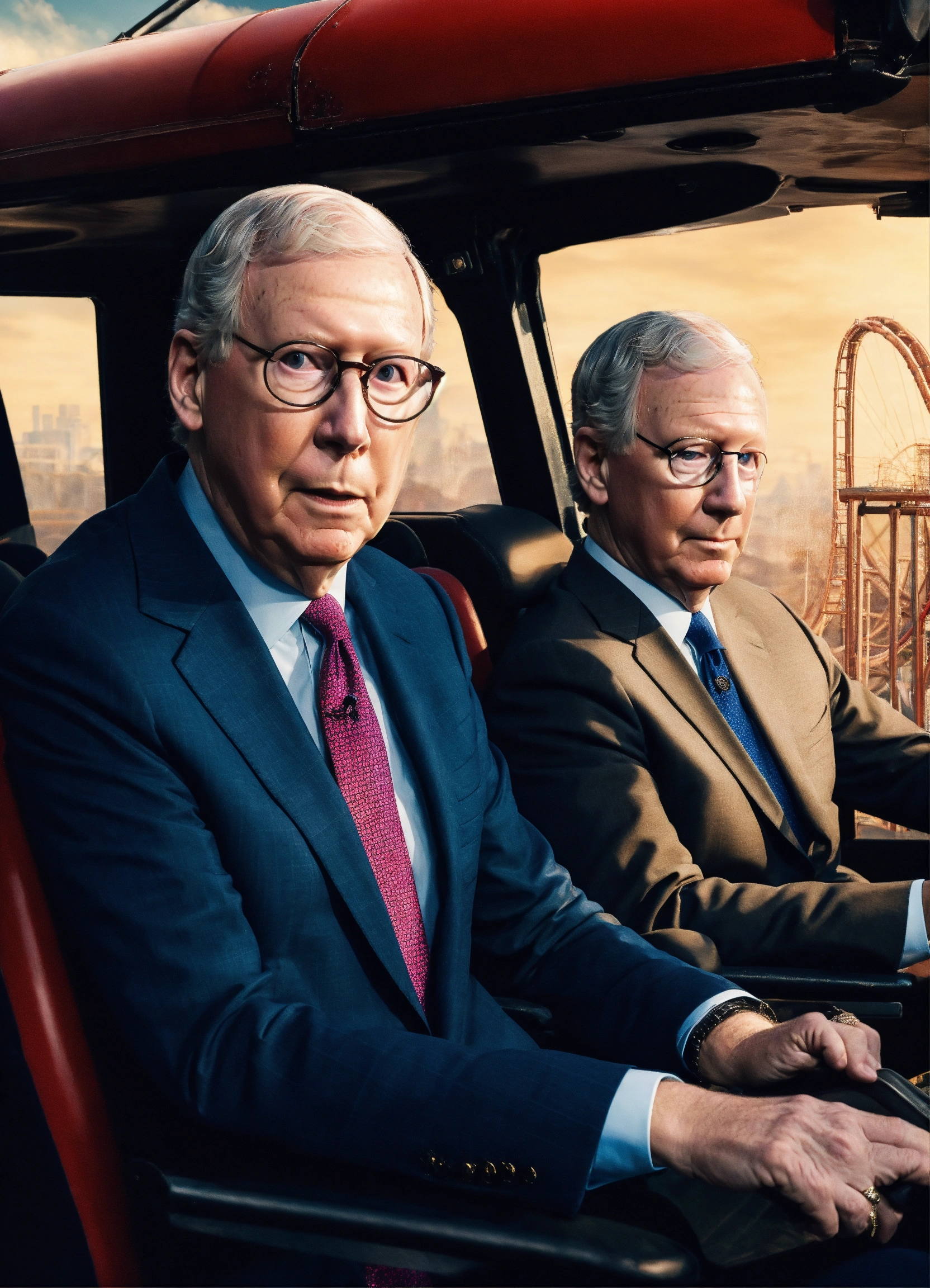 Mitch mcconnell and anderson cooper in the front seat of a roller coaster