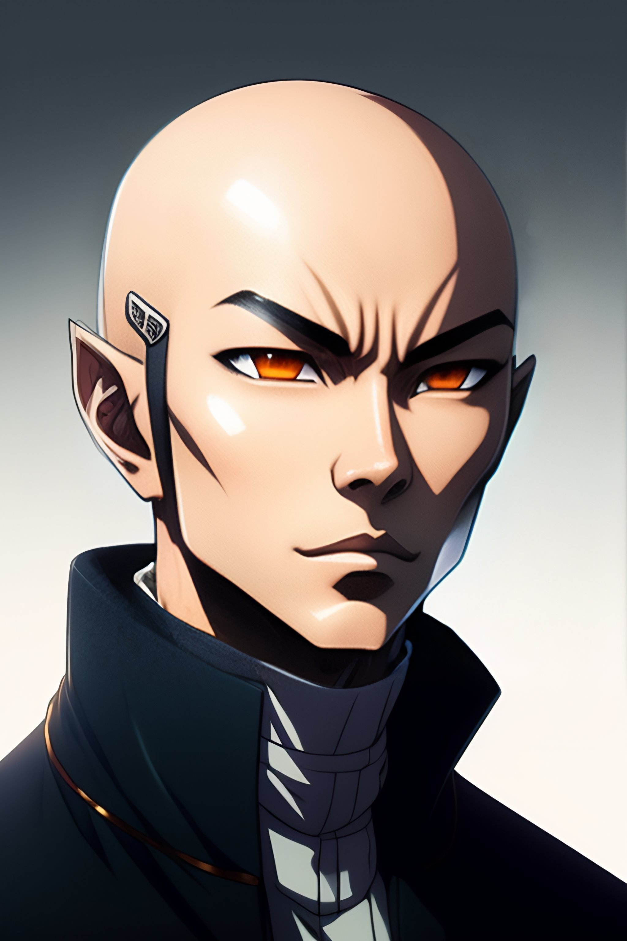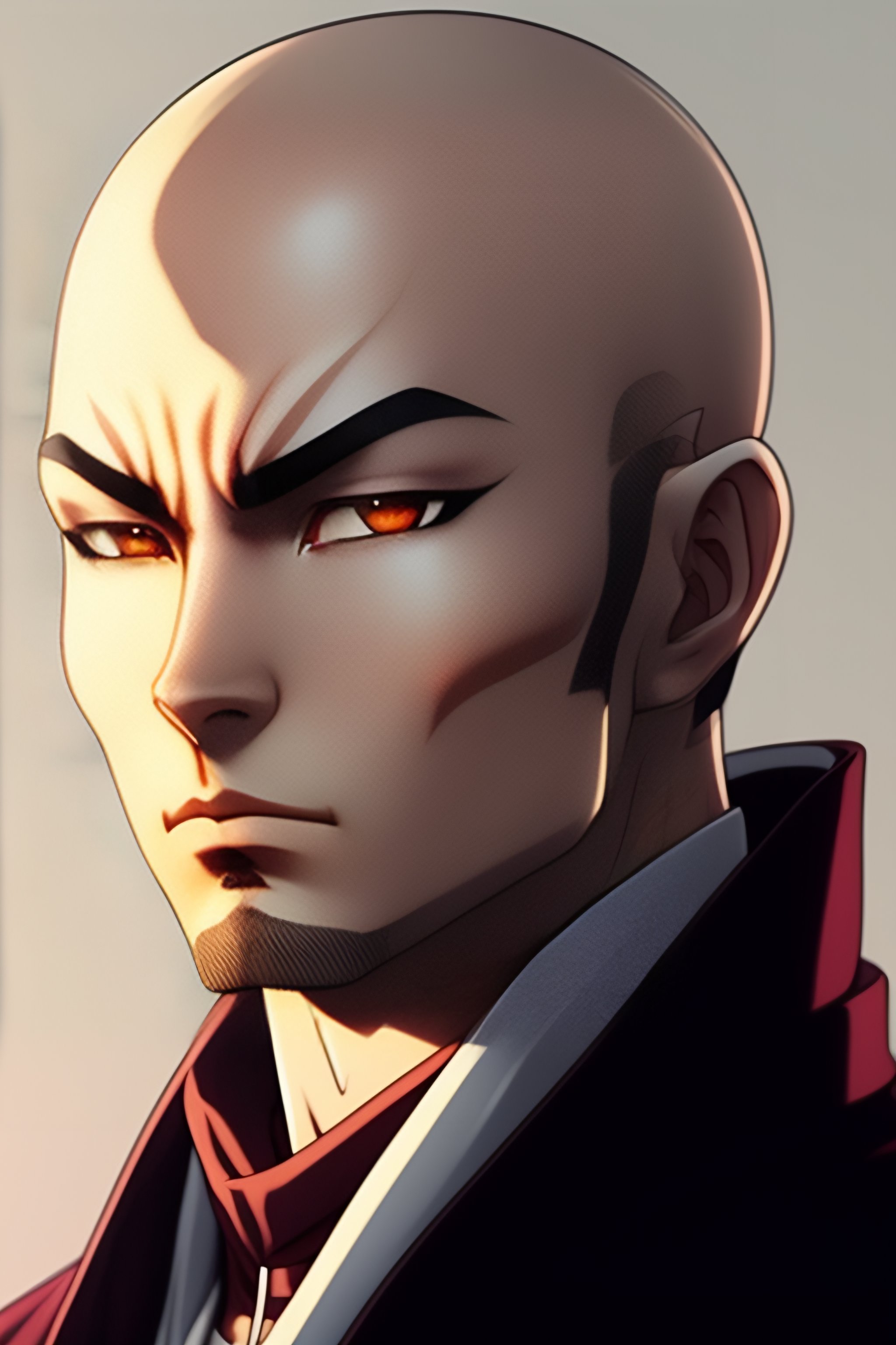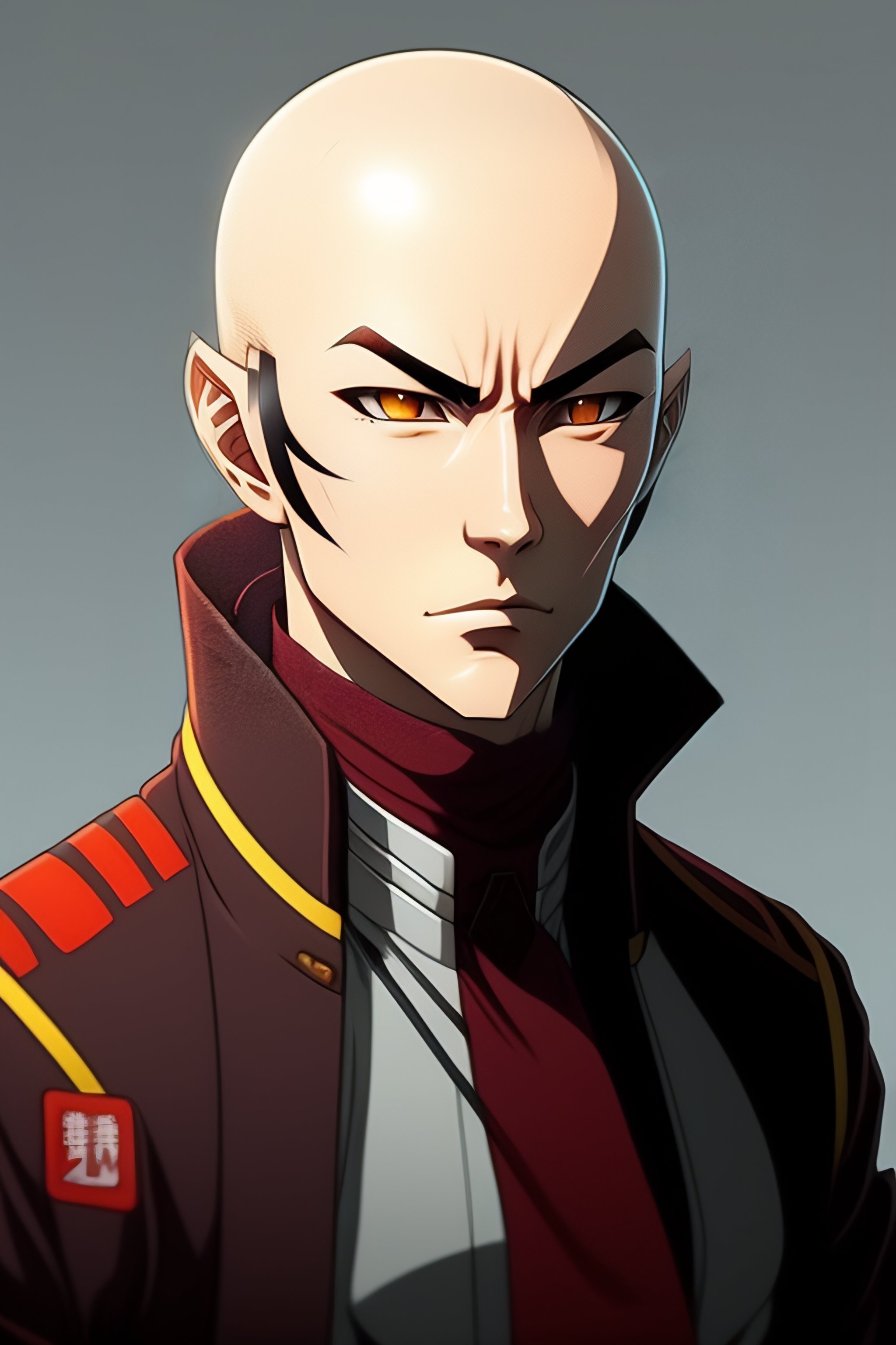 Bald badass anime guy, simple, no expression, no emotion, minimalist, no background, anime style, manga
