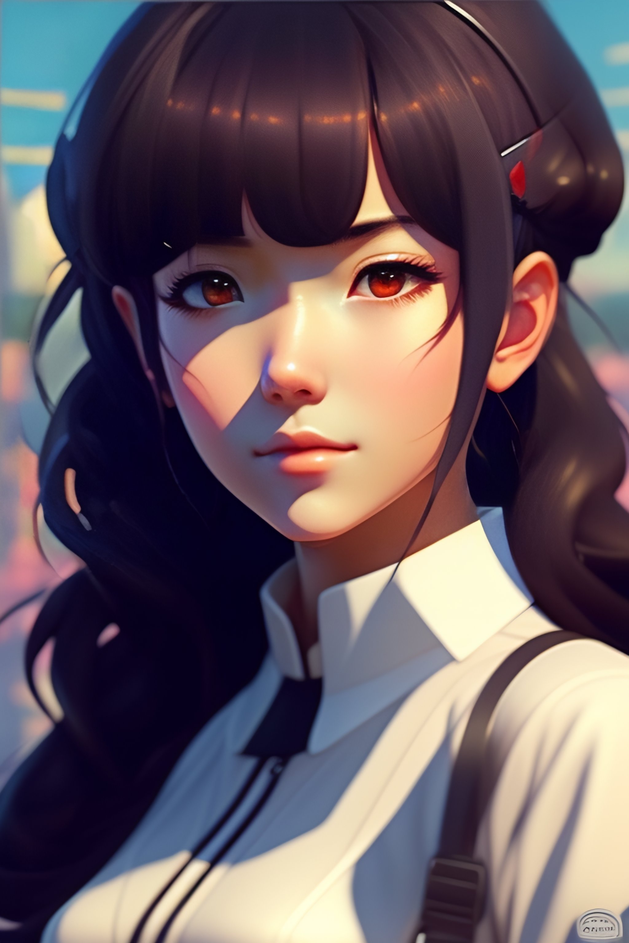 Anime girl, school outfit-chan, from cartoonish, trending on artstation, booru, realistic face, perfect face, fine details. anime. realistic shaded lighting by ilya kuvshinov katsuhiro otomo ghost-in-the-shell, magali villeneuve, artgerm, rutkowski, wlop jeremy lipkin and giuseppe dangelico pino and michael garmash and rob rey