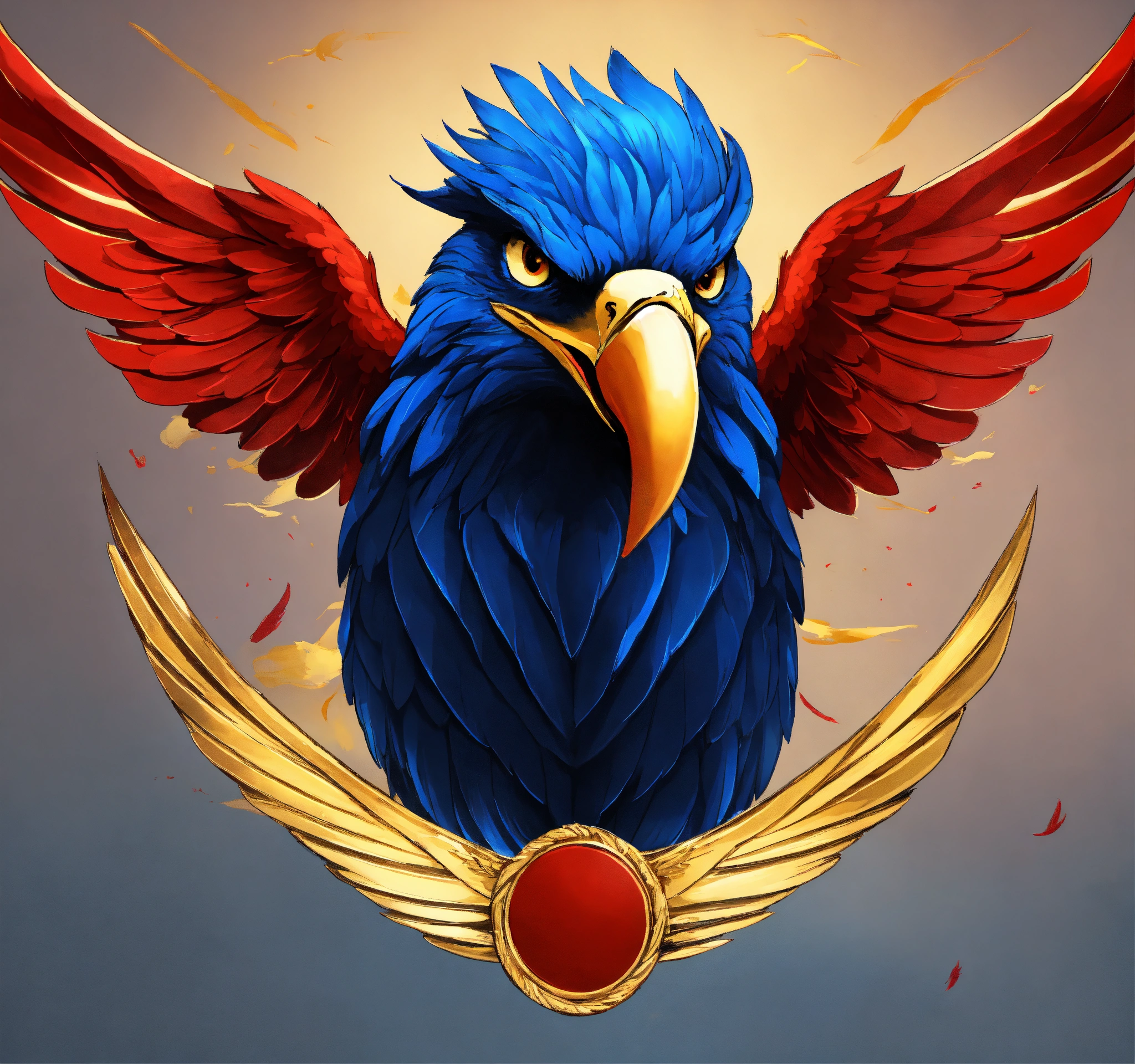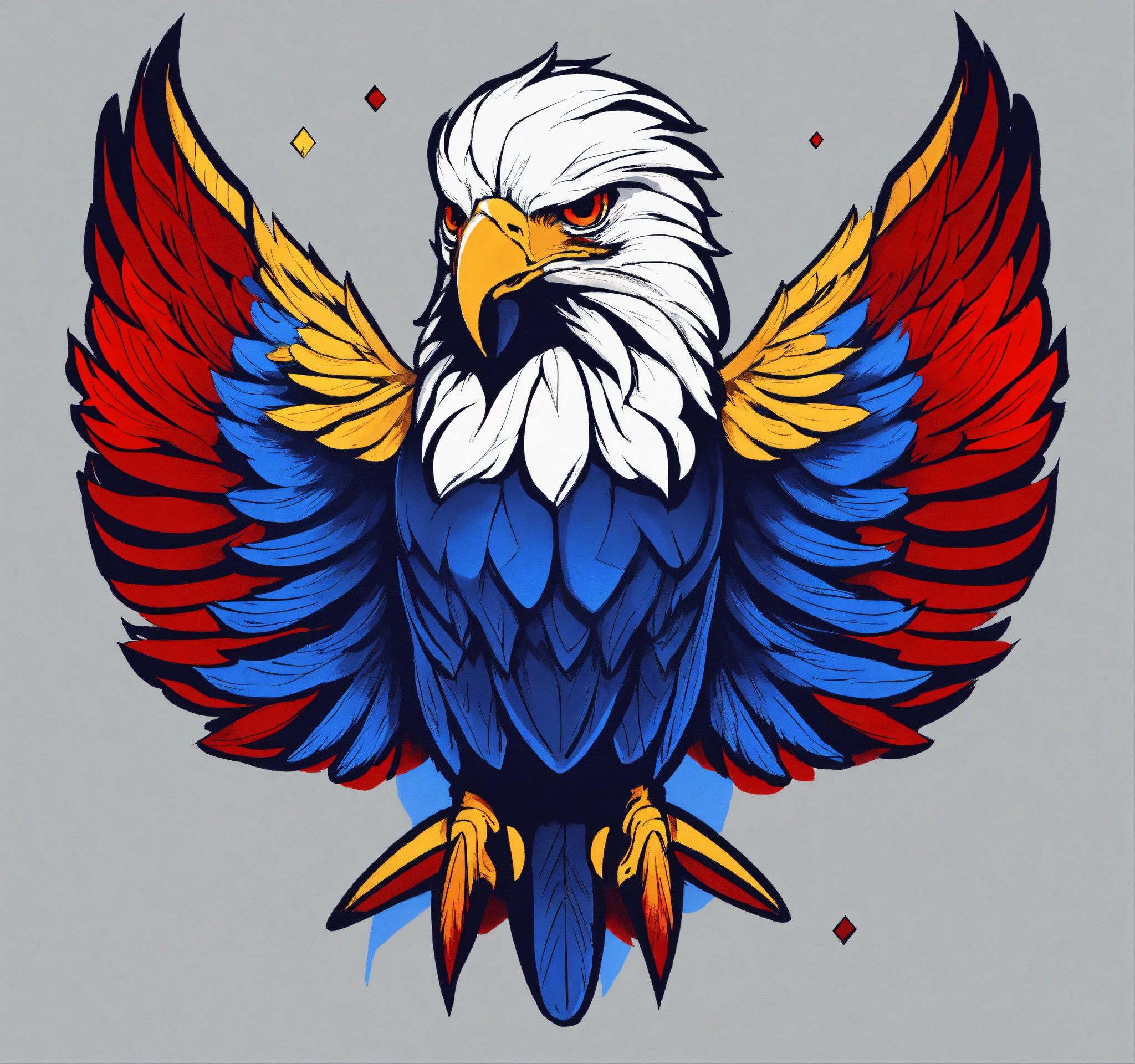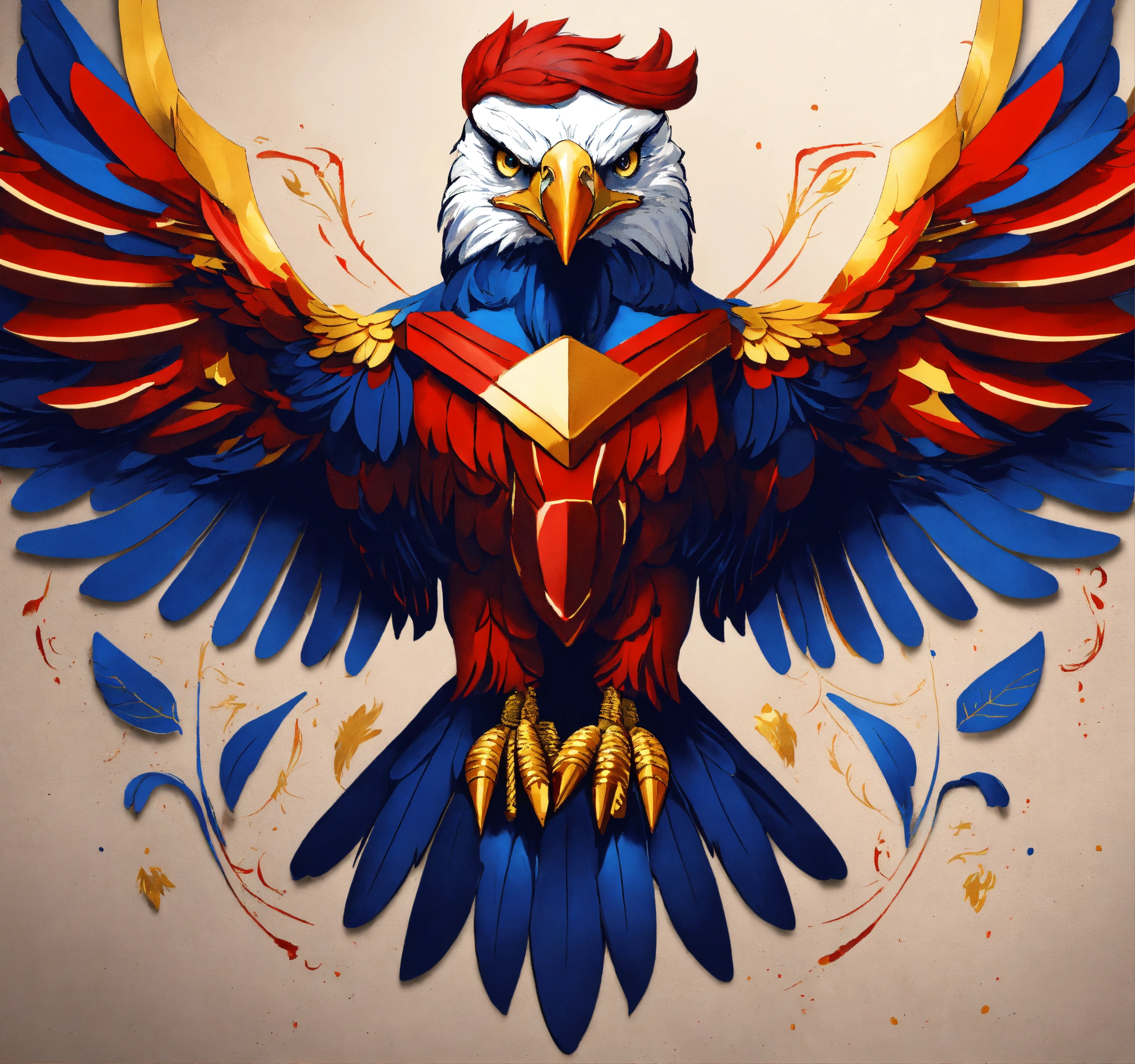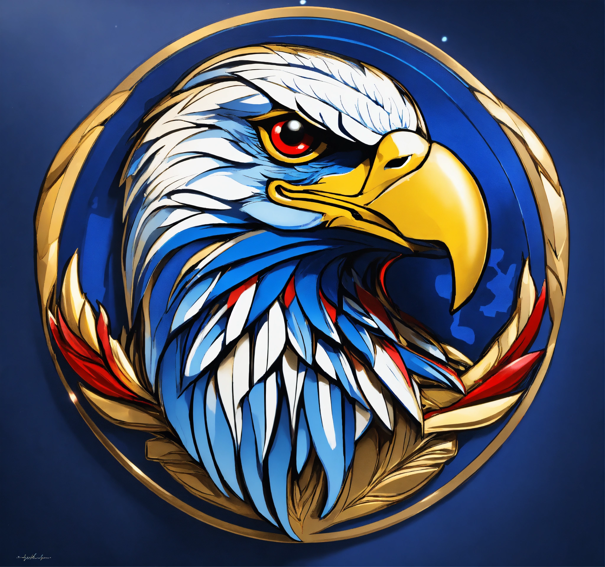 Text main elements the main element of the logo should be a female eagle the female eagle should possibly have red lipstick on its beak to emphasize femininity. colors primary blue, red, gold style the design should evoke a feel reminiscent of wings - a blend of power and grace.