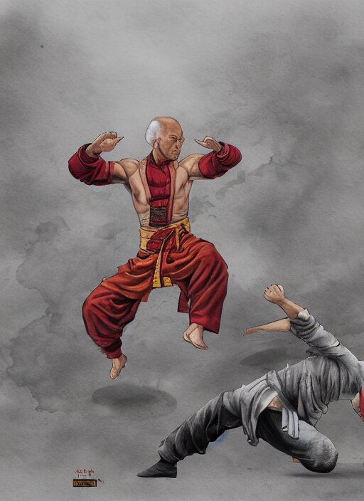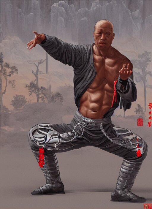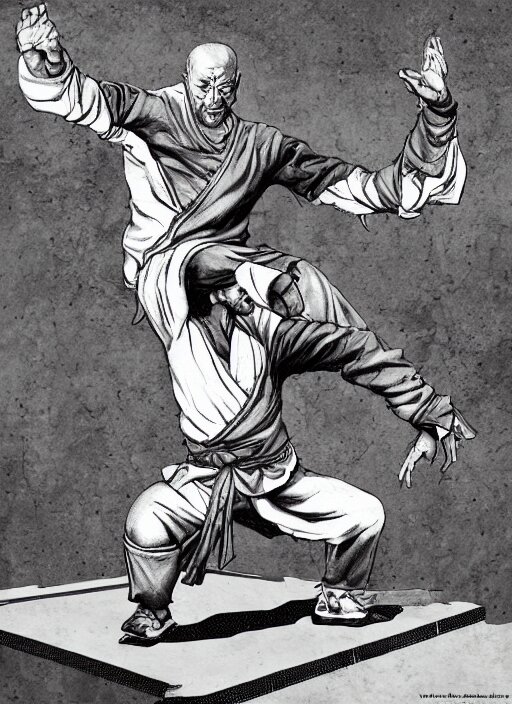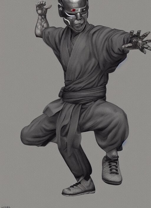 Cyborg biden practicing kung fu at the shaolin temple. realism, high detailed, fine art, trending on artstation, smooth draw, sharp focus.