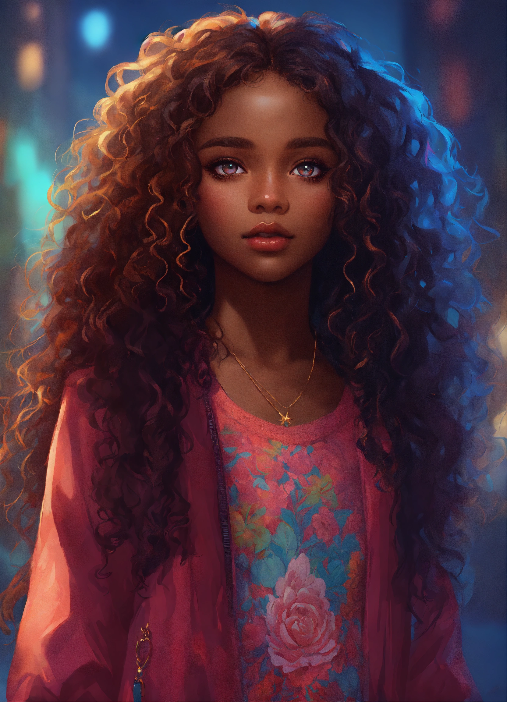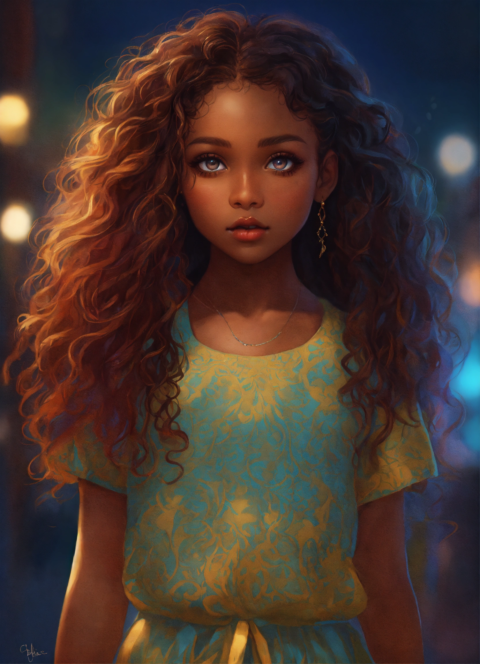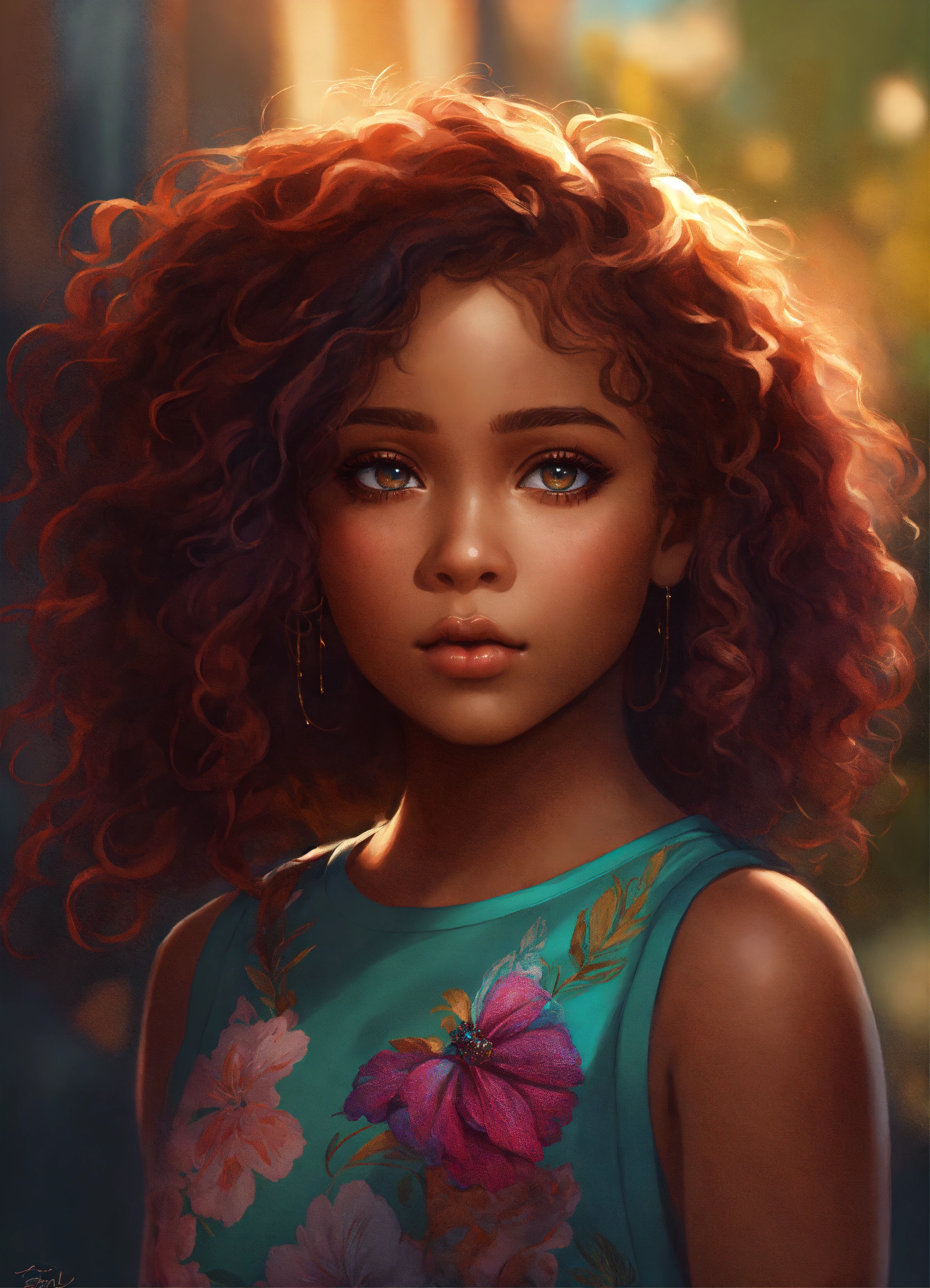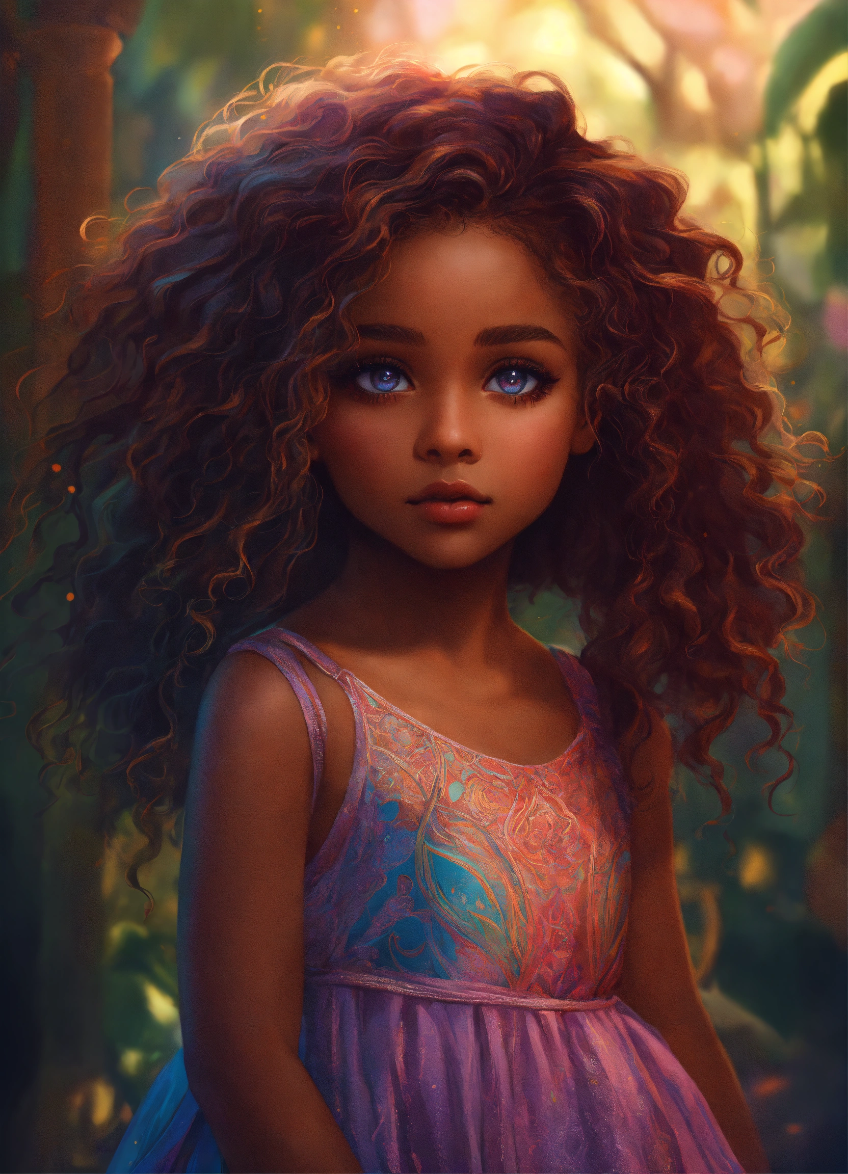 Little girl stunning beautiful melanin, eyes, fashion, long wavy curly multicolor hair, charlie bowater, extremely detailed, full portrait, photo shoot, full body pose, light skin, vibrant, bright eyes, no signature, intricately rendered, 8k, extremely detailed, pixar