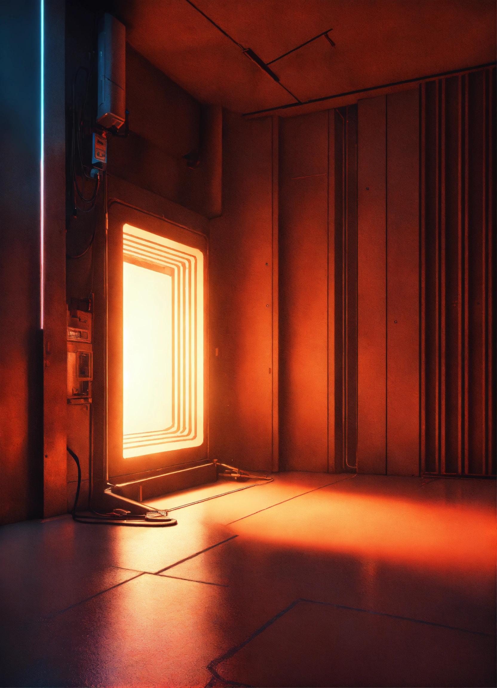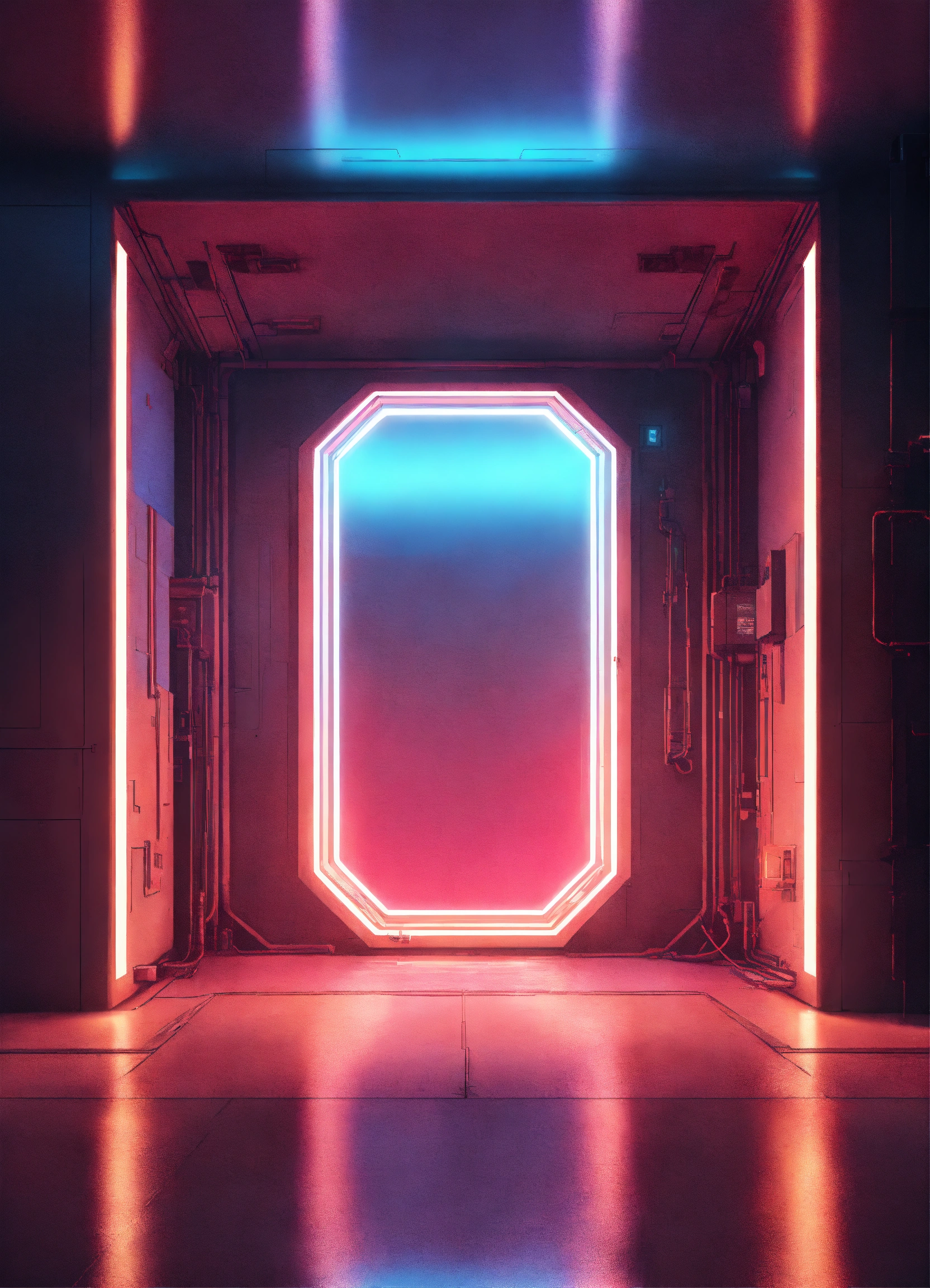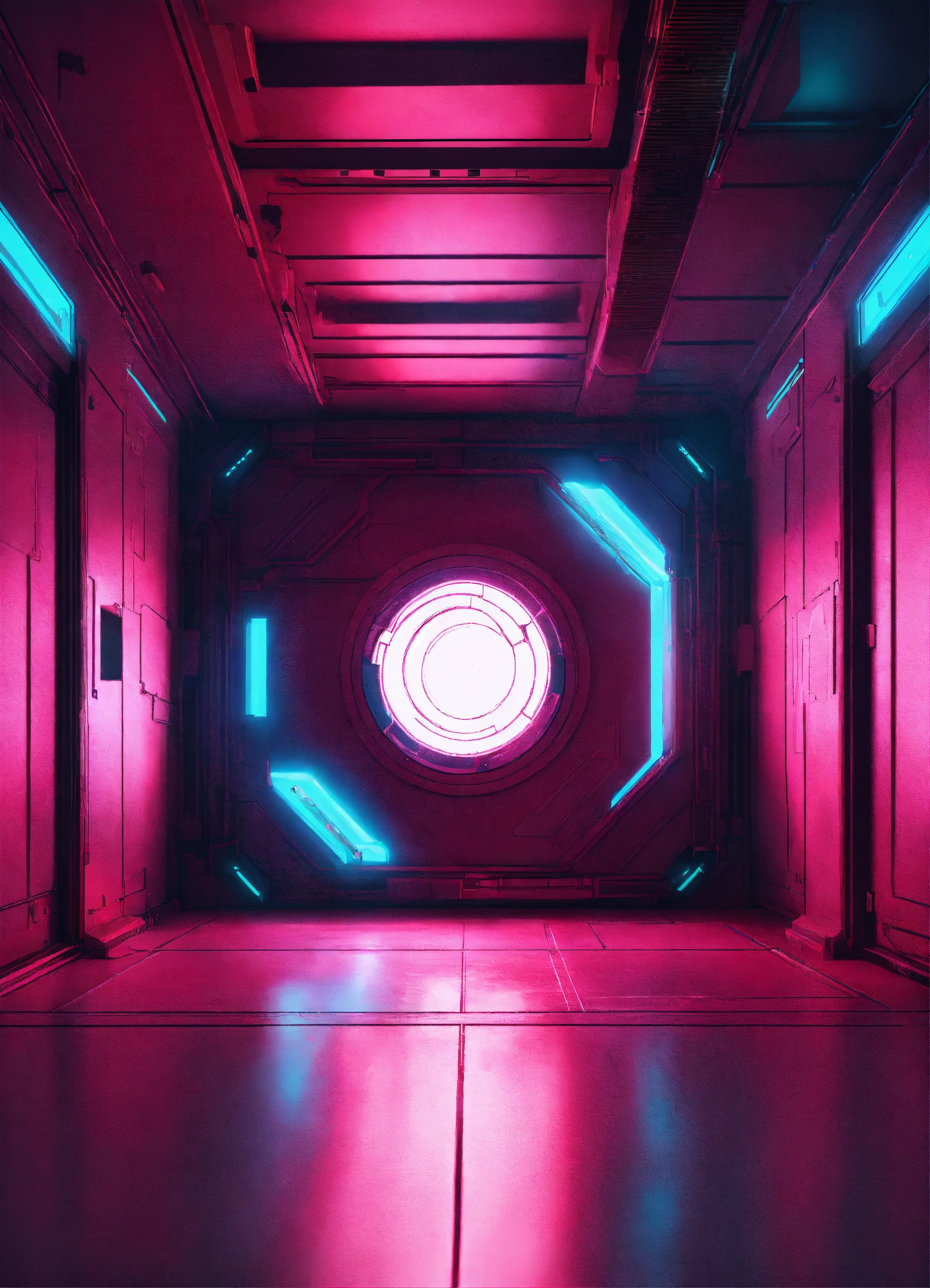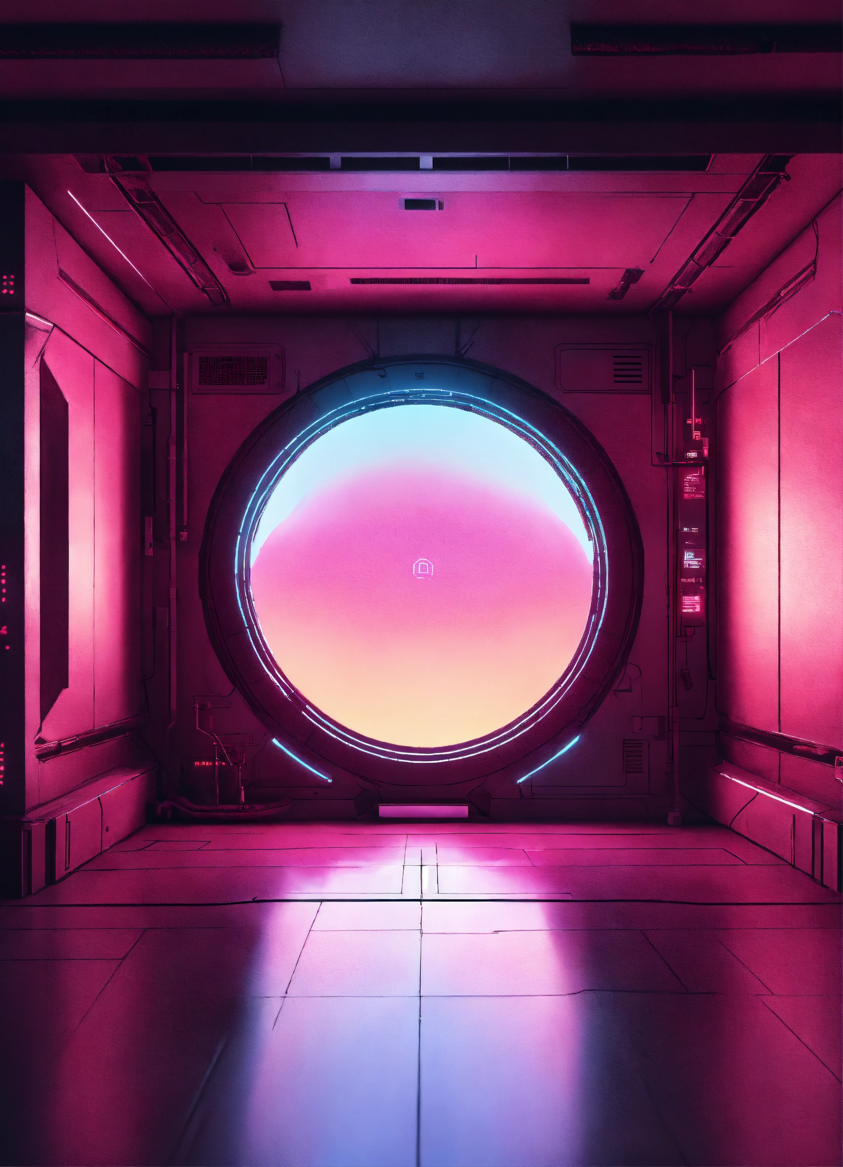 A cyberpunk portal on the floor with a soft glow