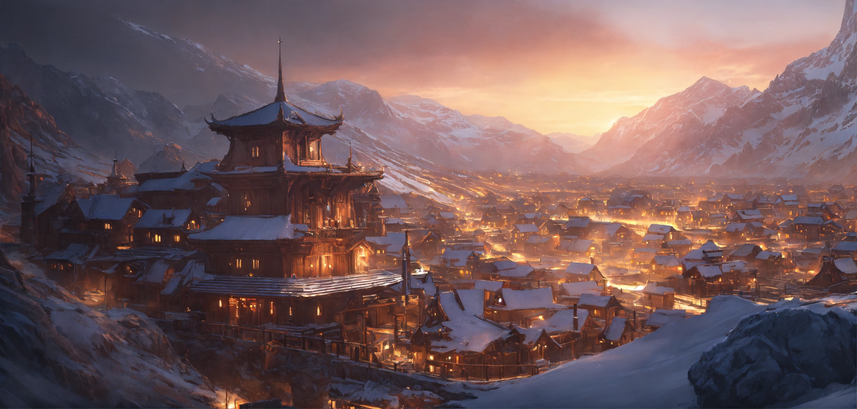 A highly detailed illustration of the sci-fi viking city in mountaince by artgerm, by huyy nguyen, by cj xander, by jennifer wuestling, by diep duong van, by huyy nguyen, by grafit studio, volumetric lighting, 3d render, 4k resolution, trending on artstation, masterpiece, close up frame, cinematic shot
