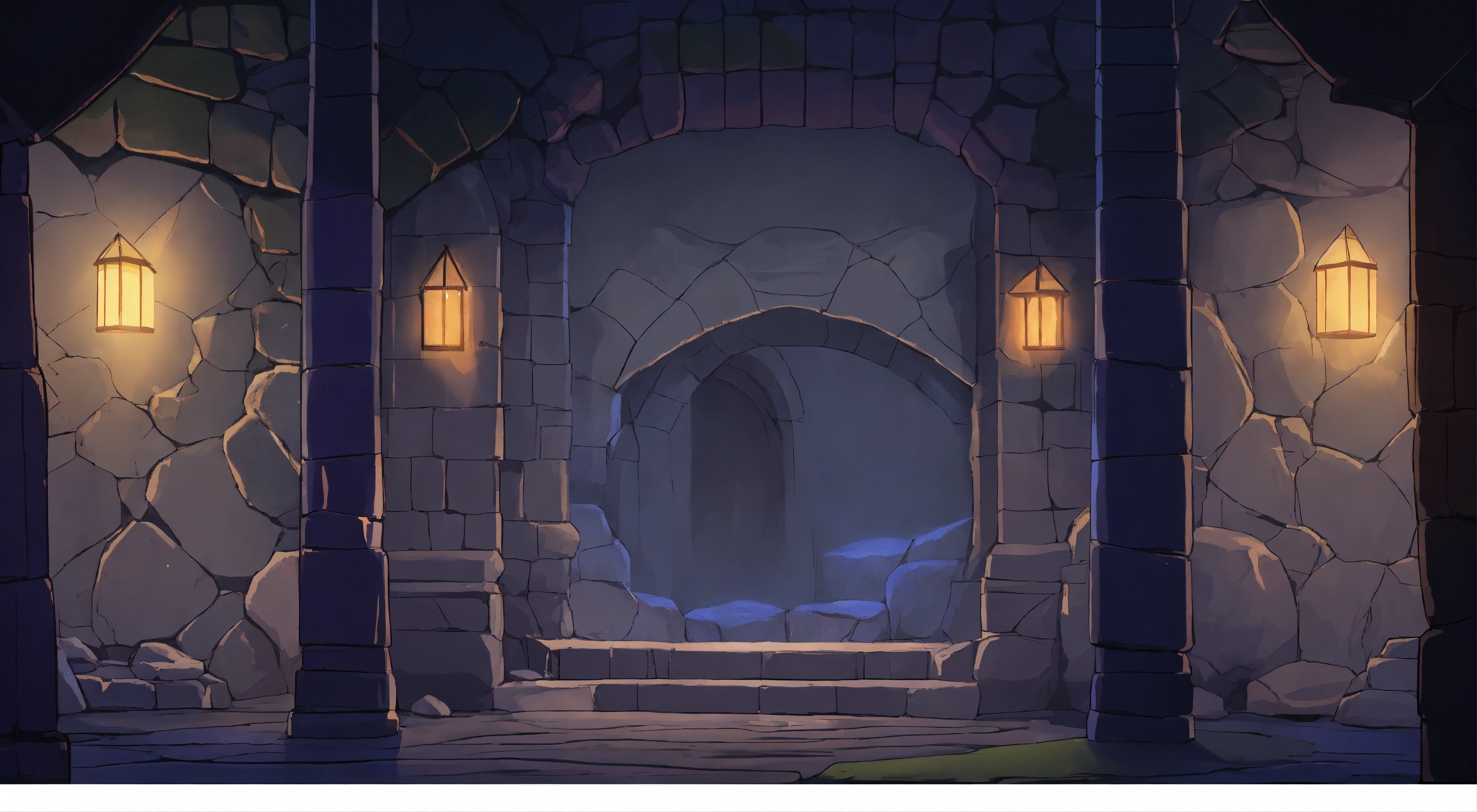 A similar image, cave, wall add stone, dark lilting, dramatic lighting, illustration style, comics style, ghibli style, 8k