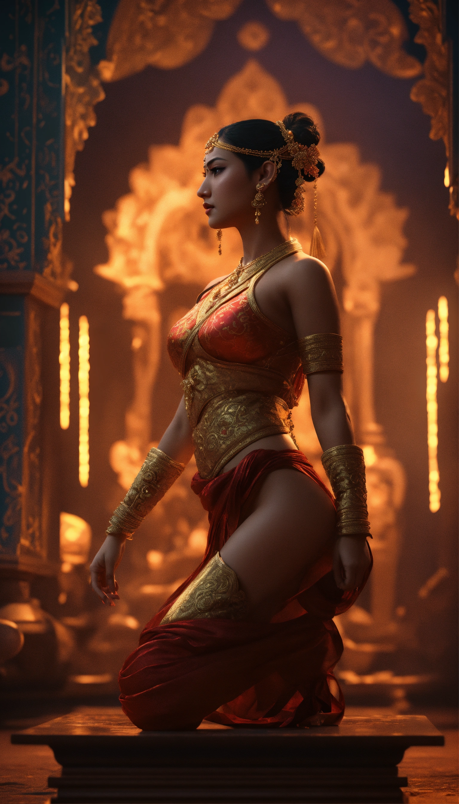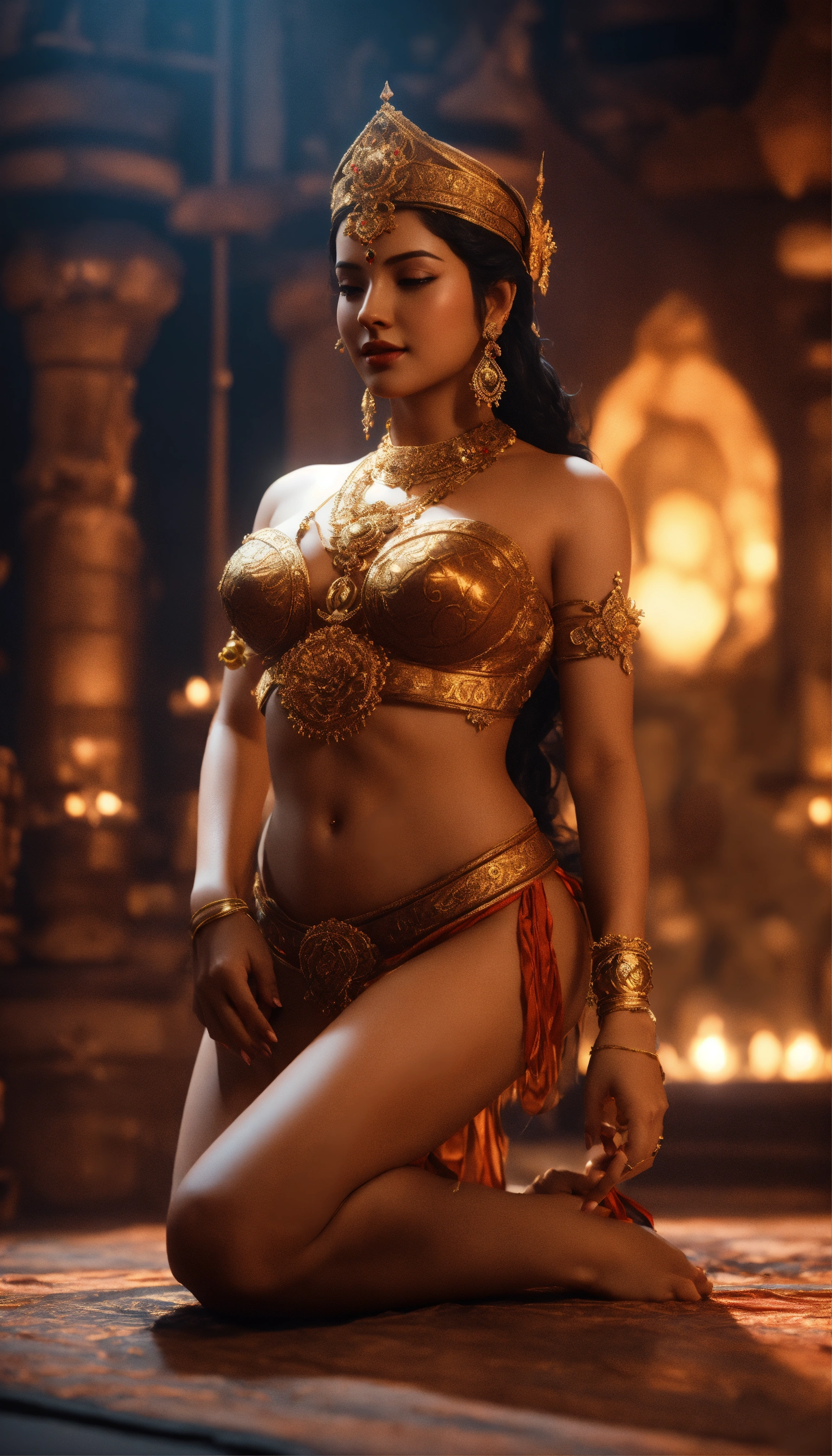Actress honeyrose in kamasutra character art in blender 3d using cycles renderer in a volumetric light in a dark environment godly environment, 4k, crisp, vray, relatable background, wlop style