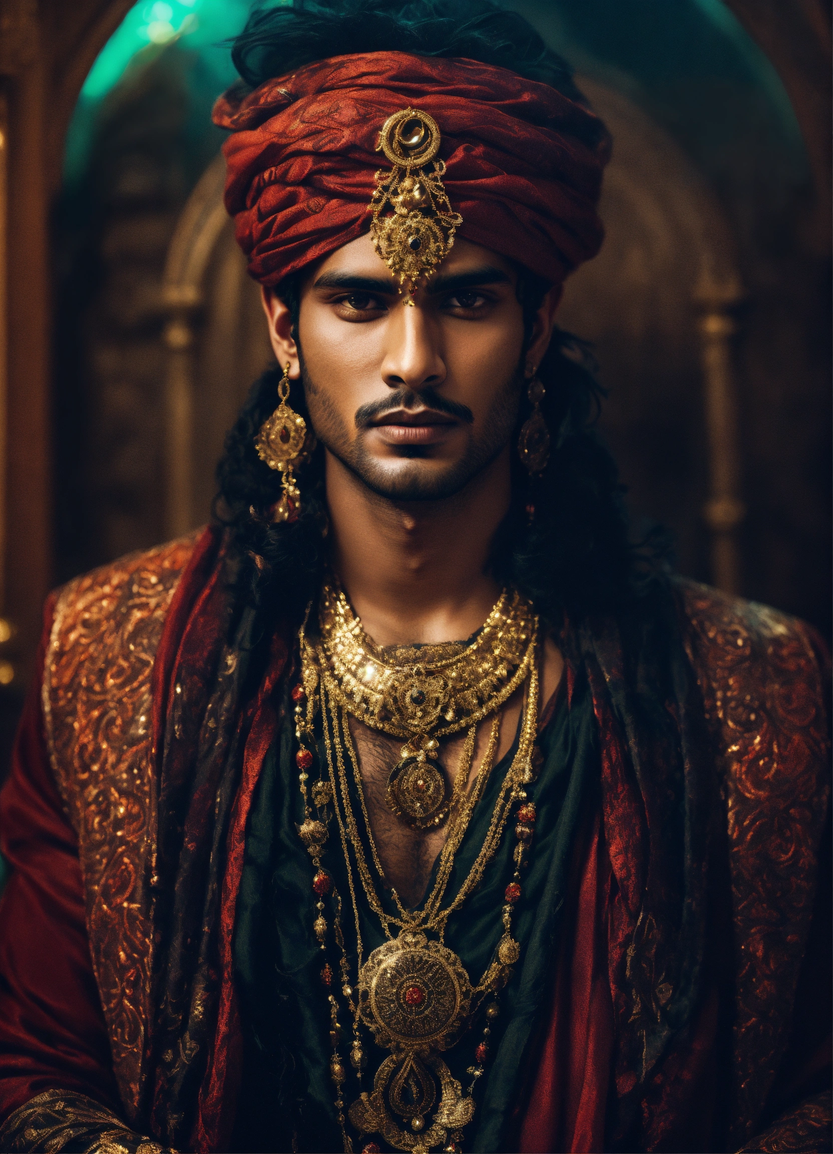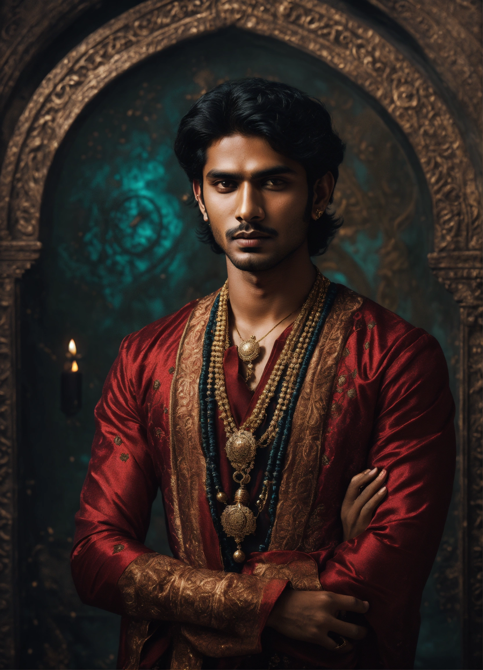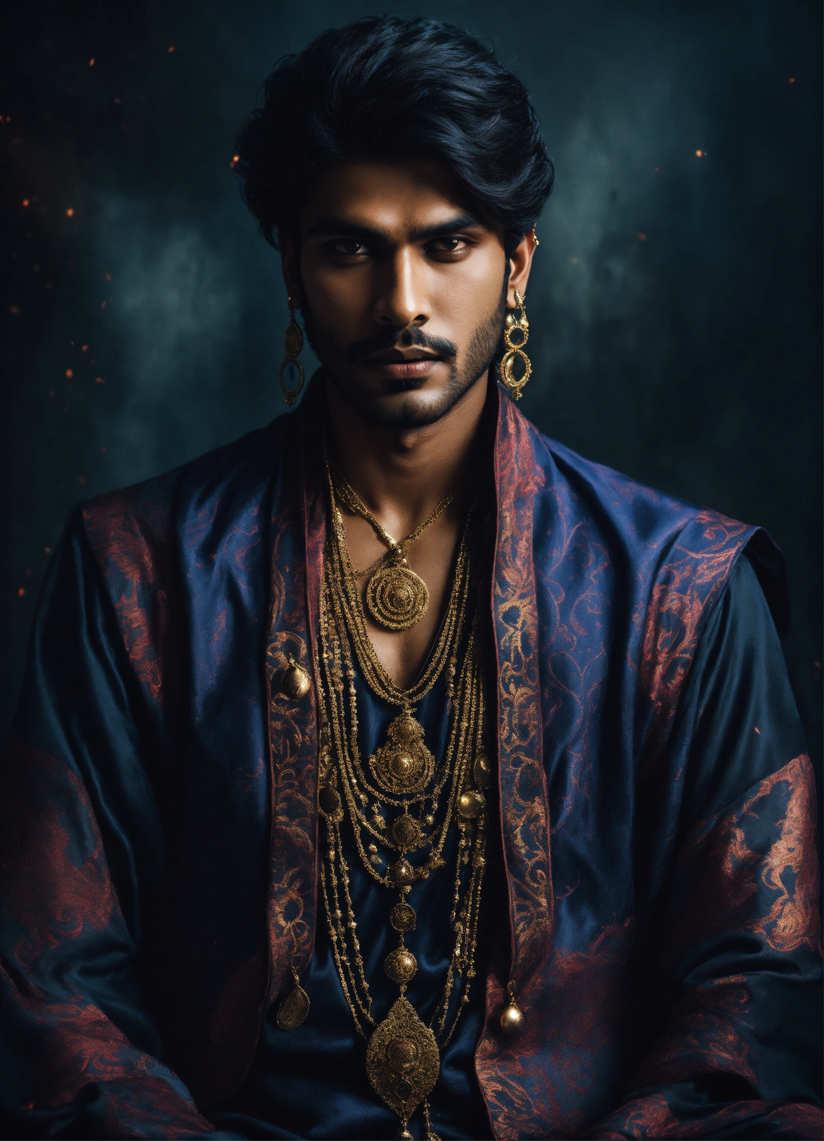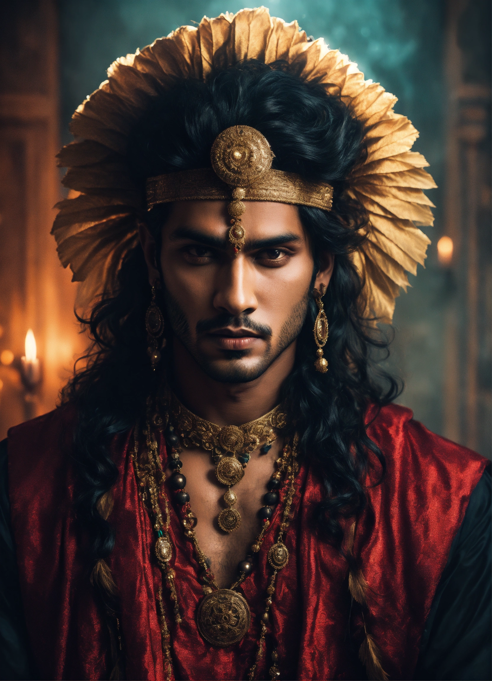 Young handsome malevolent indian male sorcerer