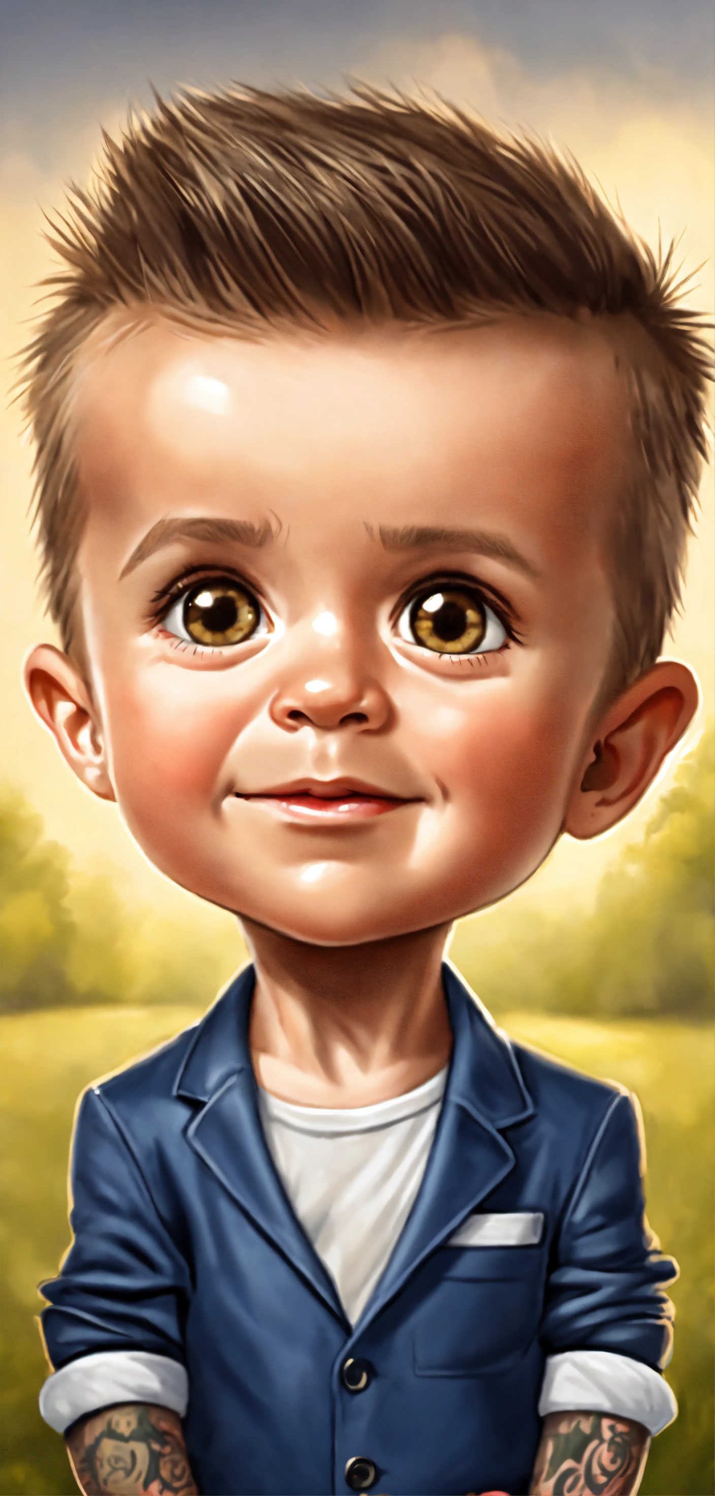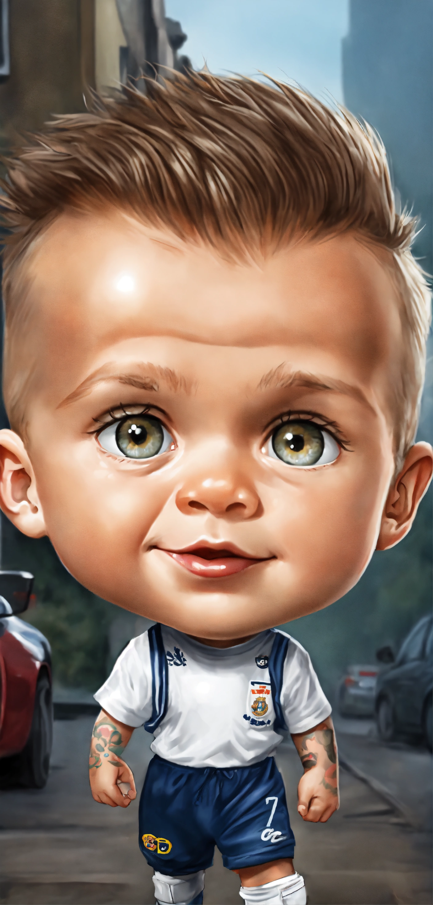 David beckham cute baby cartoon big eyes realist caricature dent de devant écarté
