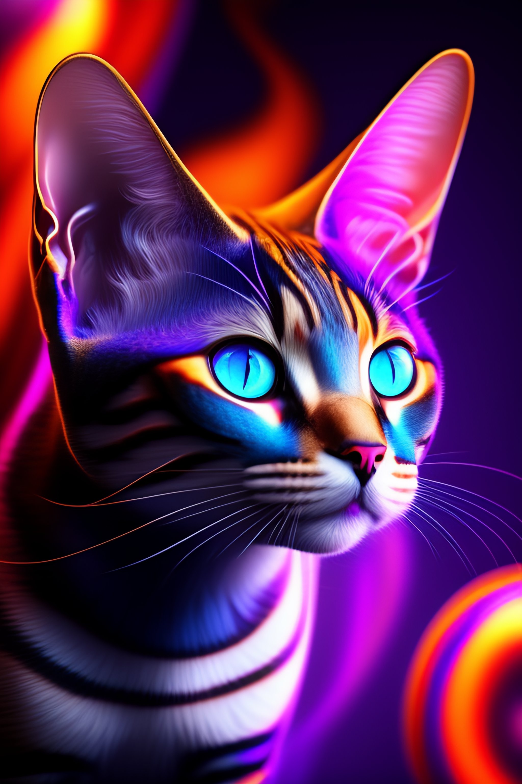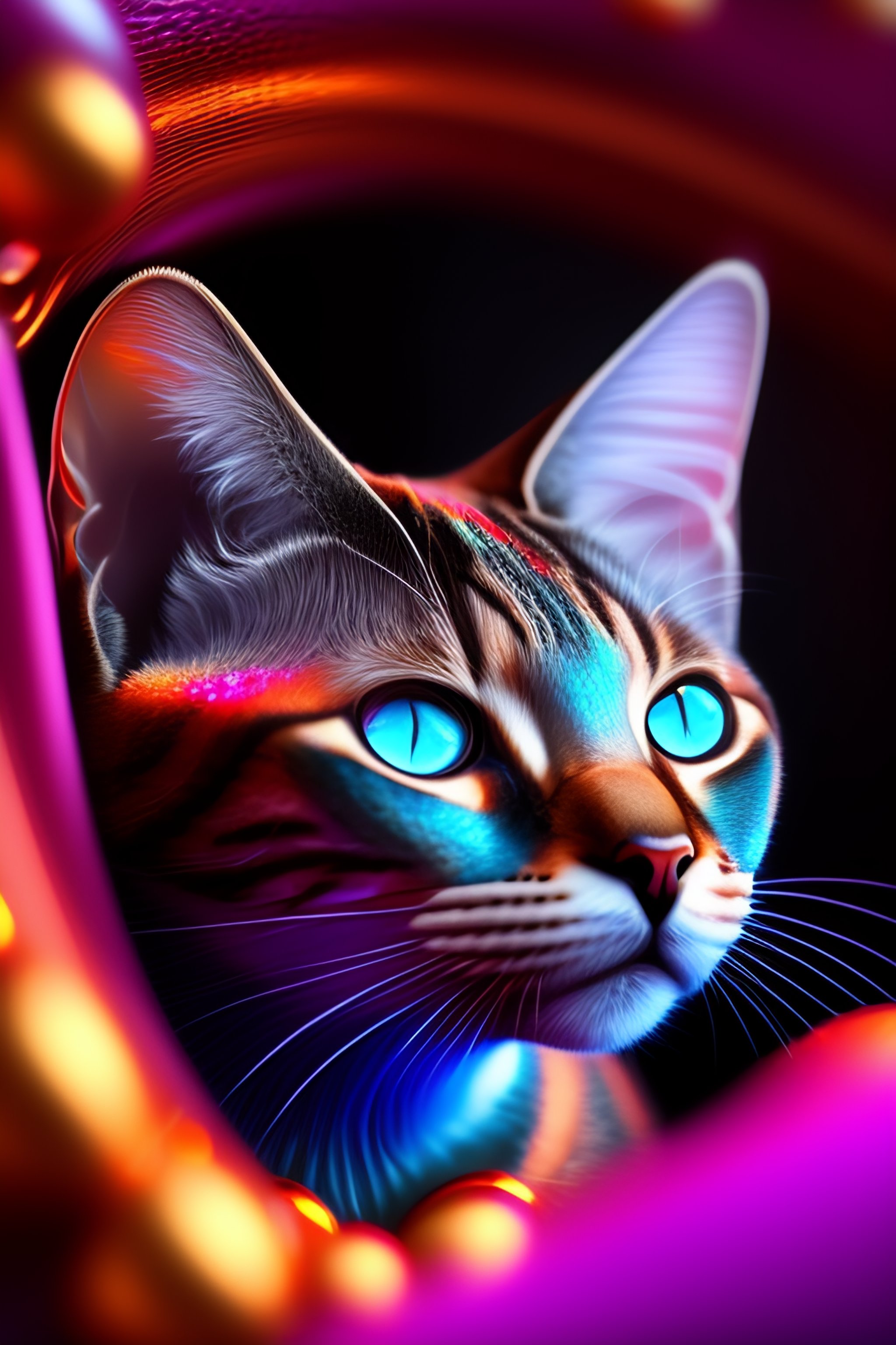 Aesthetic cat, photorealistic eyes, shapeshifter humanoid, fursona, photo realistic eyes, bejewelled, long fine, wispy fur, photo realistic psychedelic, long, fine, wispy fur, beautiful silver smoke grey lavender burgundy eyes, colourful, vibrant, in the style of josephine wall, ryohei hase, background, electricity and ice sonic fibonacci swirls symmetrical generativ isometric voxel 3 d superstructure in deep colours, sharp focus, wide angle lens, 128k uhd unreal engine 5