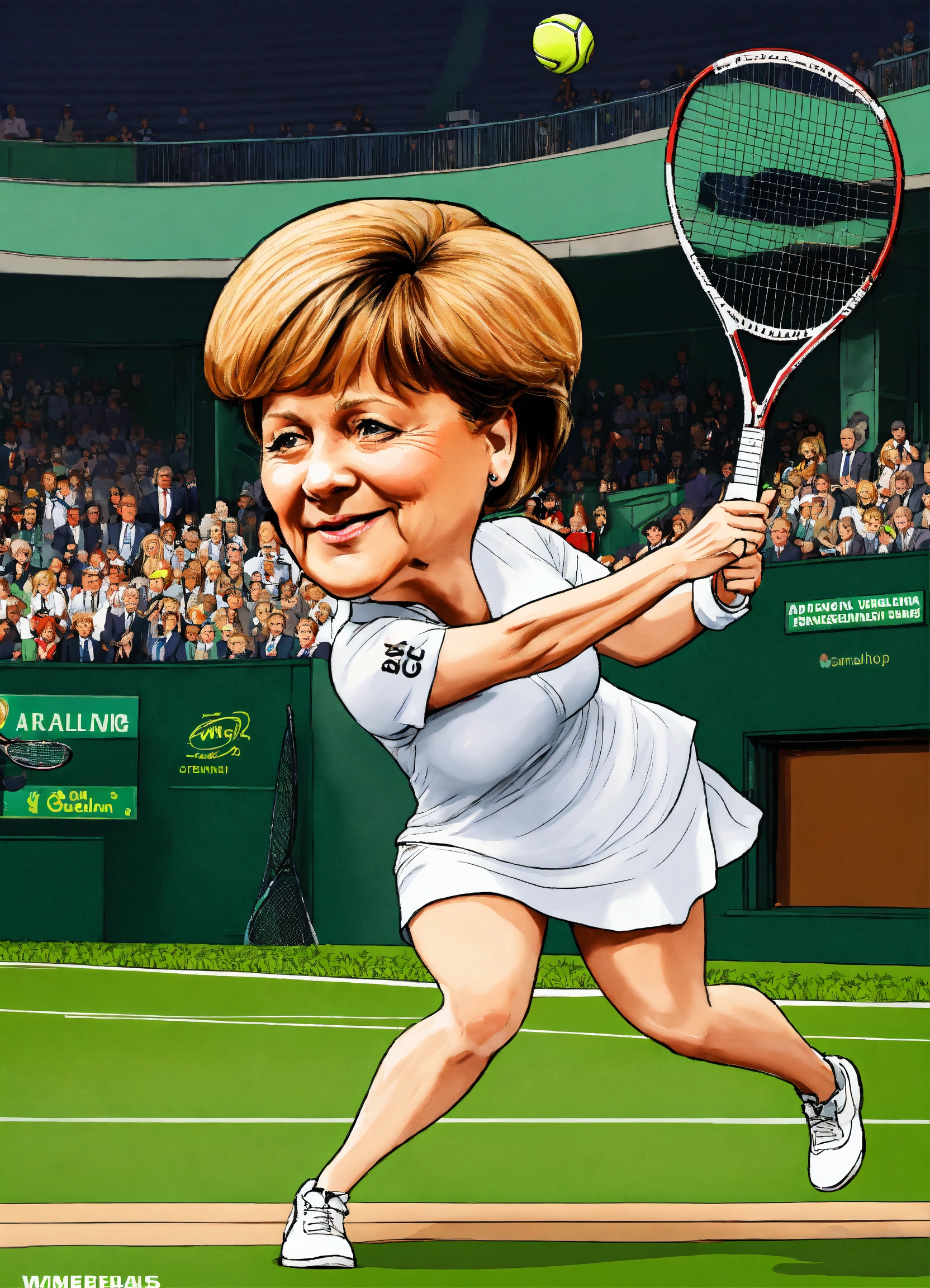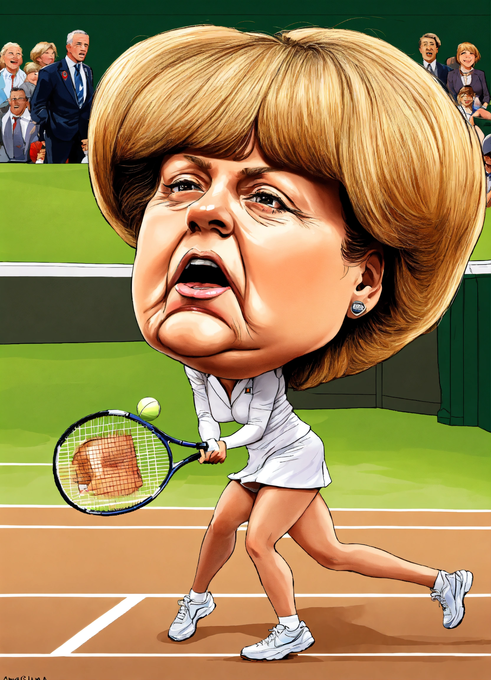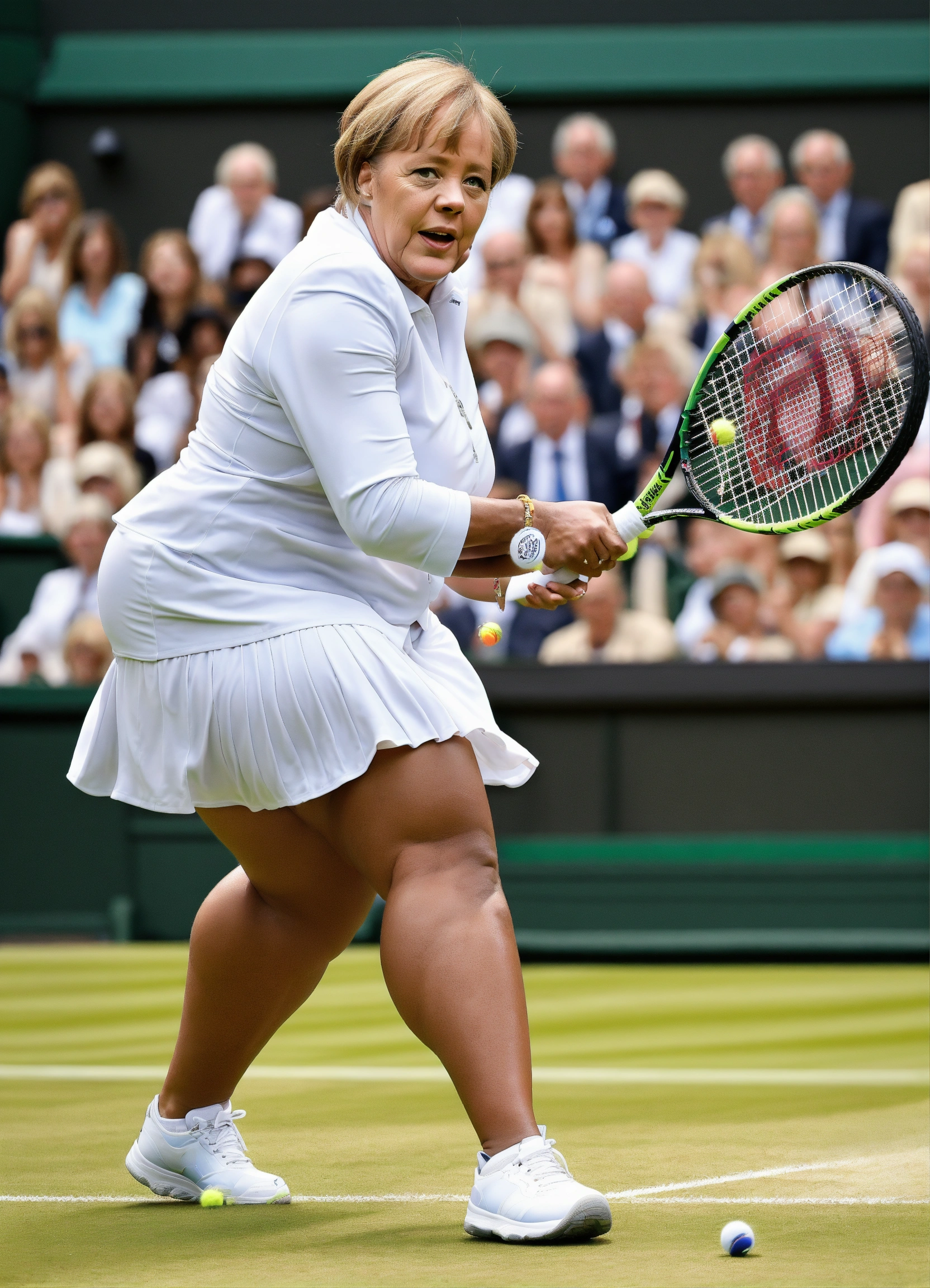 Angela merkel dropping the ball at wimbledon against serena williams