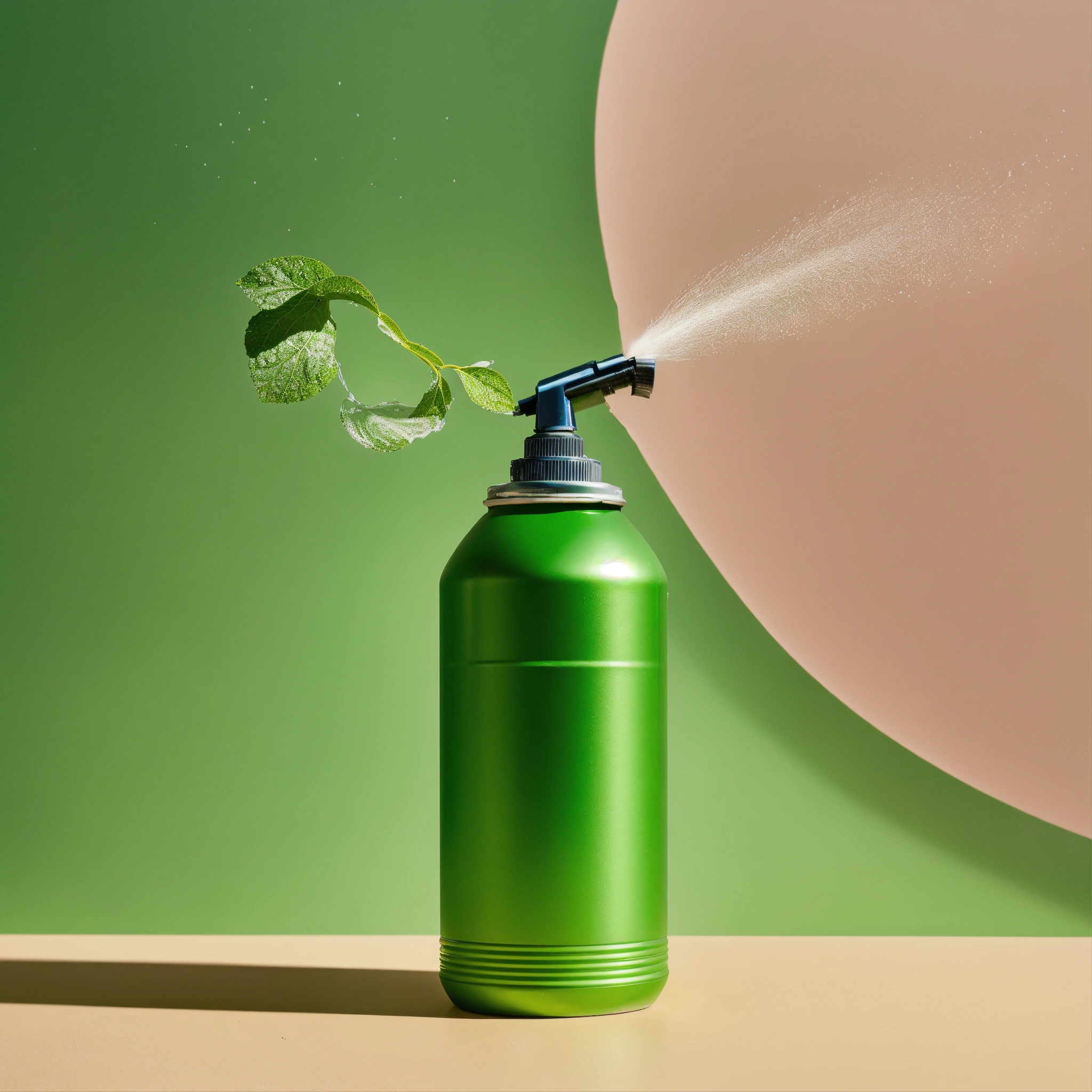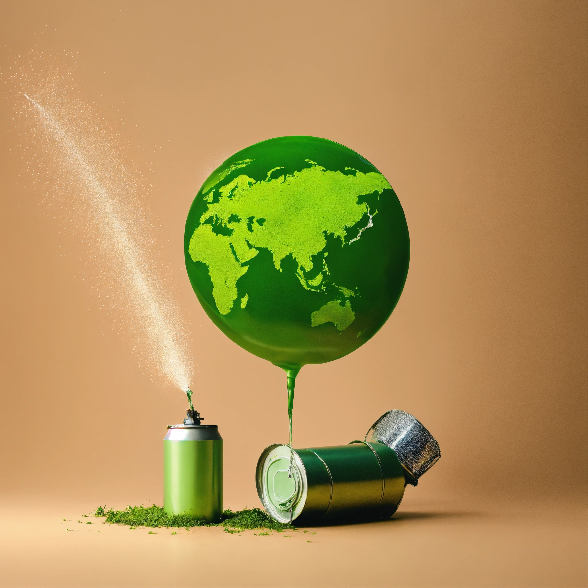 minimalistic picture of a green sustainable planet being watered by an aluminum spray can