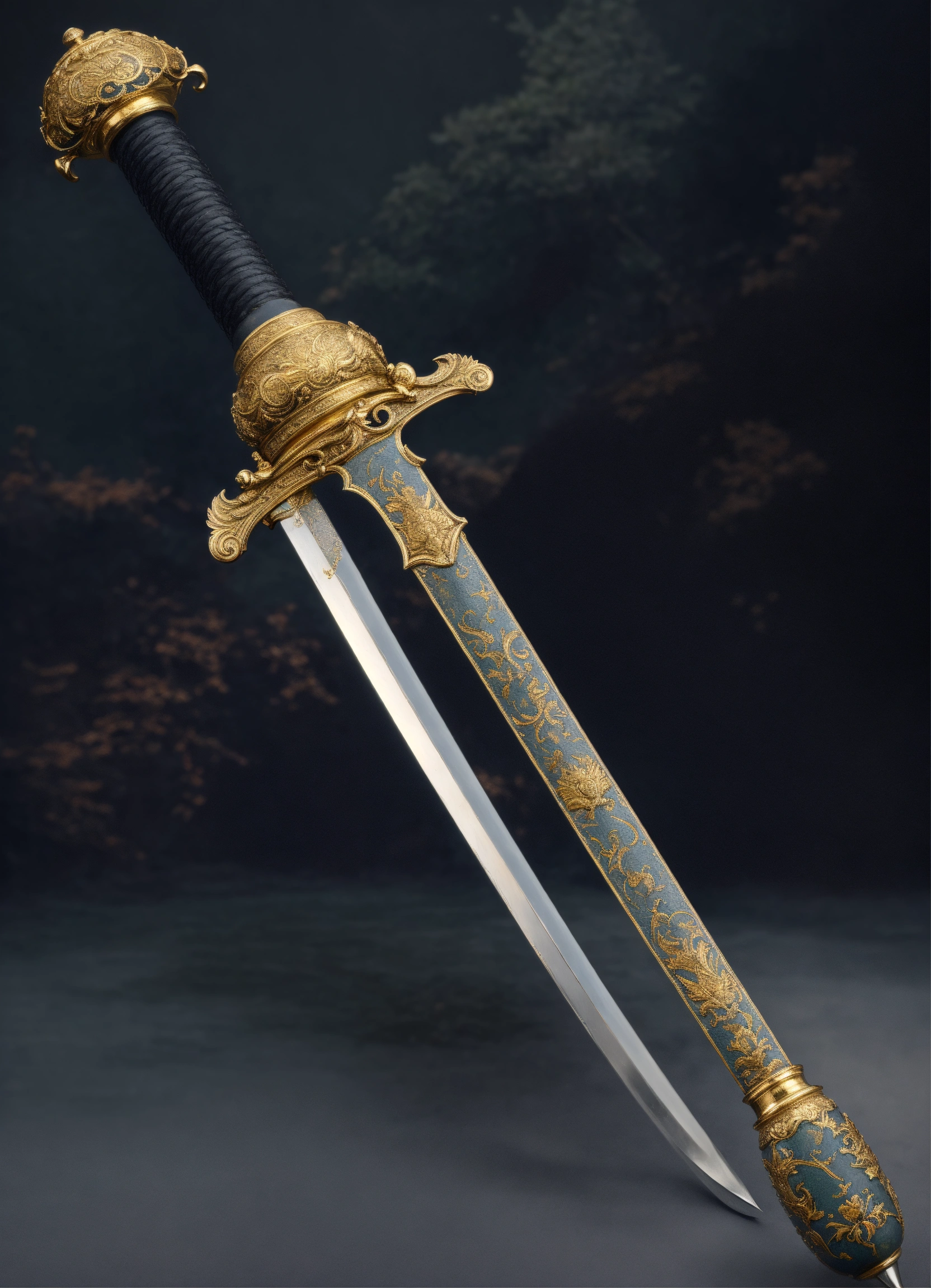 Edo period cup hilted rapier, ford hallam style, shibuichi, shakudō, sentoku, highly detailed, artstation, concept art, sharp focus