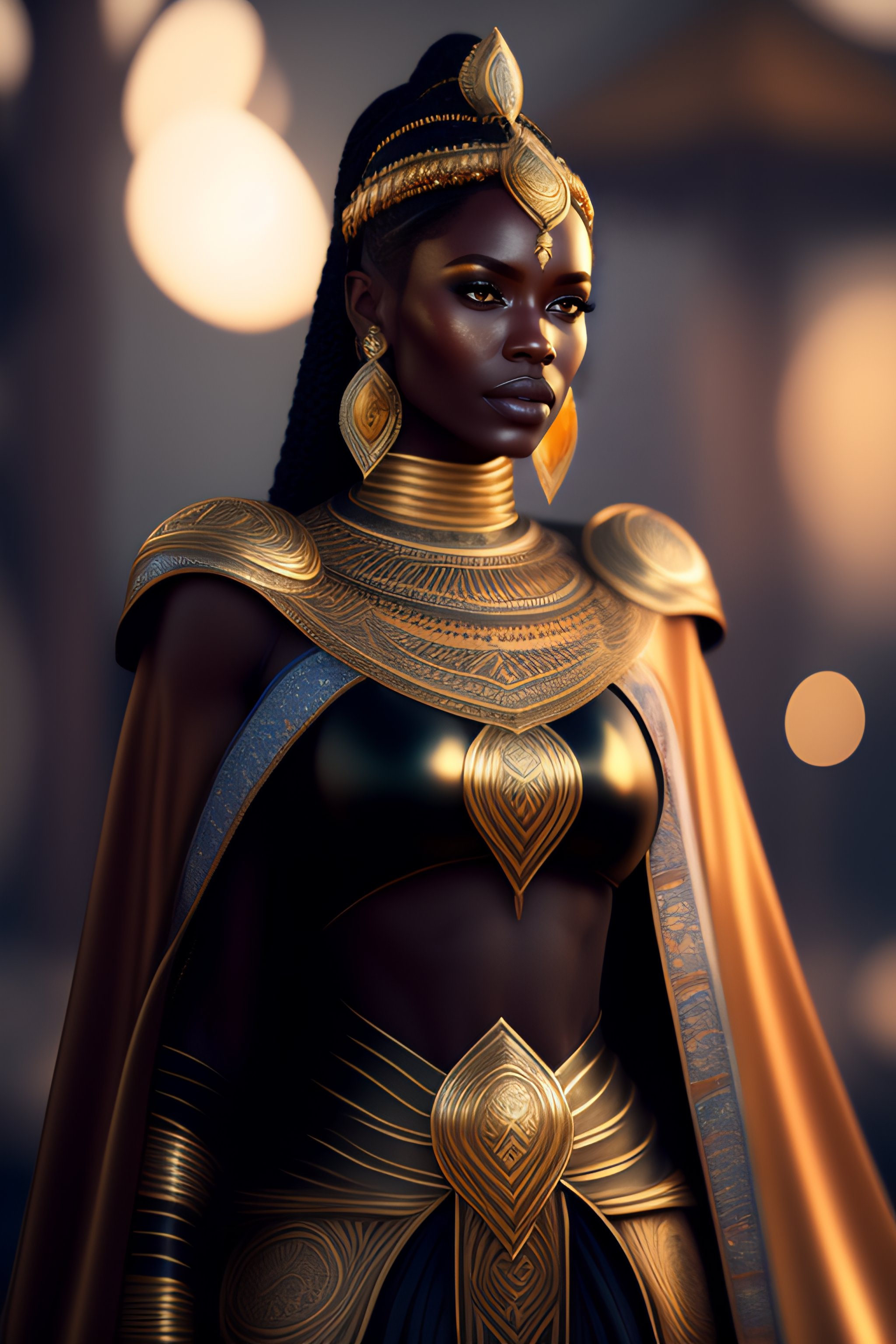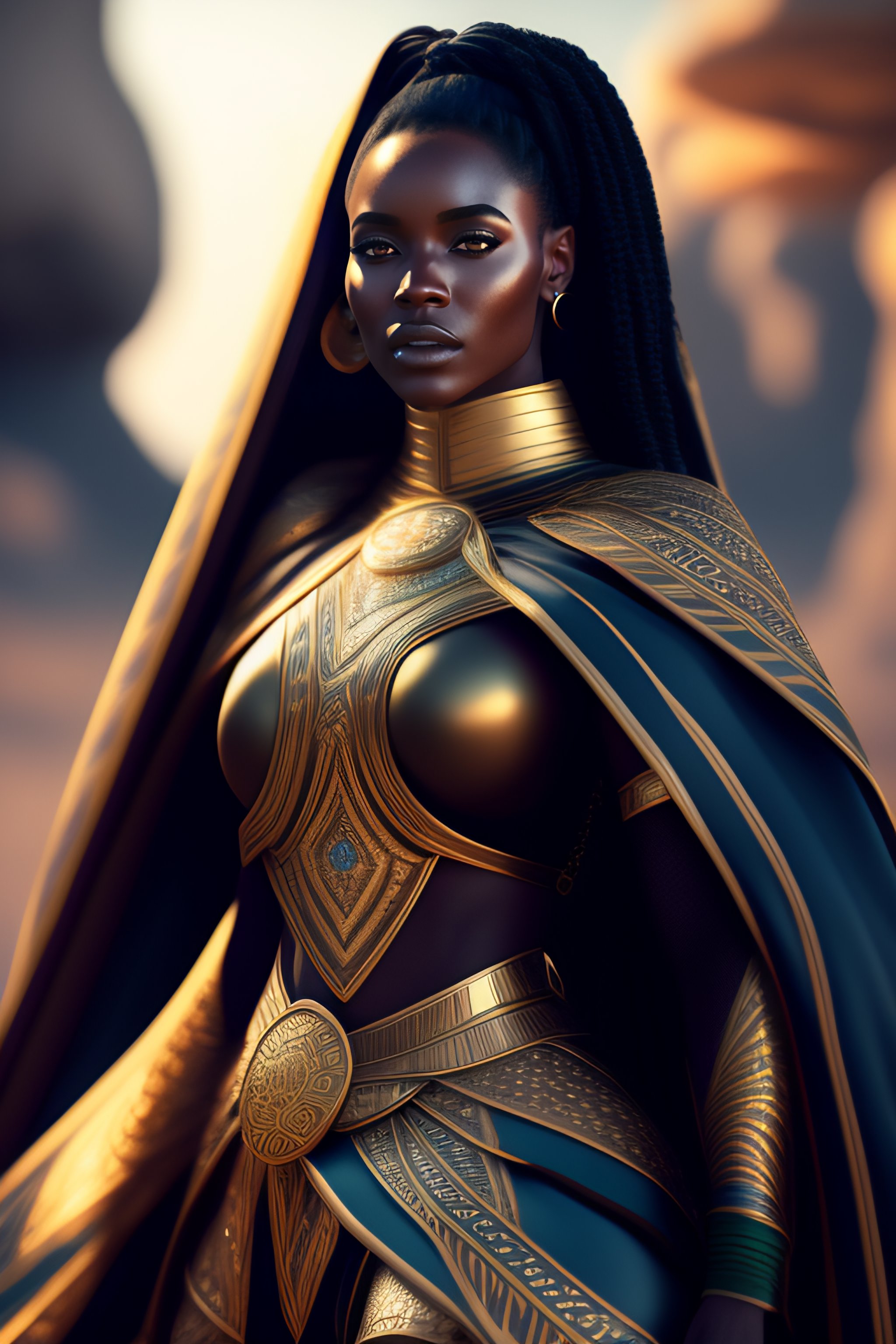 Female celestial being, marvel comics, full body, character concept, intricate african clothing and cape, black and white photography, magical, tribal patterns in rmour, sparks, cinematic lighting, cinematic atmosphere, 8 k octane render, unreal engine 5