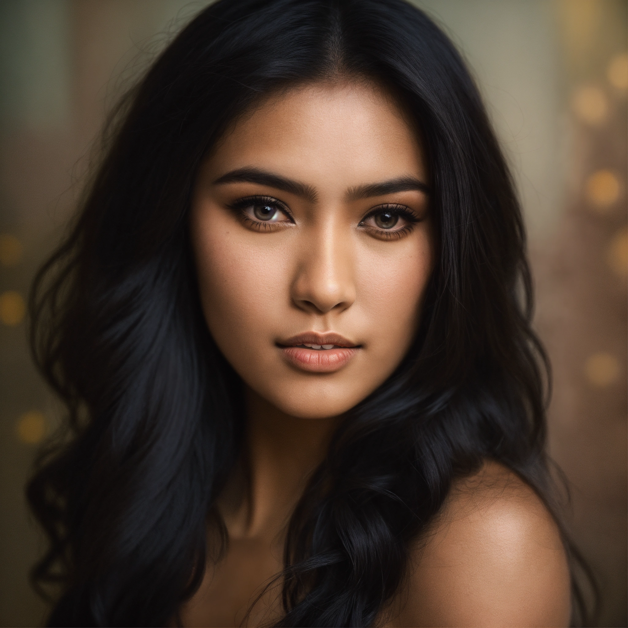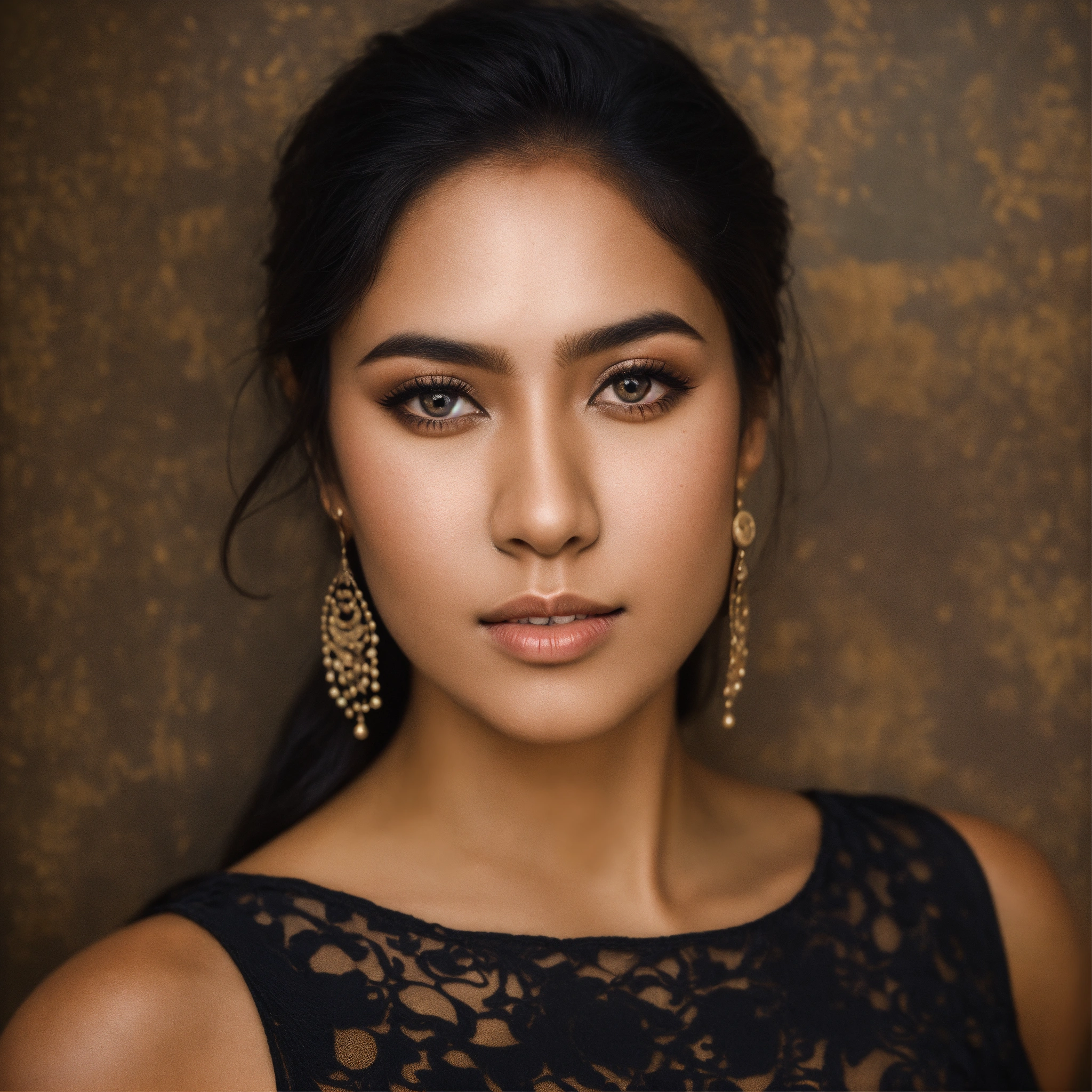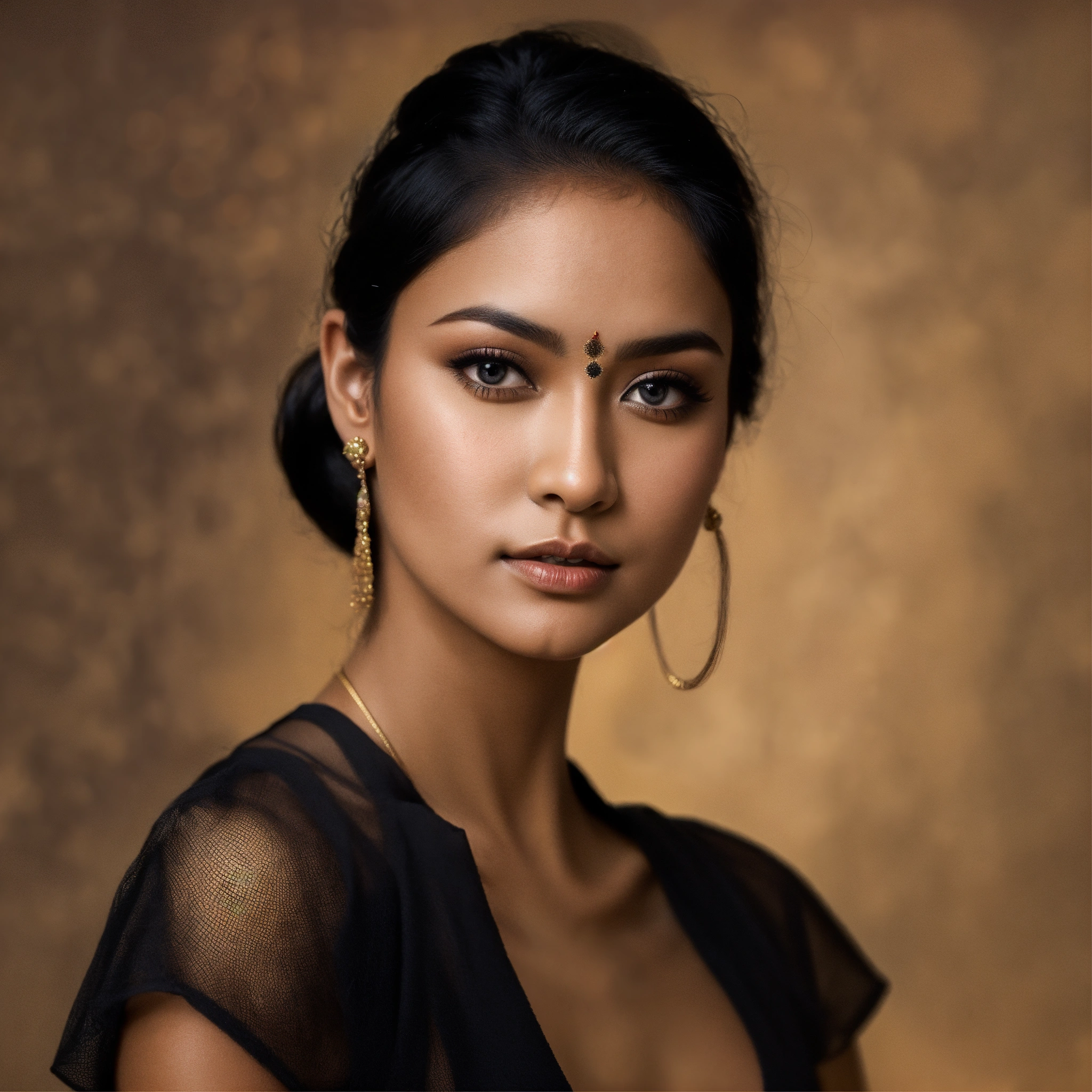 Create a photograph of a beautiful woman of mixed indian and asian race in a tiny black dress, no dot on forehead