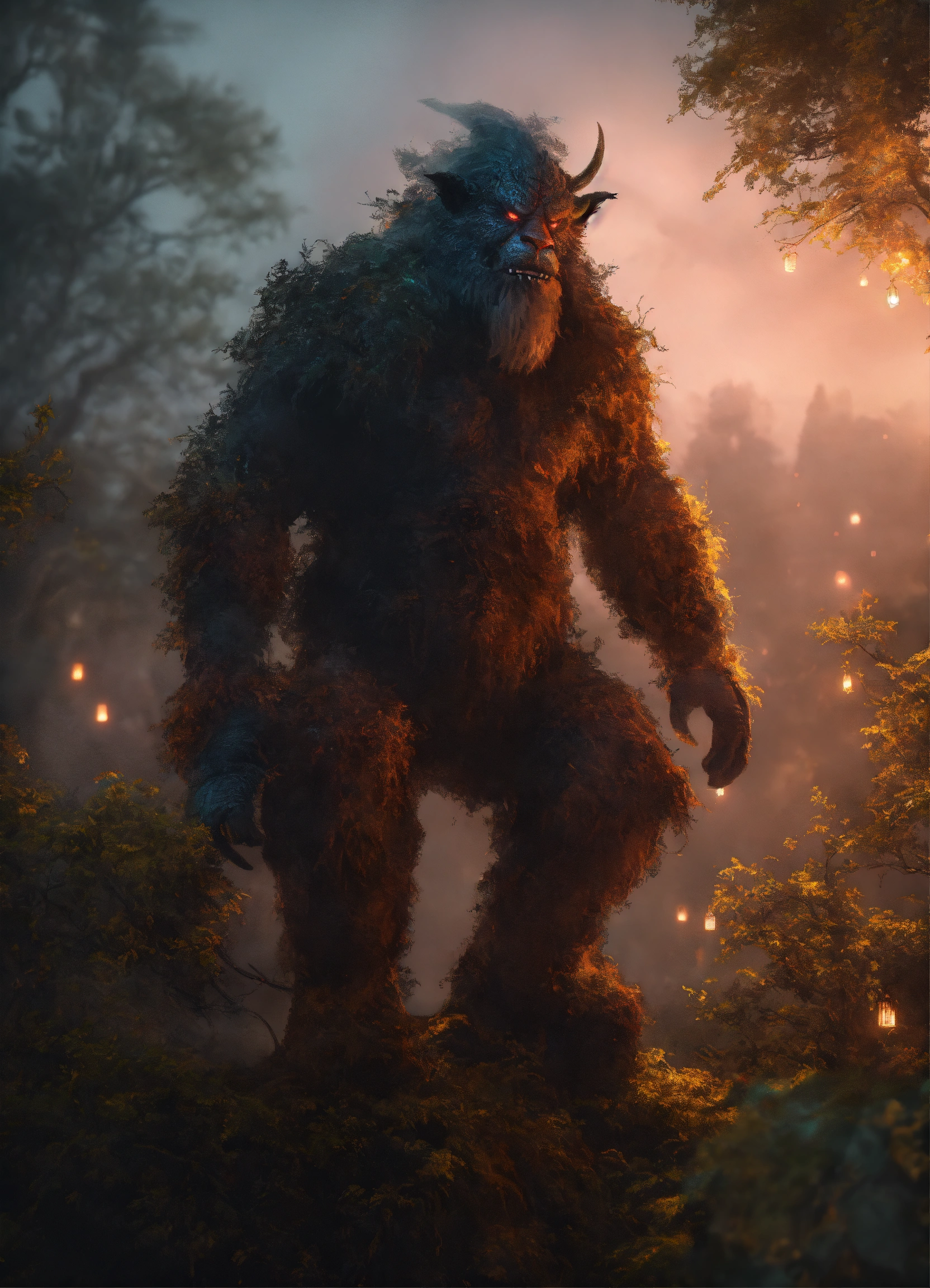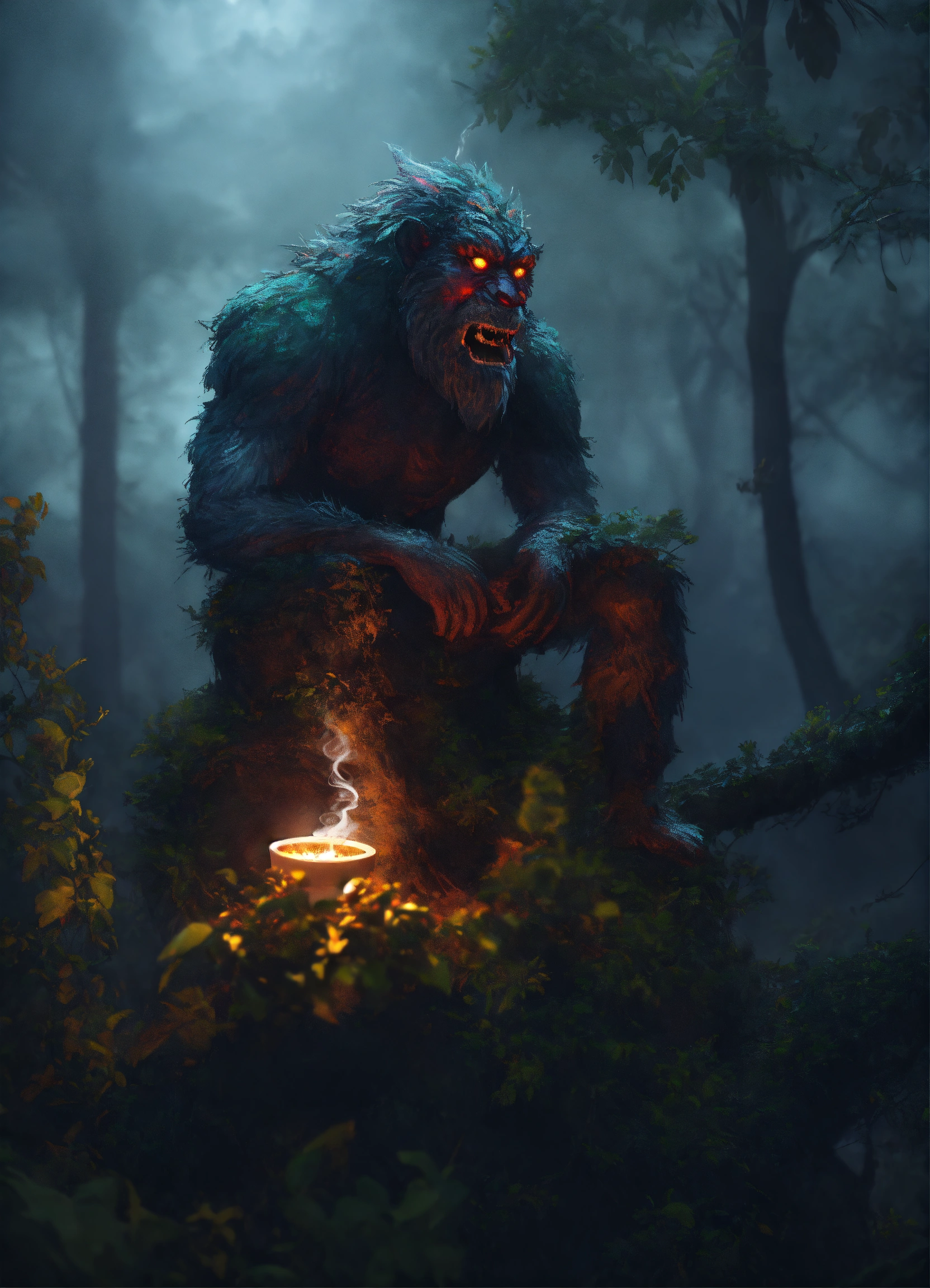 Cyril ramaphosa scary hairy humanoid monster smoking a tobacco on the tree top, forest, foggy weather, night light, intricate, sharf focus, concept art, artstation, fantasy, octane render, cinematic lighting, otherworldy