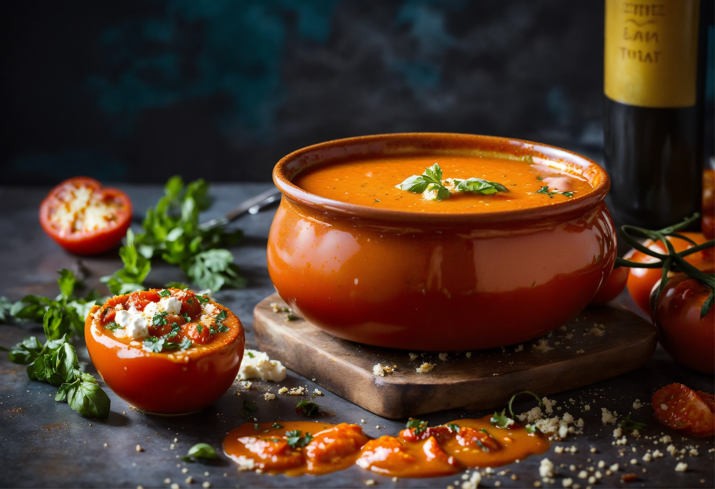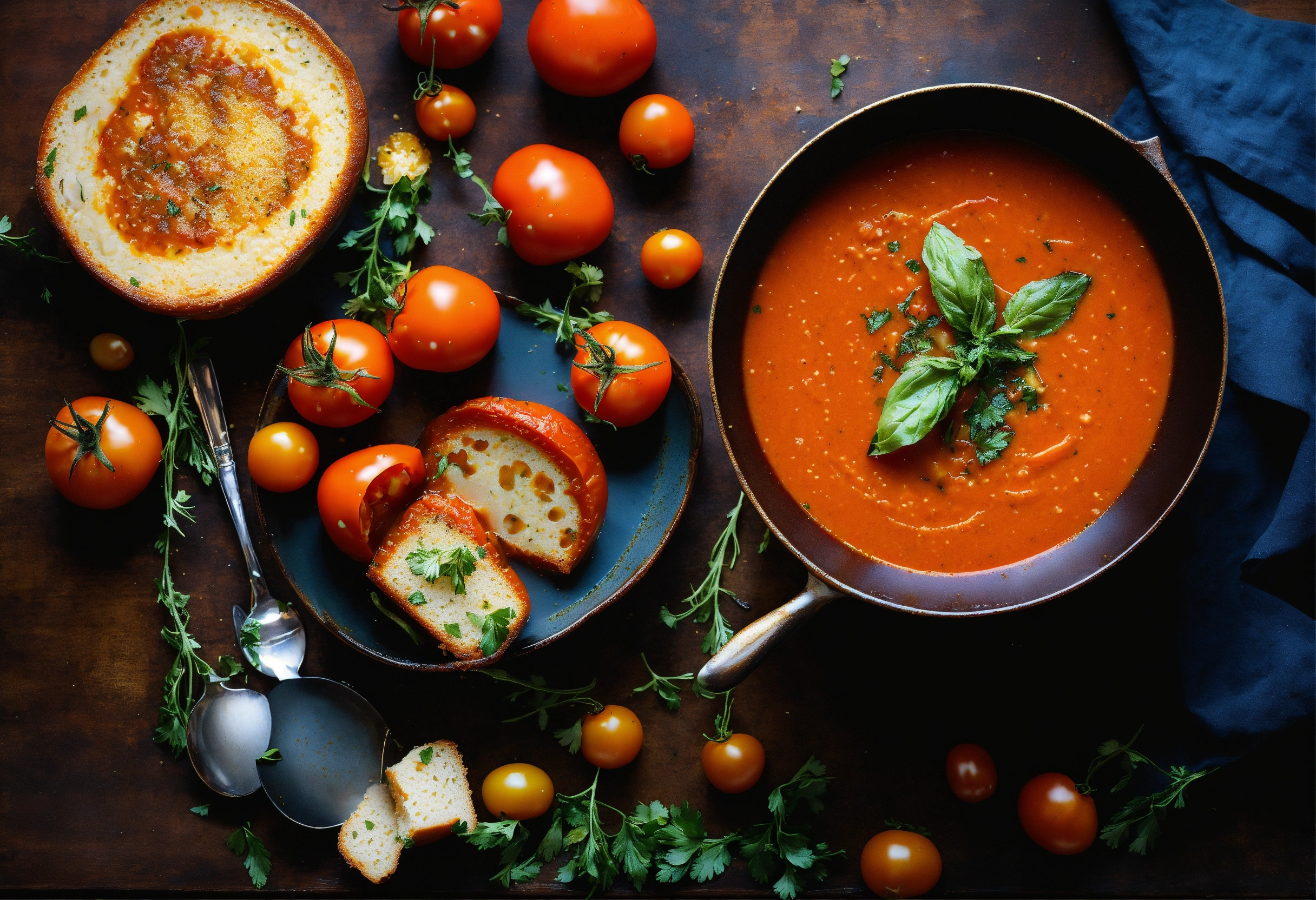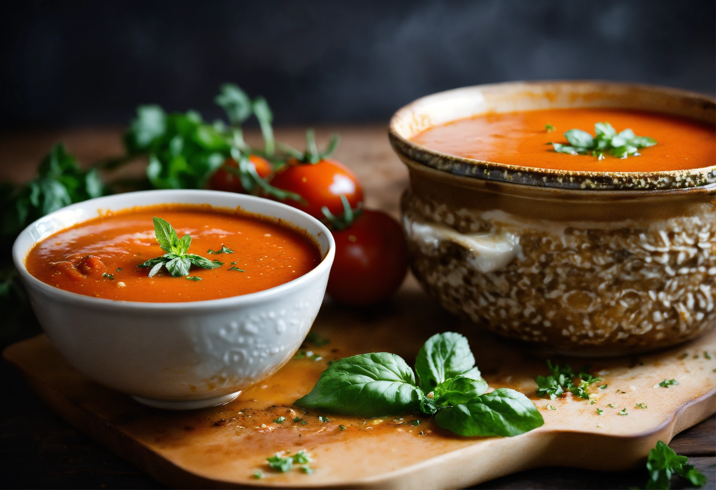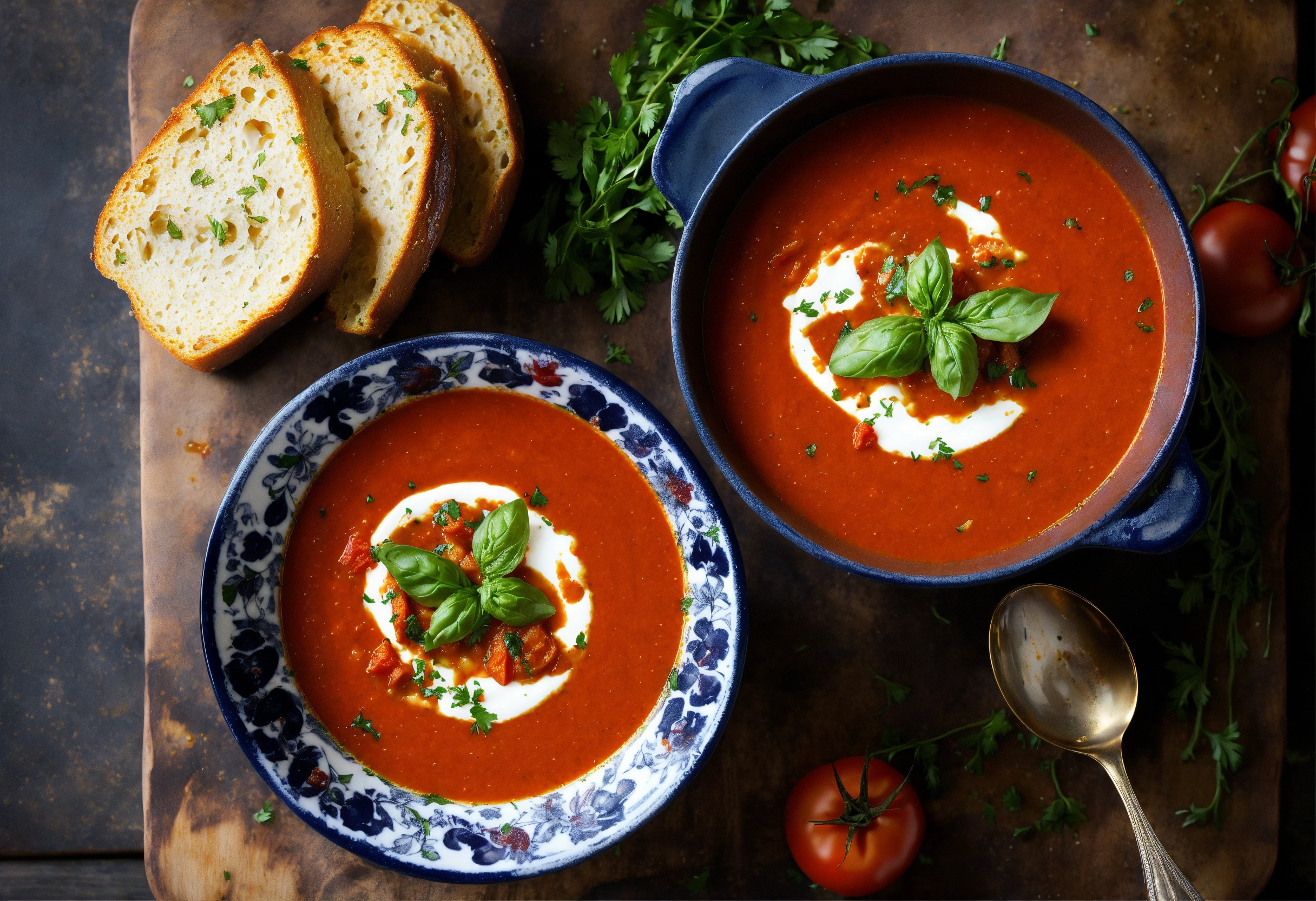 Capture the essence of a homemade oven roasted tomato soup in a single image for our recipe website. show off its golden, lacy texture and the perfect balance. make our readers crave a bite just by looking at your photo. we want to see it in all its mouthwatering glory, ready to inspire cooks and bakers alike. get creative with your composition, lighting, and styling