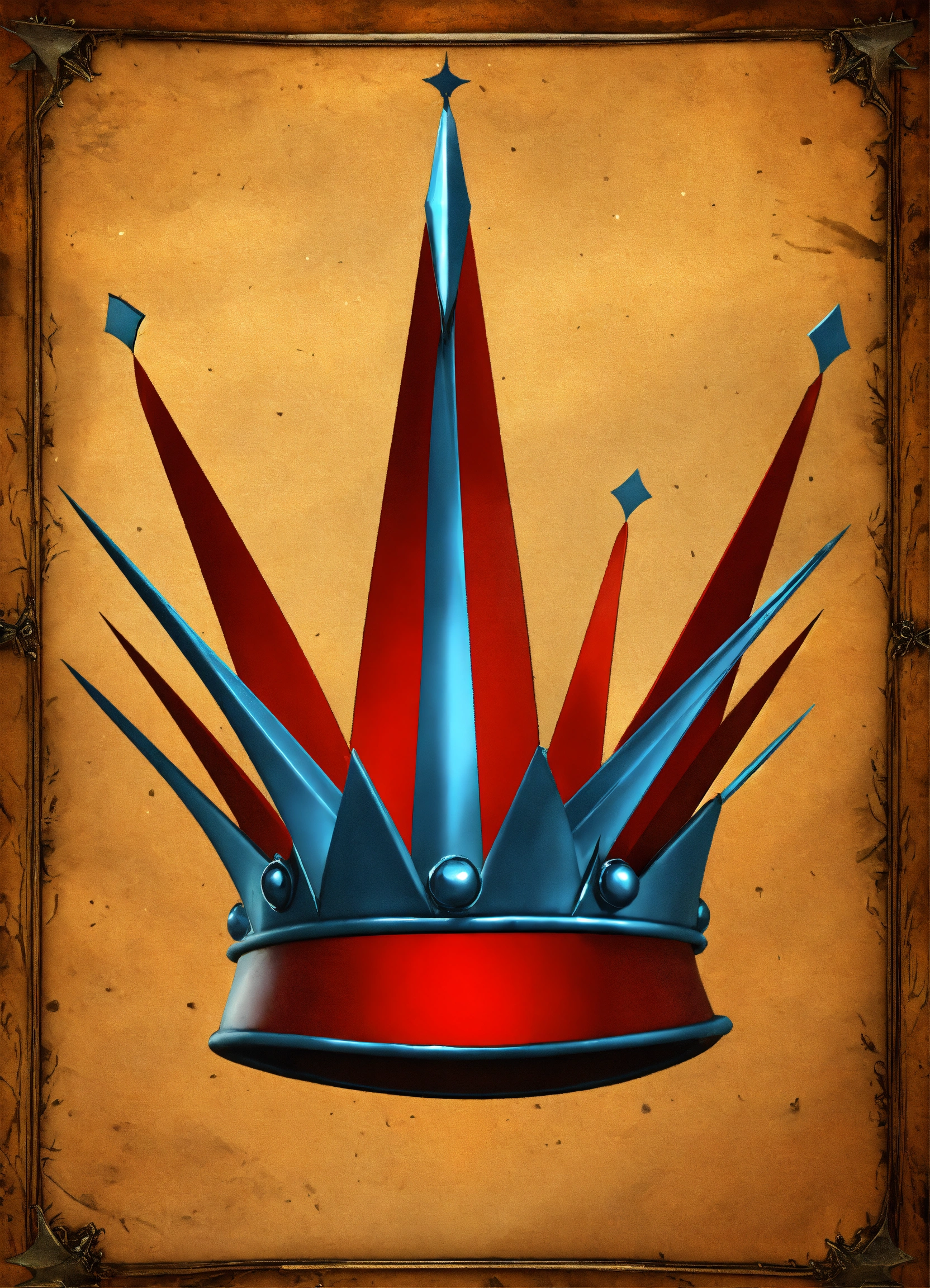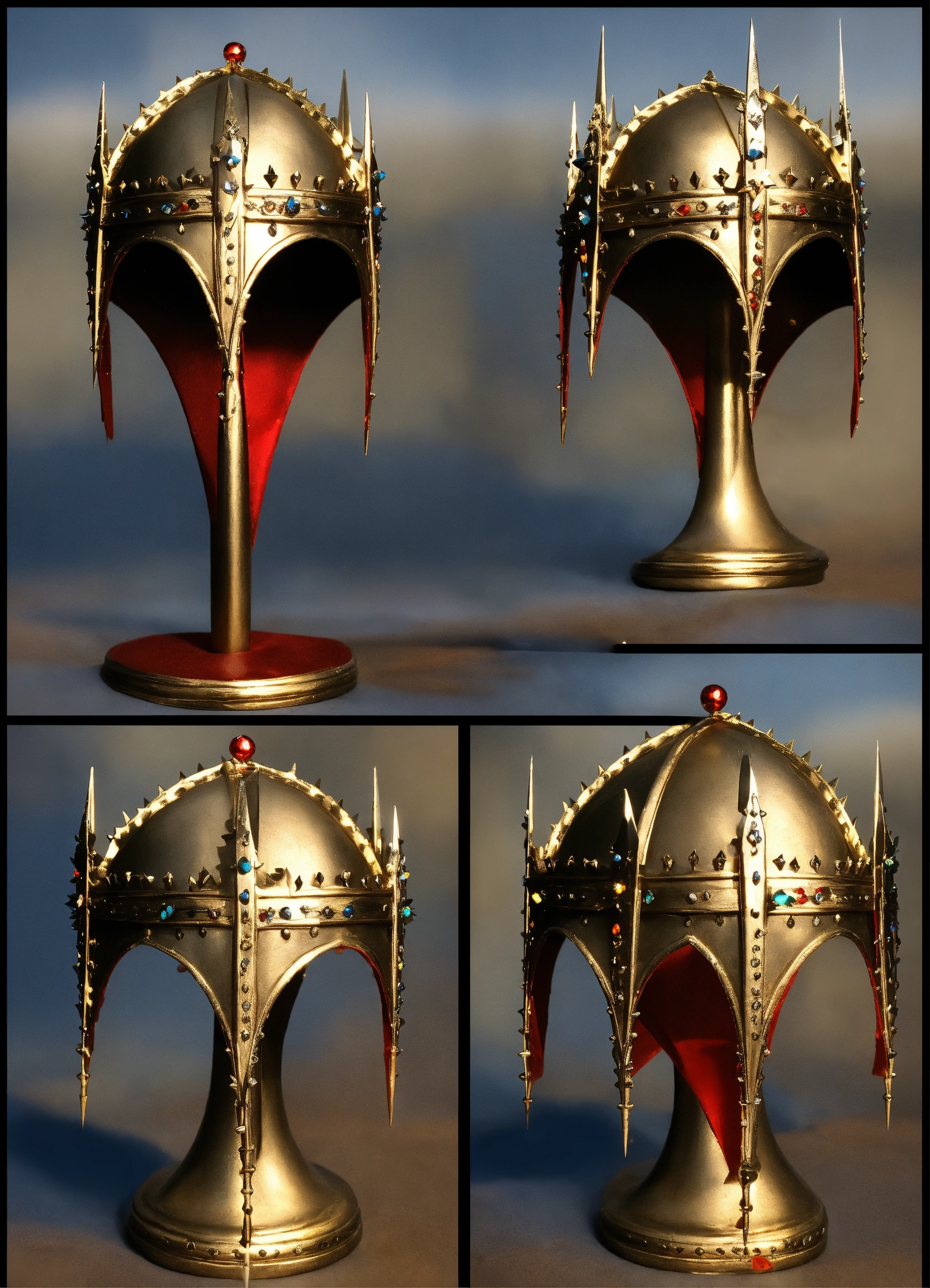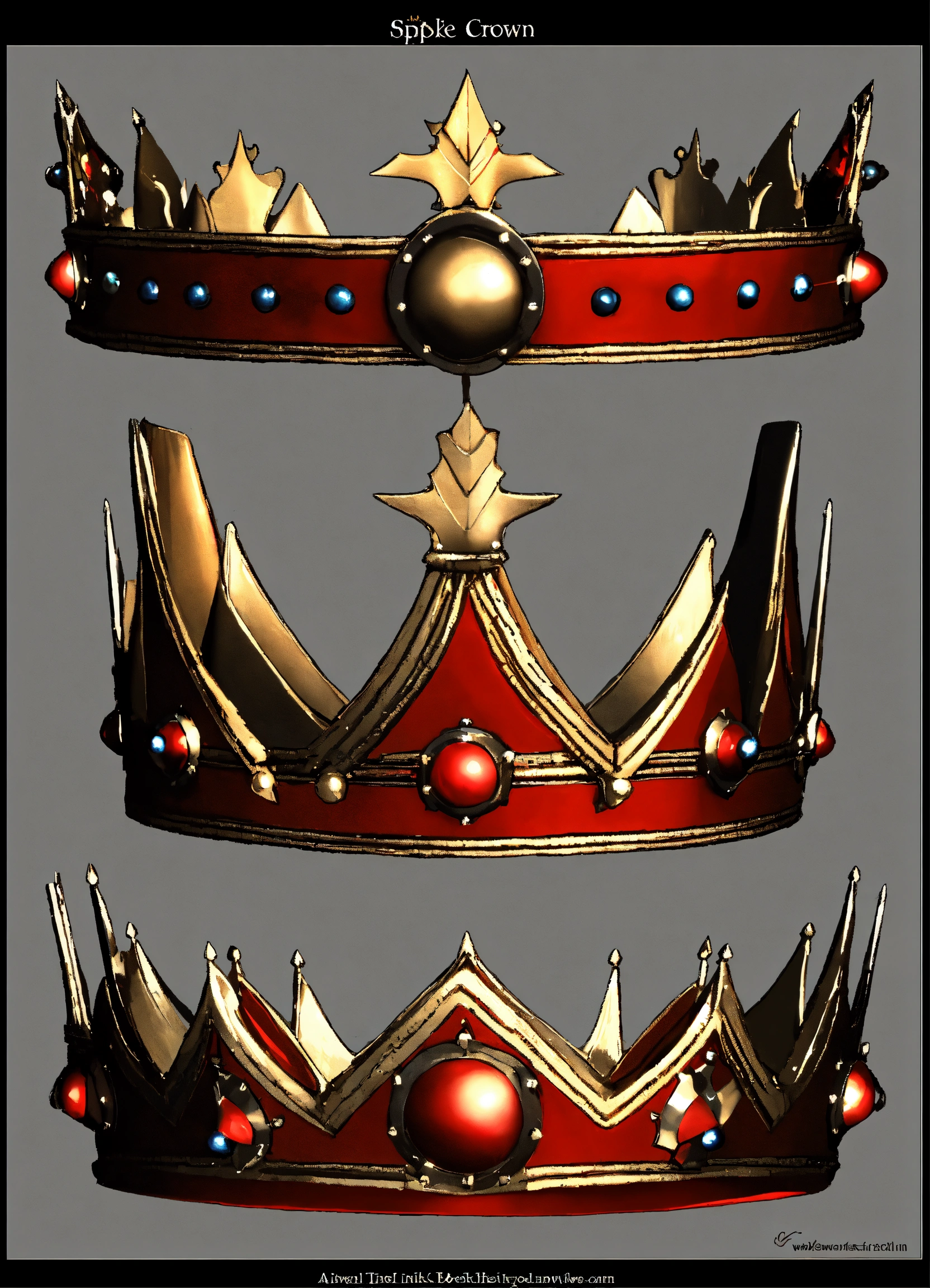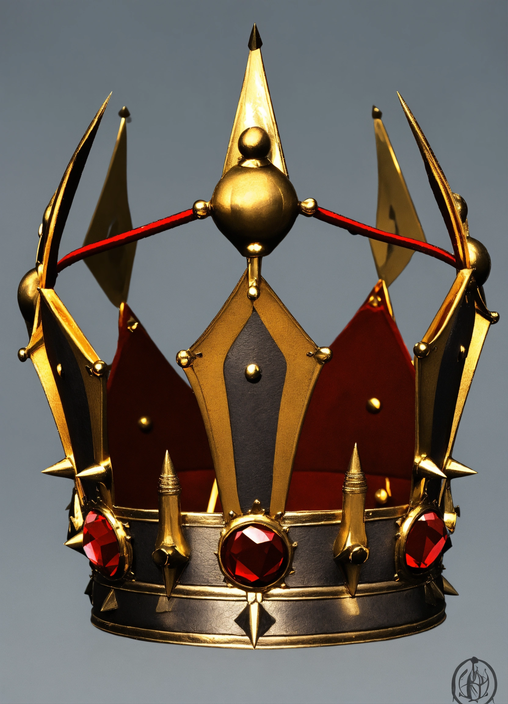 Create a crown medieval king crown with 5 spike in front, it has 5 tips, they are the tips of like swords, but smaller. side view, only 5 tips, 5 spike crown only
