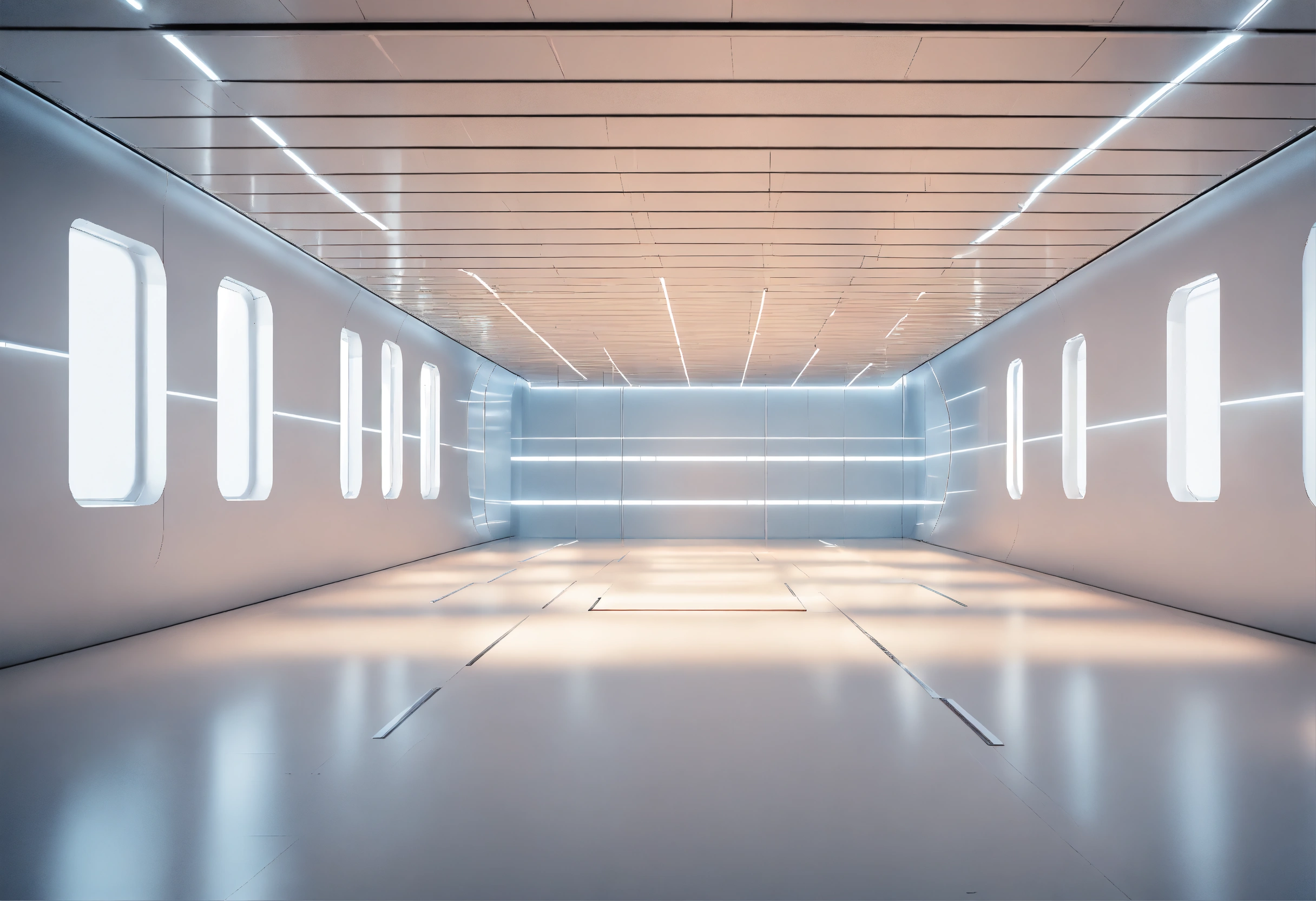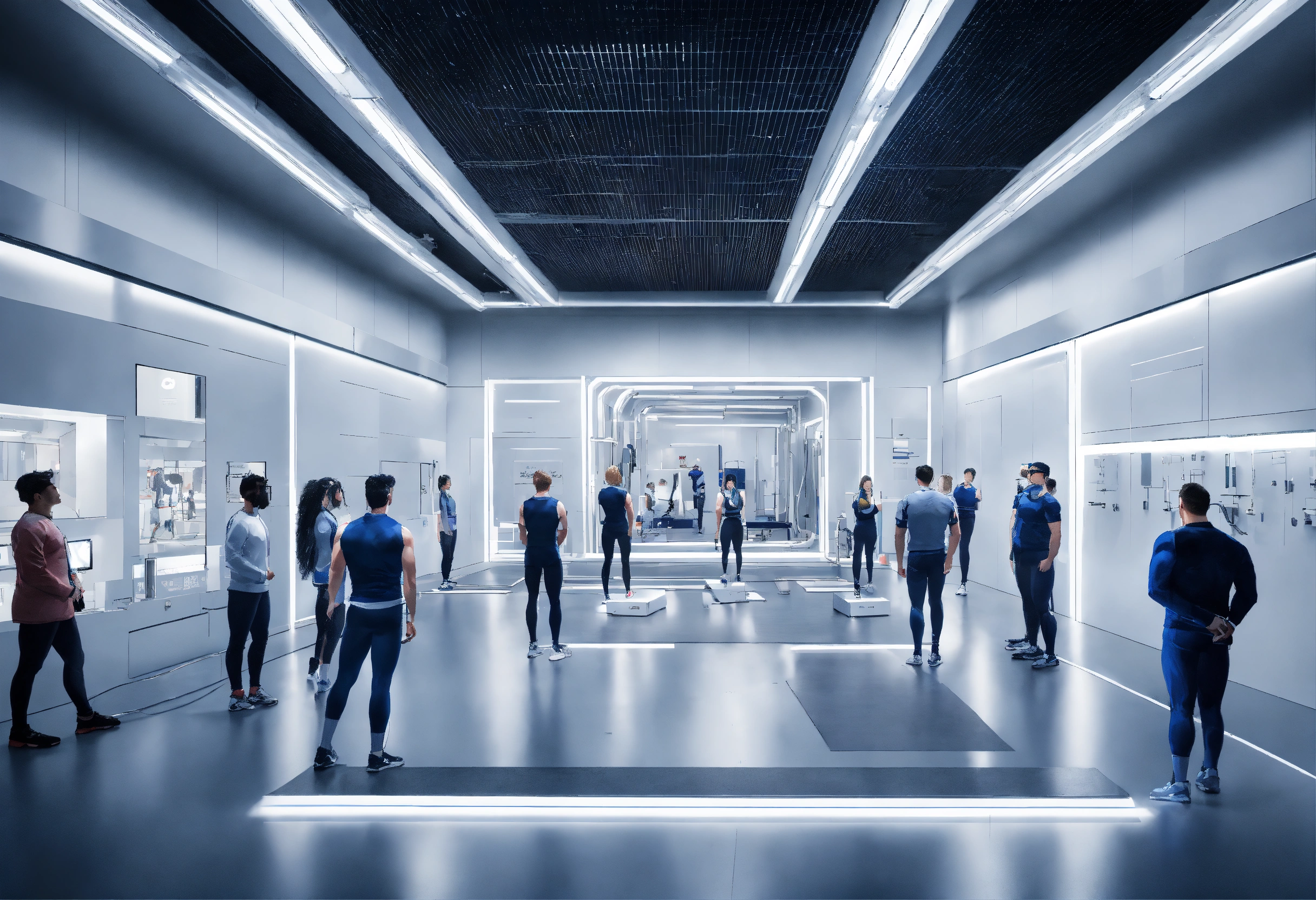 A realistic photo of a crowded, large, cubic, futuristic training room with white metal walls, white illumination, no windows, hyperrealistic, hyperdetailed, 8k