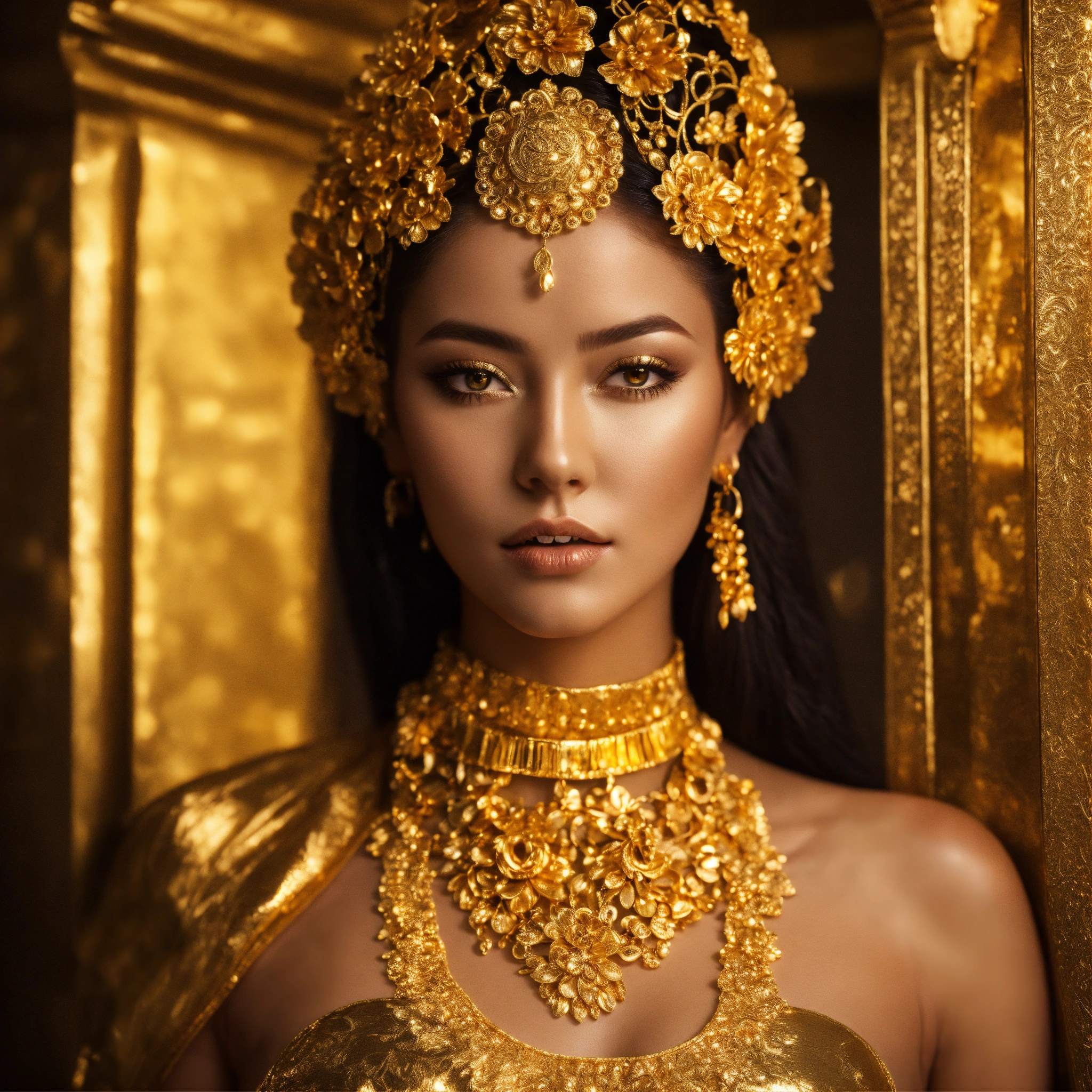 Silky gold full body woman