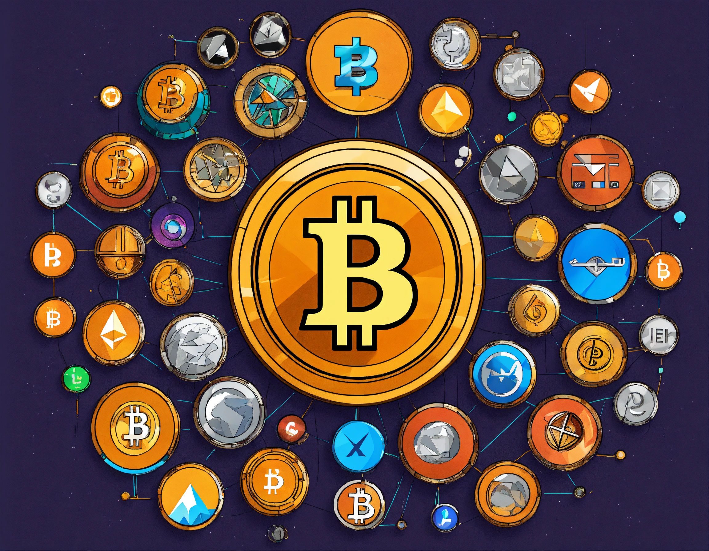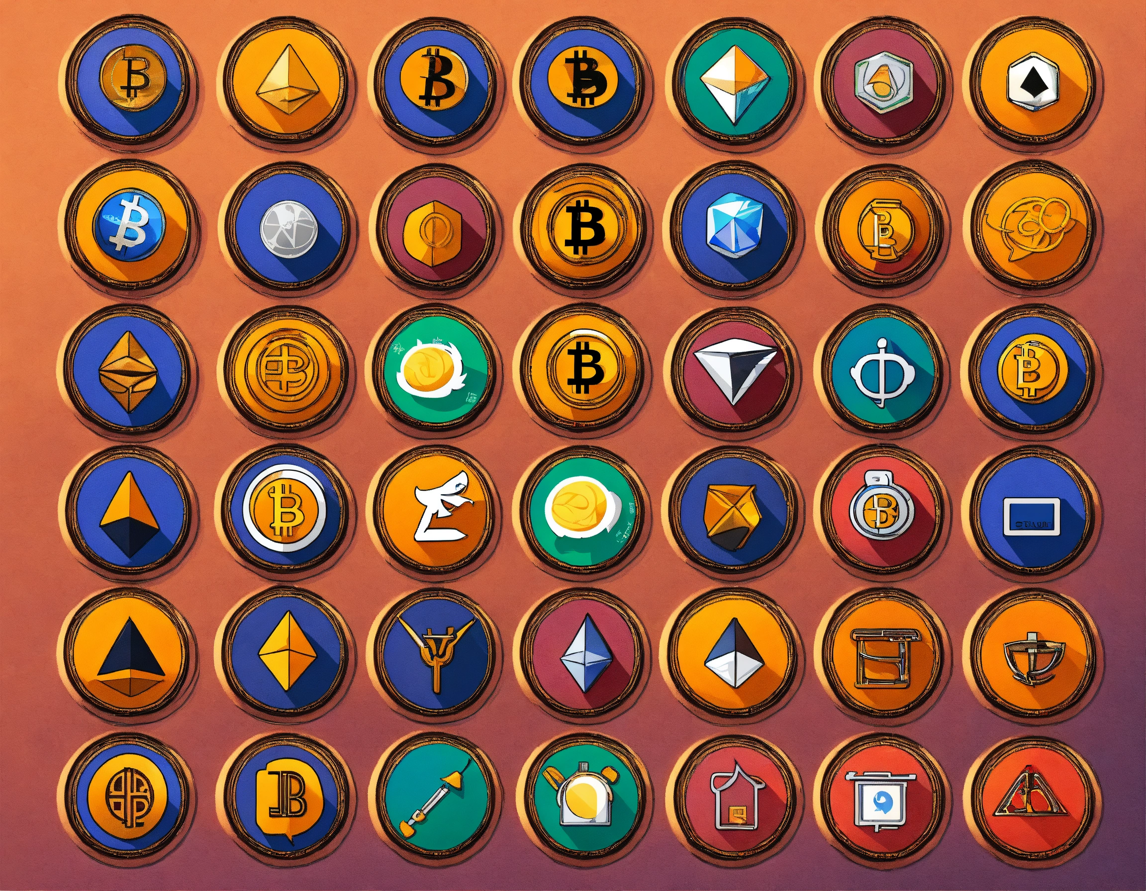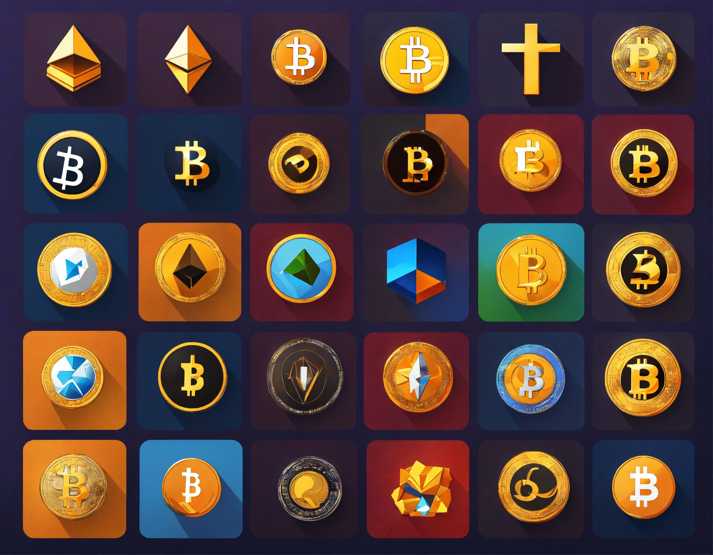 Produce a graphic representation that encompasses bitcoin, ethereum, ripple, litecoin, dogecoin, utilizing the icons for each variety. each cryptocurrency icon should only be used once, without over-emphasizing one type over another.