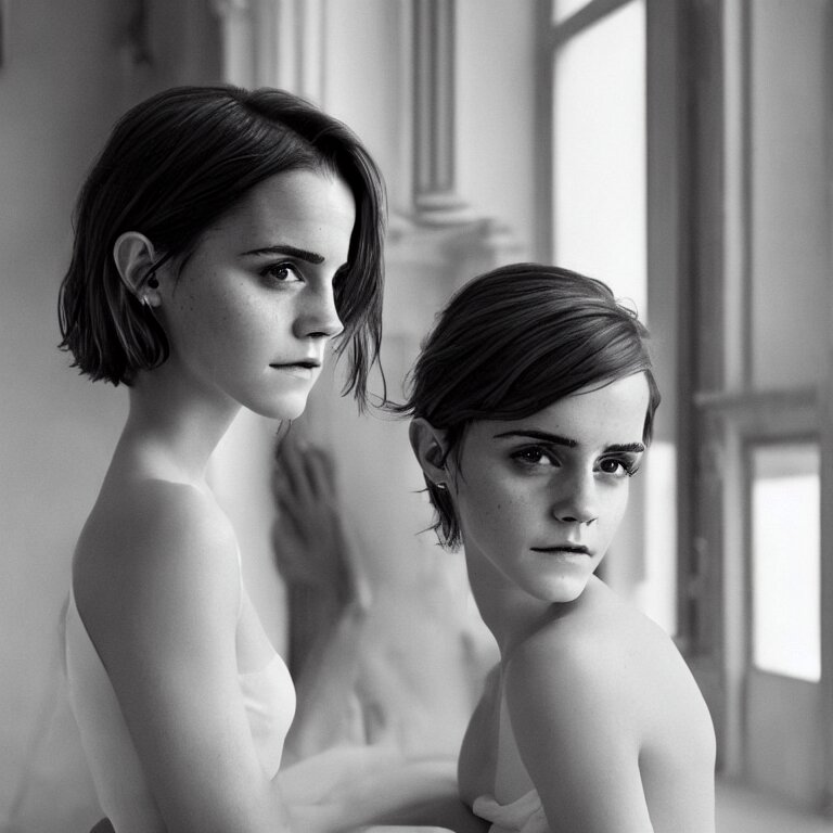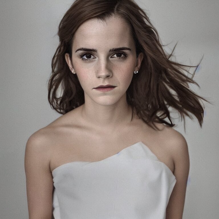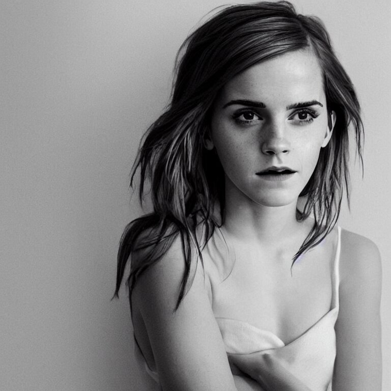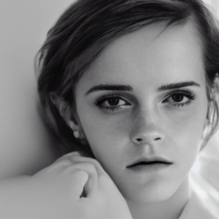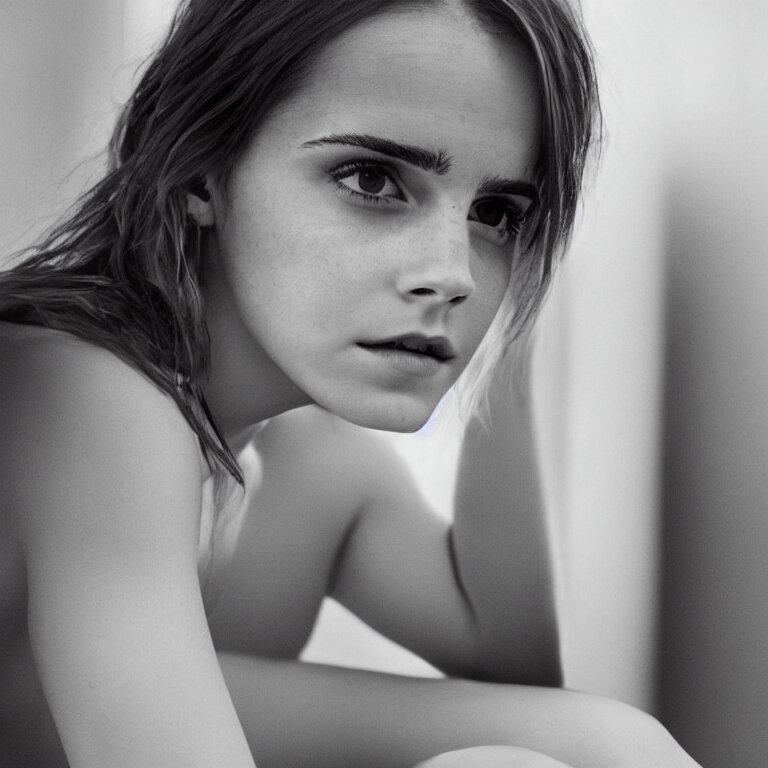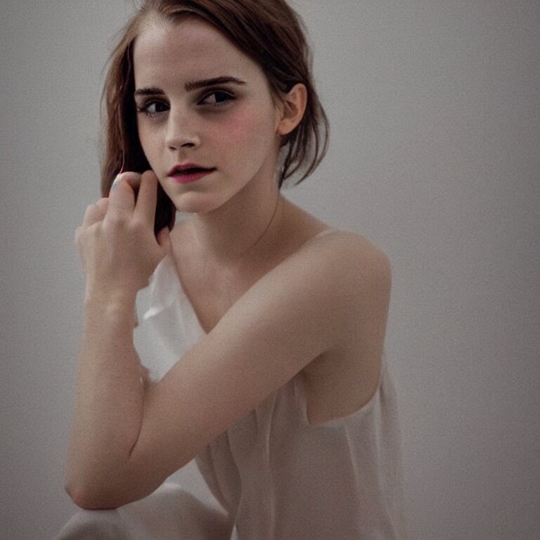 Cute emma watson in a white room, beautiful face, pale skin, rule of thirds, cinematic lighting, rainy weather, melancholy atmosphere, sharp focus, backlit, stunning, smooth, hard focus, full body shot, instagram photo, shot on iphone 1 3 pro max, hyper realistic
