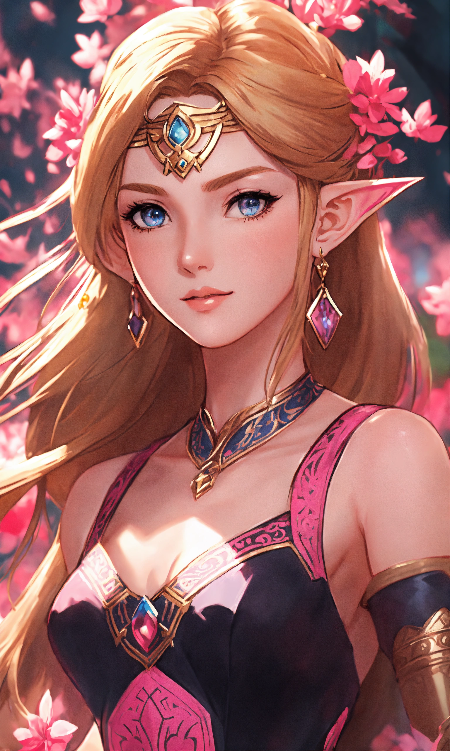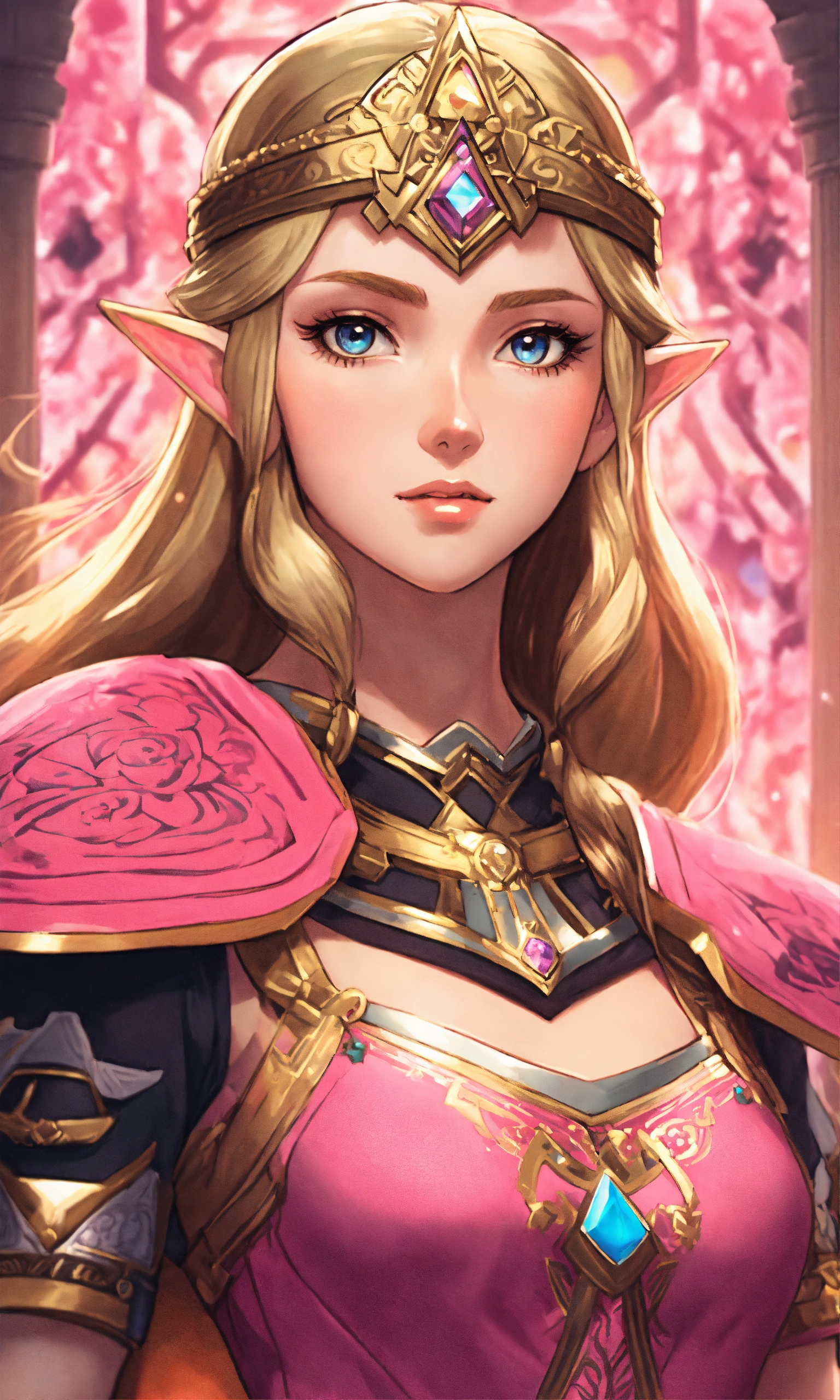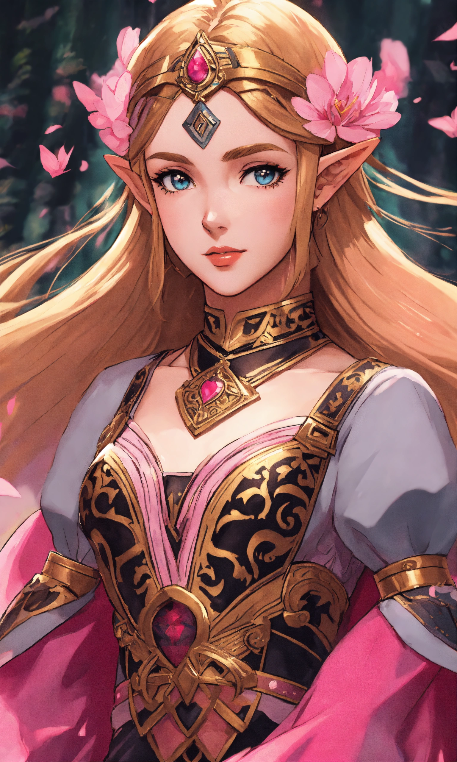 Anime artwork of princess zelda in a detailed intricate pink and black dress, stunning beautiful artwork, breath of the wild, 8k retro anime art, vintage 90's anime, akira style, by artgerm