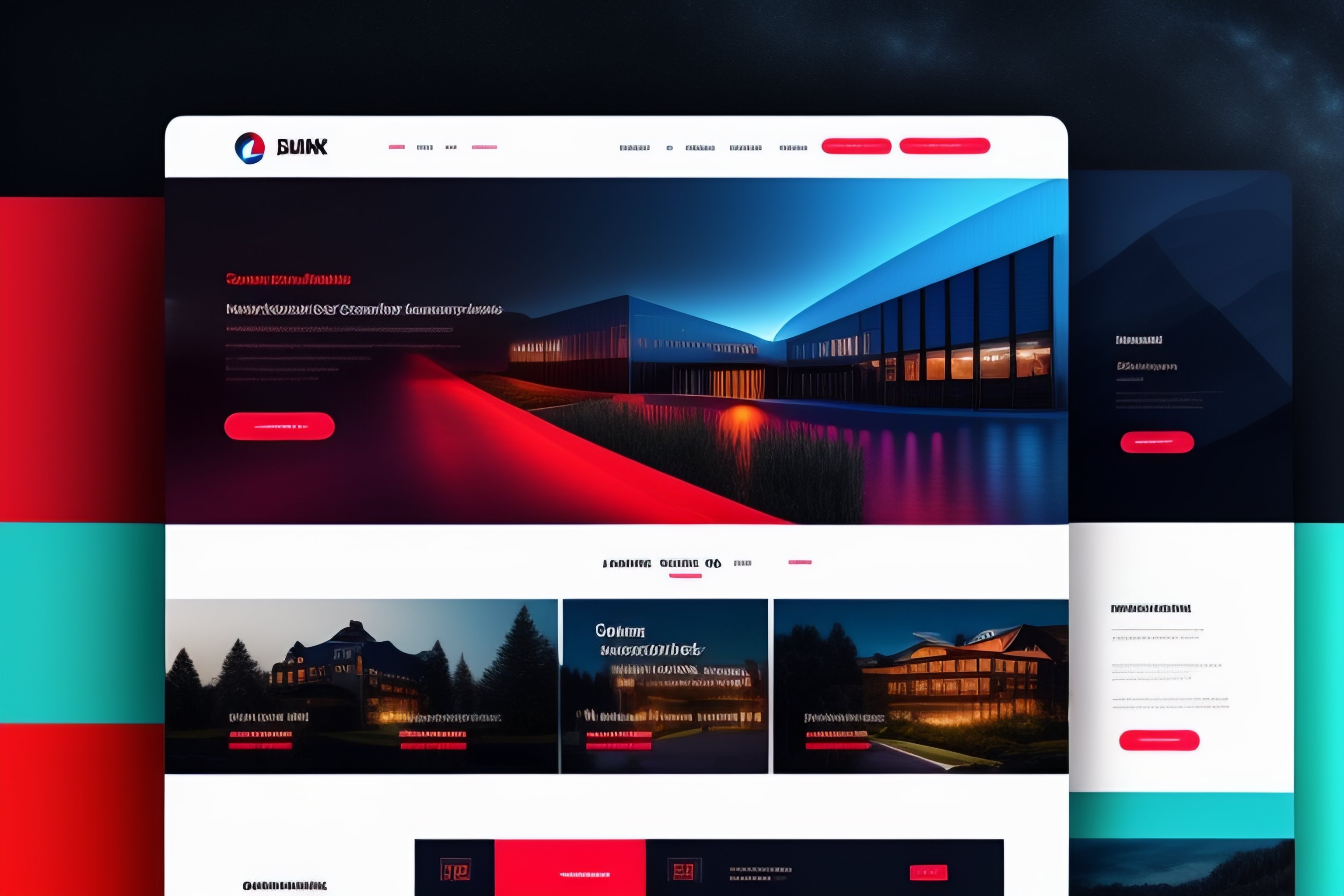 Beautiful landing page for a school website, dark theme, black blue and dark red color scheme, highly detailed