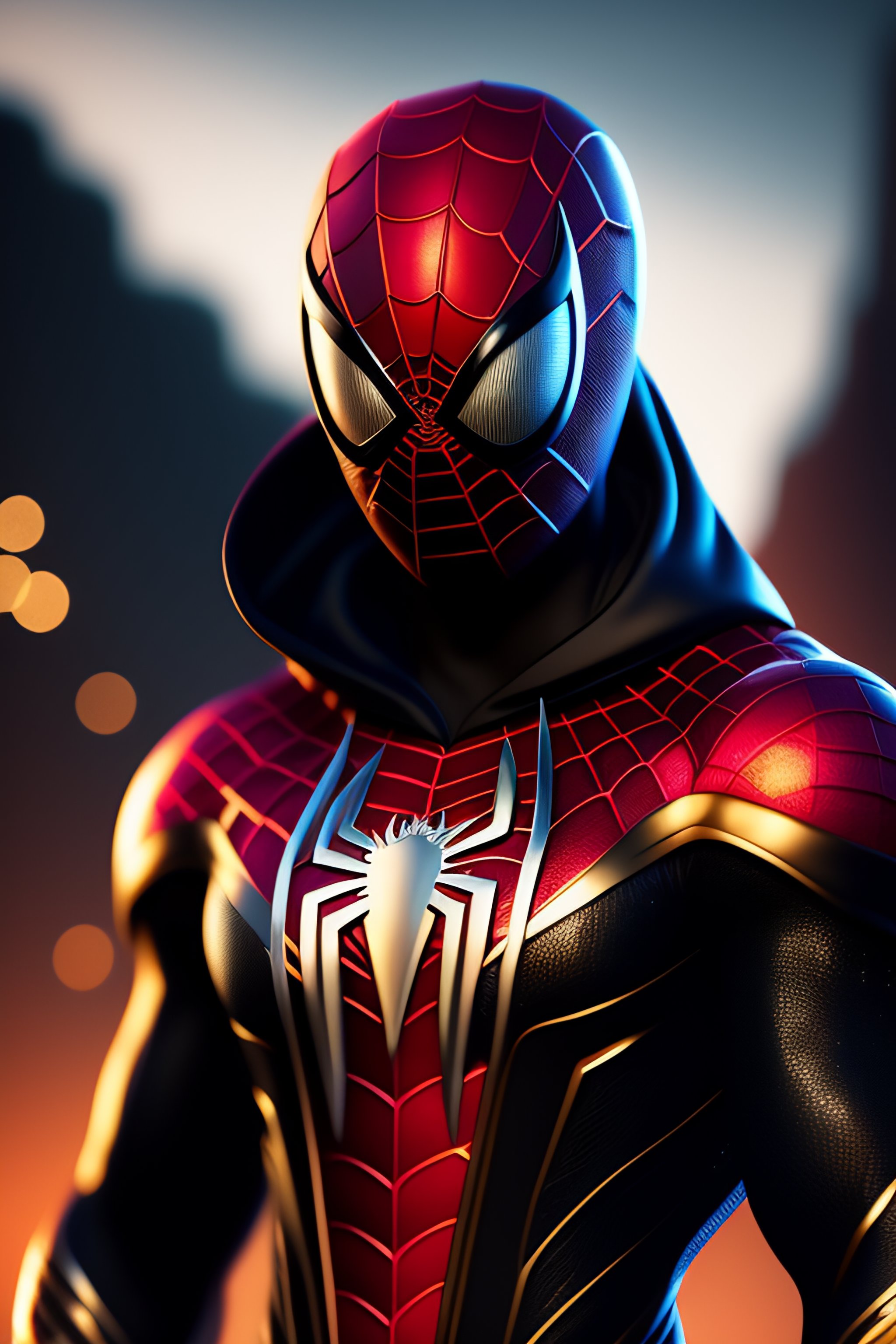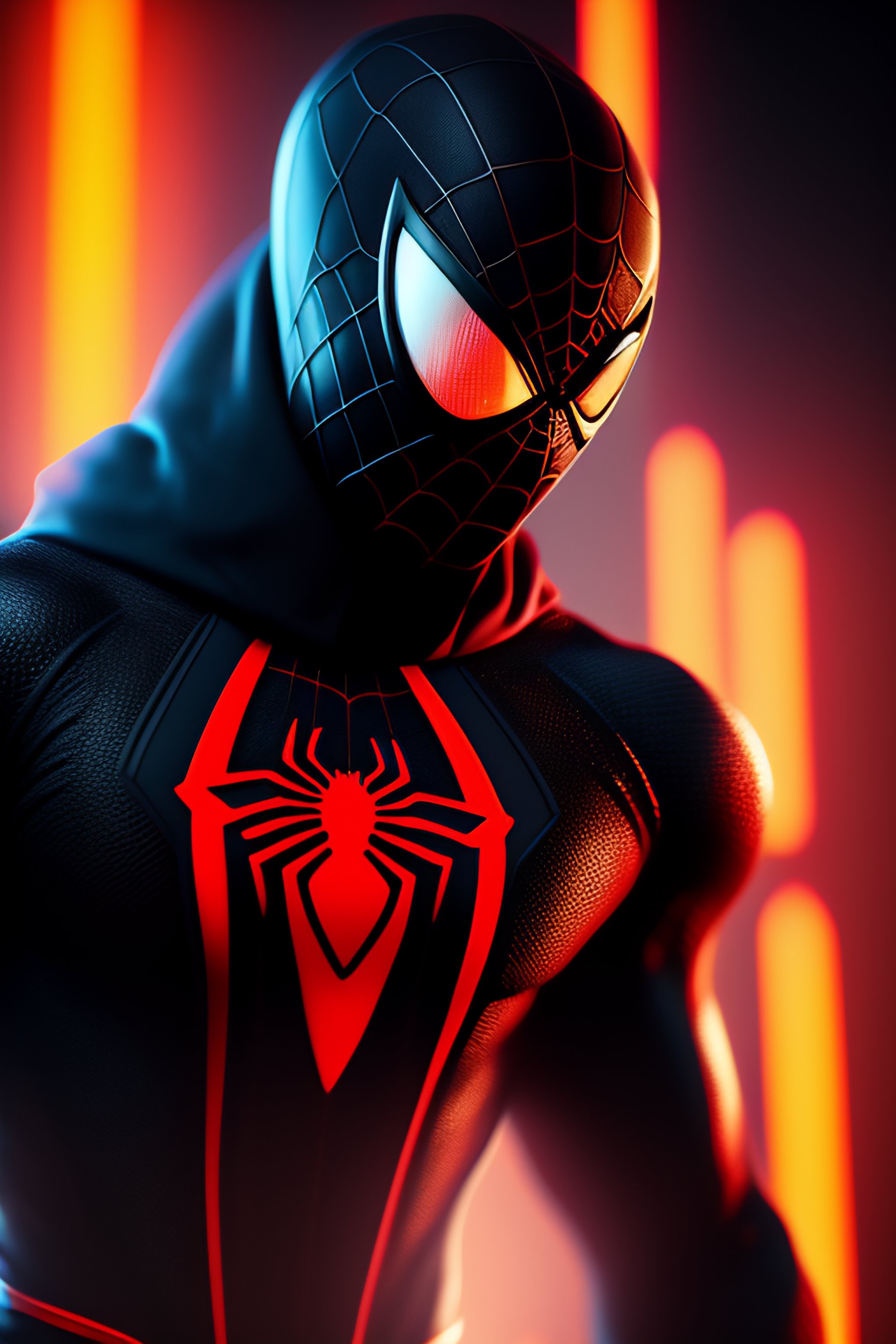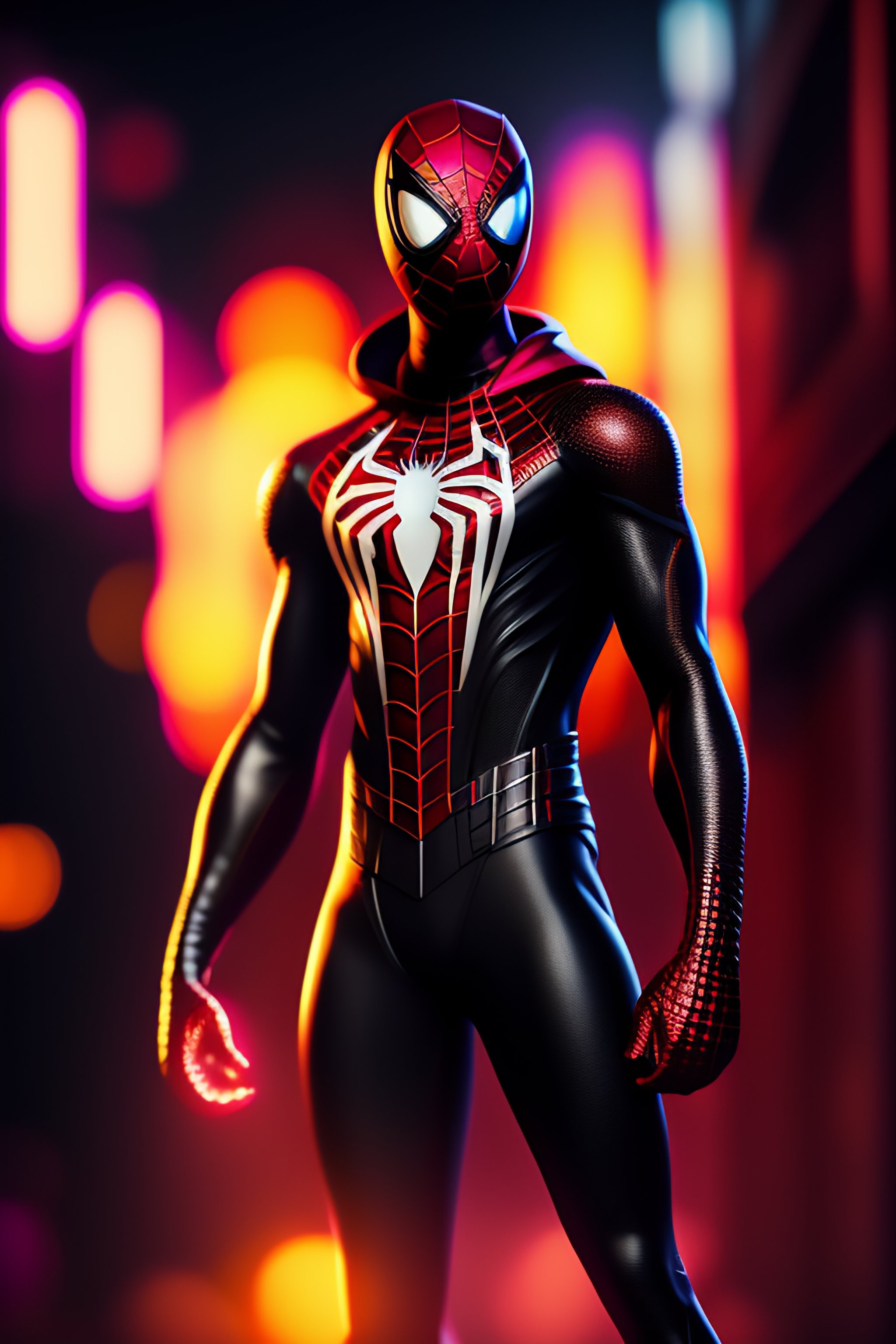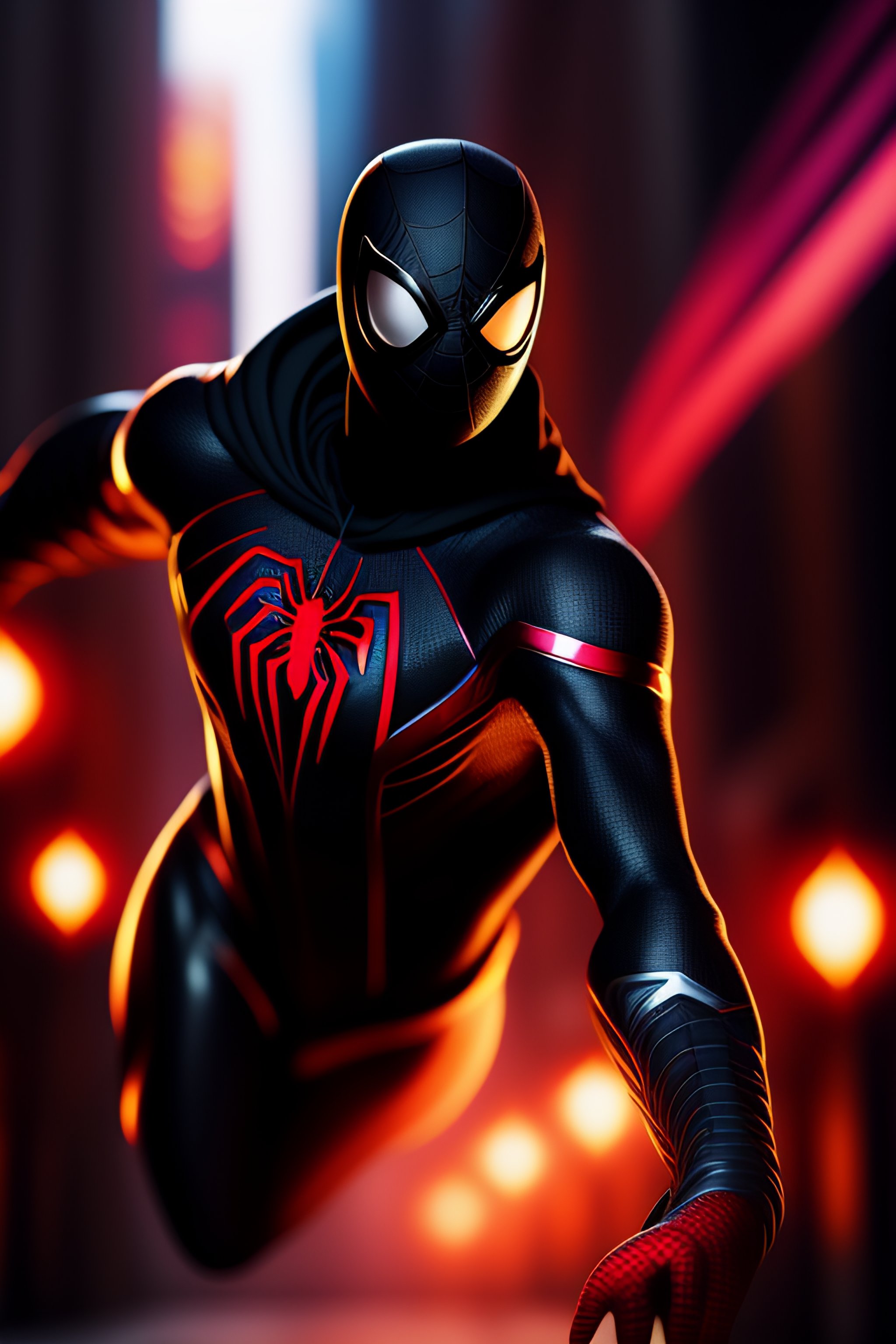 Black spiderman miles moralies, pose, wear black hoddies, black sreen background, full body, 3d modle, spiderman marvel style, with powerful colors, beautiful, colorful, powerful, intricate, detailed, massive, octane render, unreal engine, ray tracing