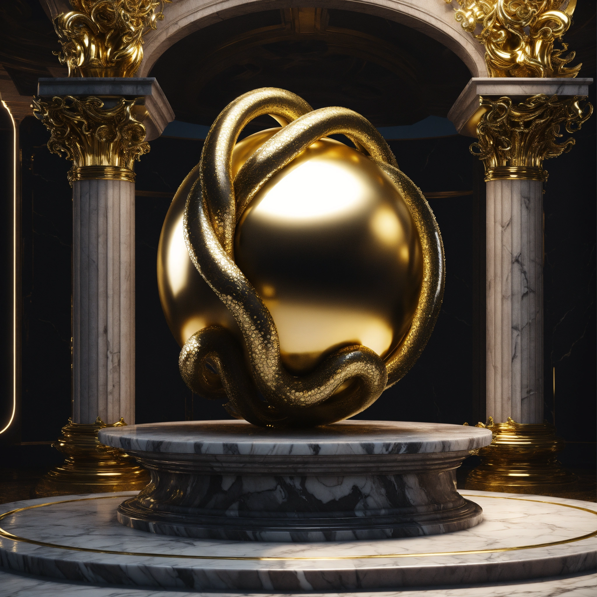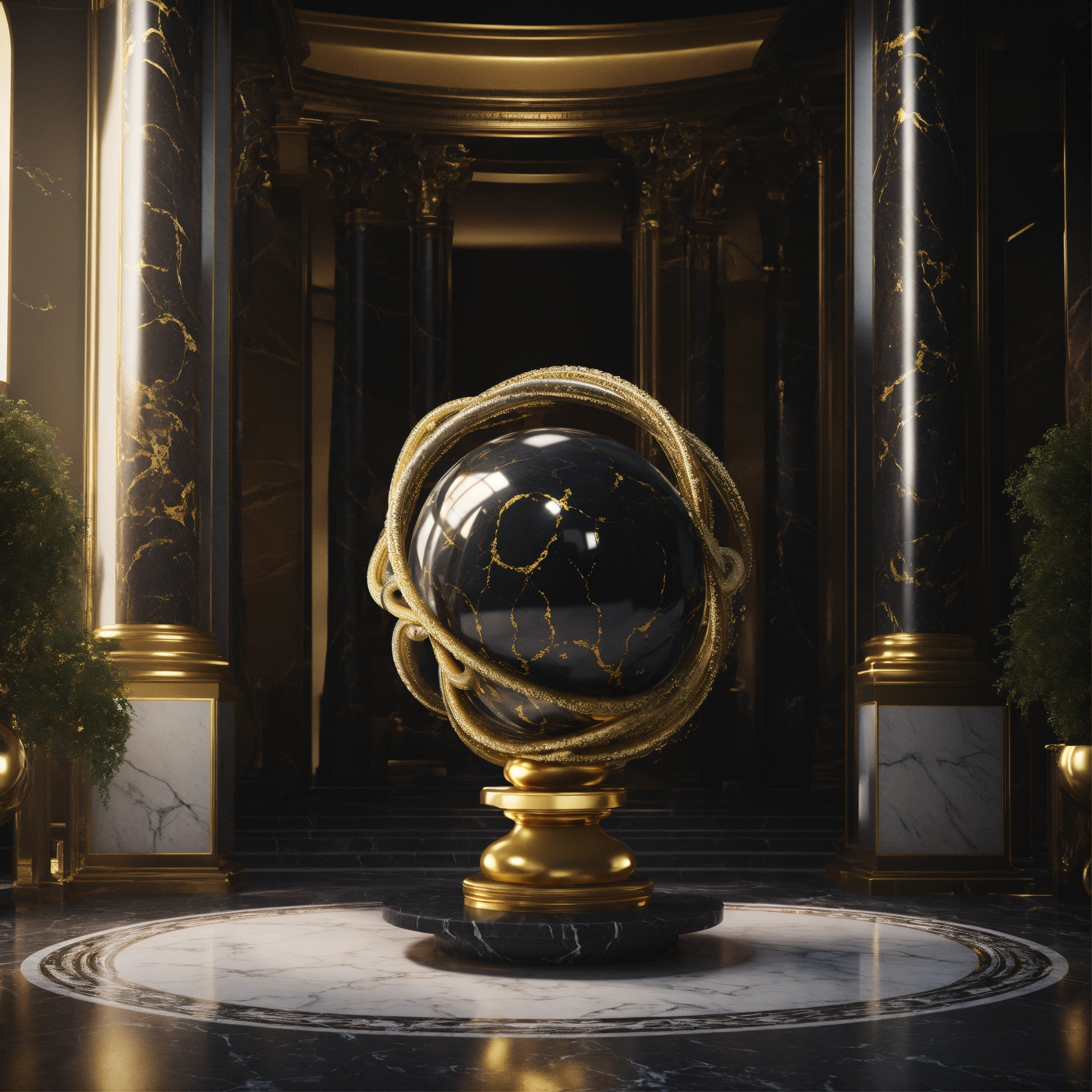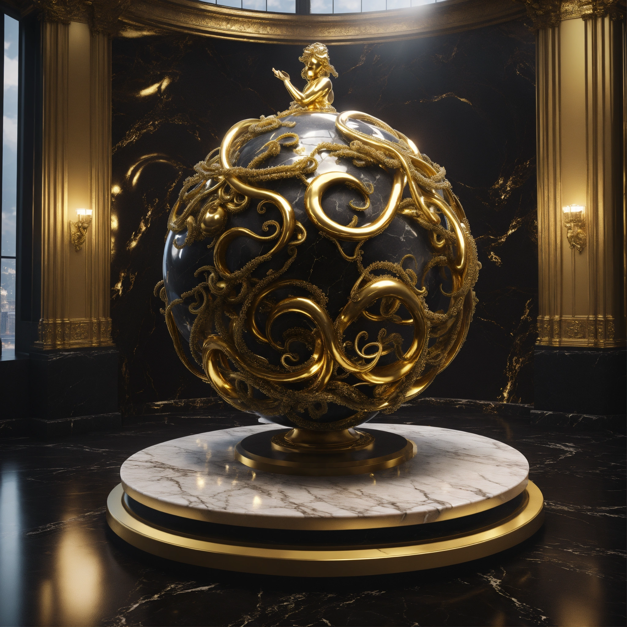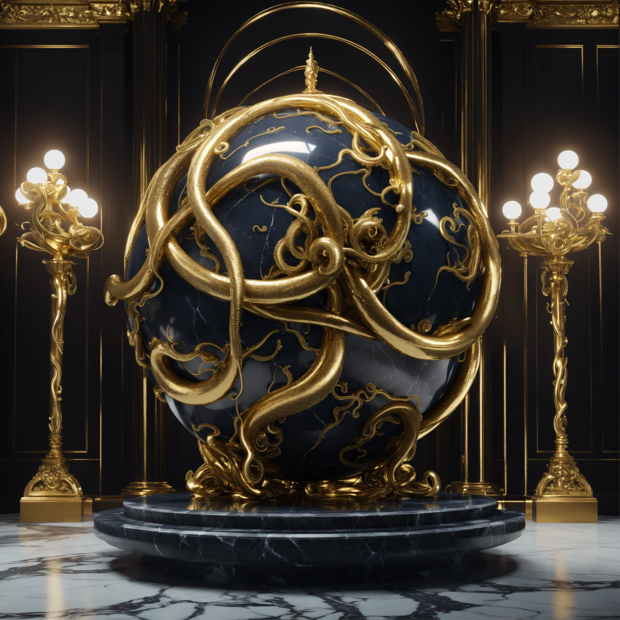 A statue of marble sphere with tentacles contorting around a sphere, statue, dark marble, gilded, 8k unreal engine render, photorealism, surreal