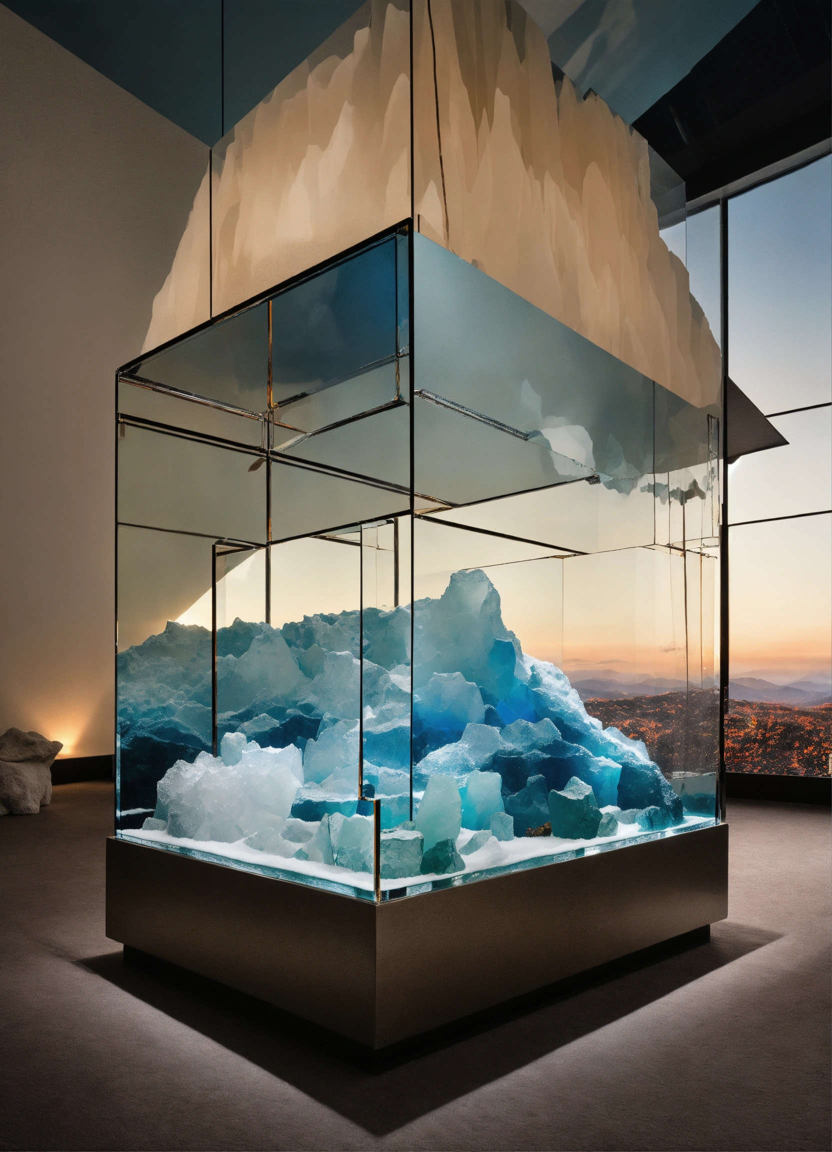 Minimalist metropolis liminal memphis horse hair double height chic deco chrome plexiglass glass crystal acrylic arte povera panorama alps glacier snow ice james bond lalique diamond zebra jewlery salt ocean cloud sky aquarium