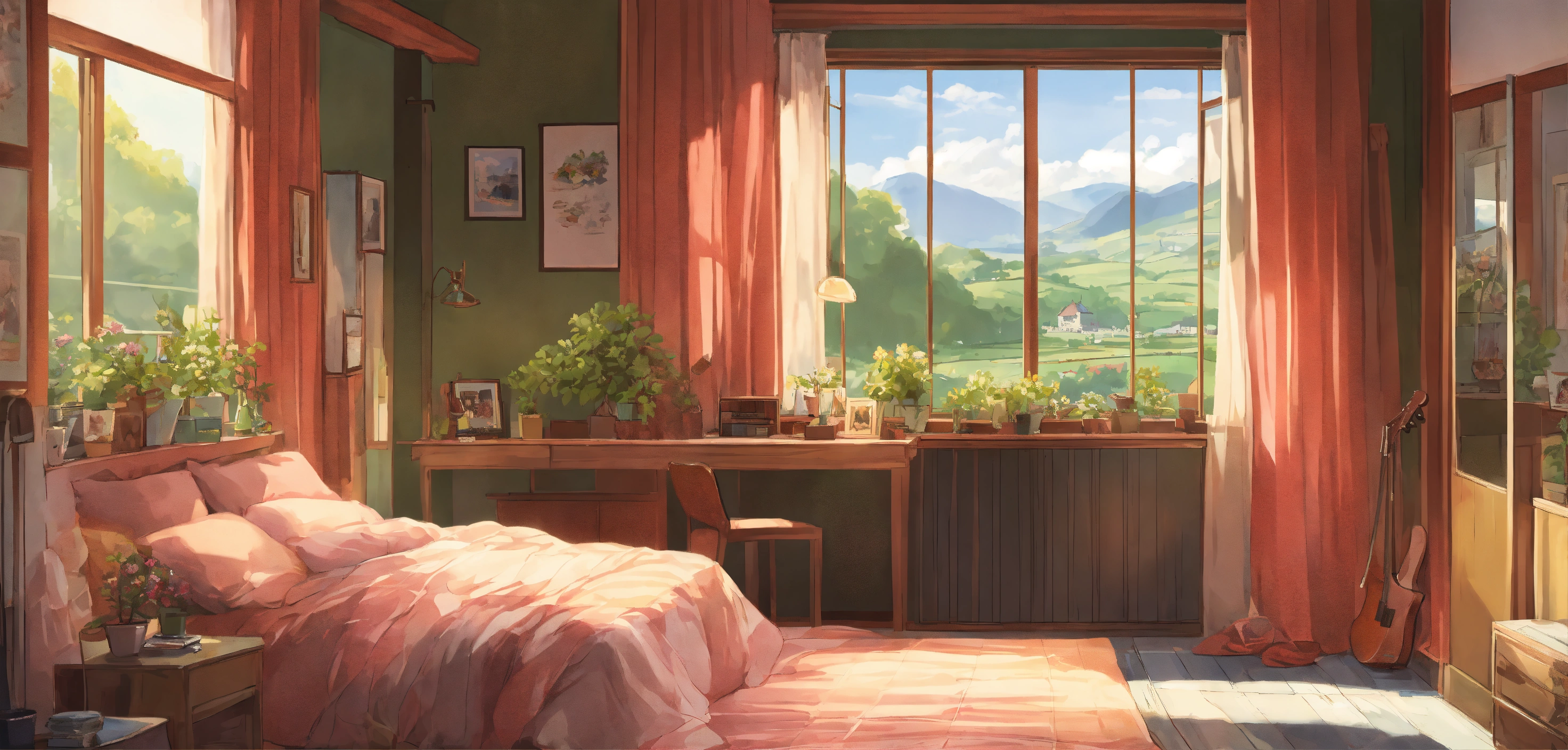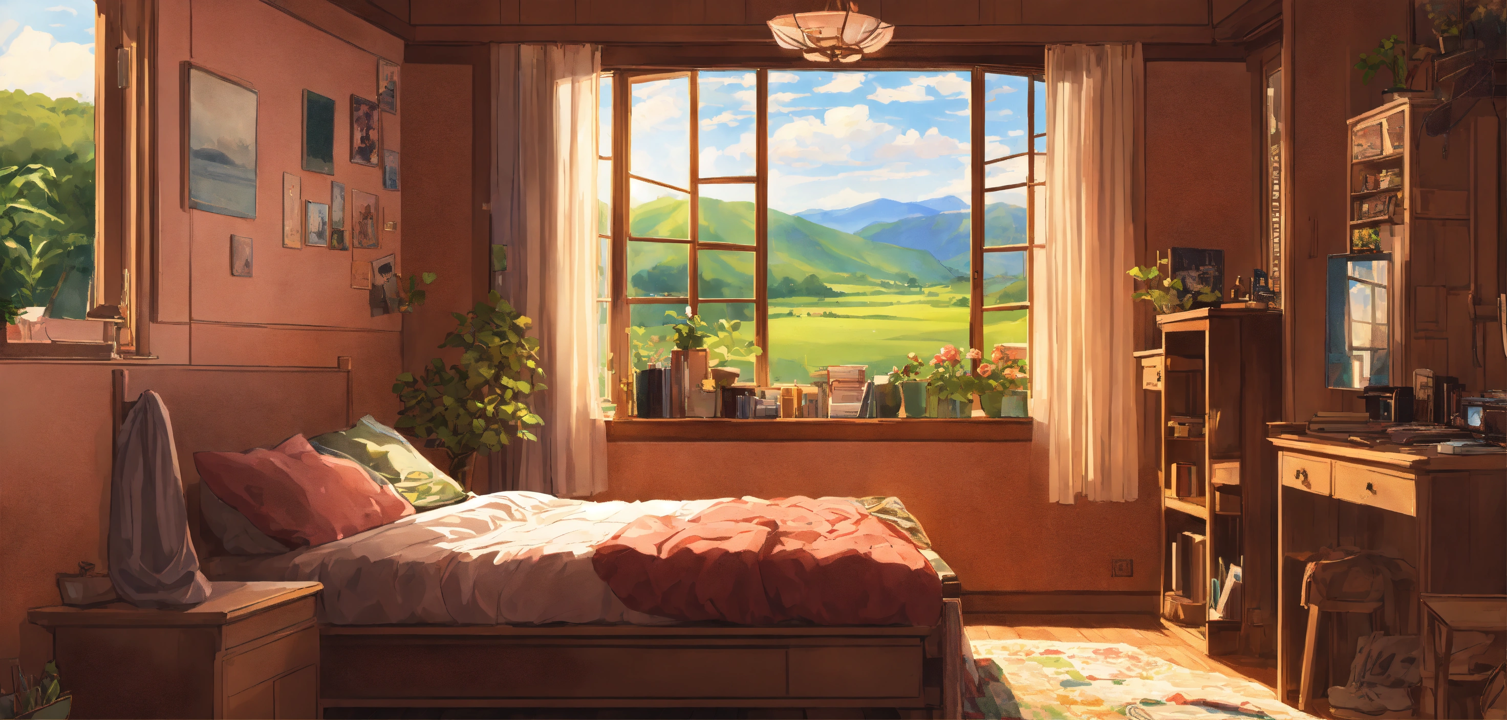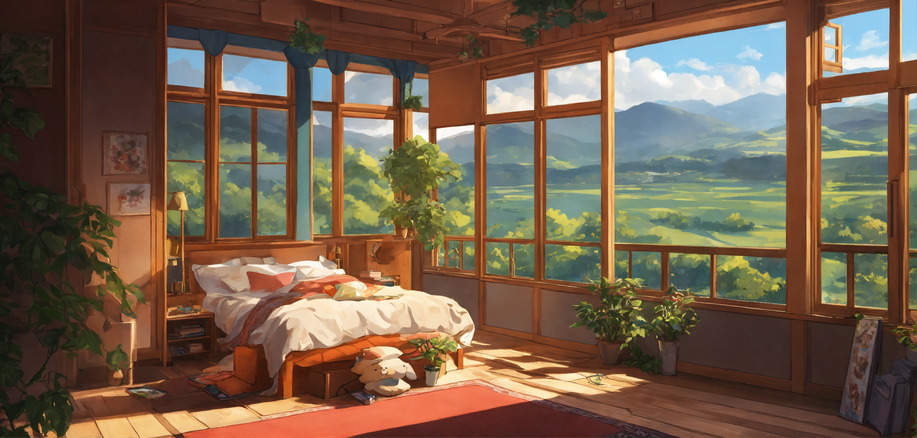"Do not include any errors or inaccuracies in the portrayal of the young woman's features, clothing, or surroundings. Strive for precision and realism." "Ensure that the anime-style drawing of the young woman is free from any anatomical or proportional mistakes." "Eliminate any errors related to the background details, especially the countryside landscape visible through the large window. It should be realistic and consistent." "Avoid any distortions or unrealistic elements in the artwork. Keep the focus on achieving a highly detailed and accurate representation."
