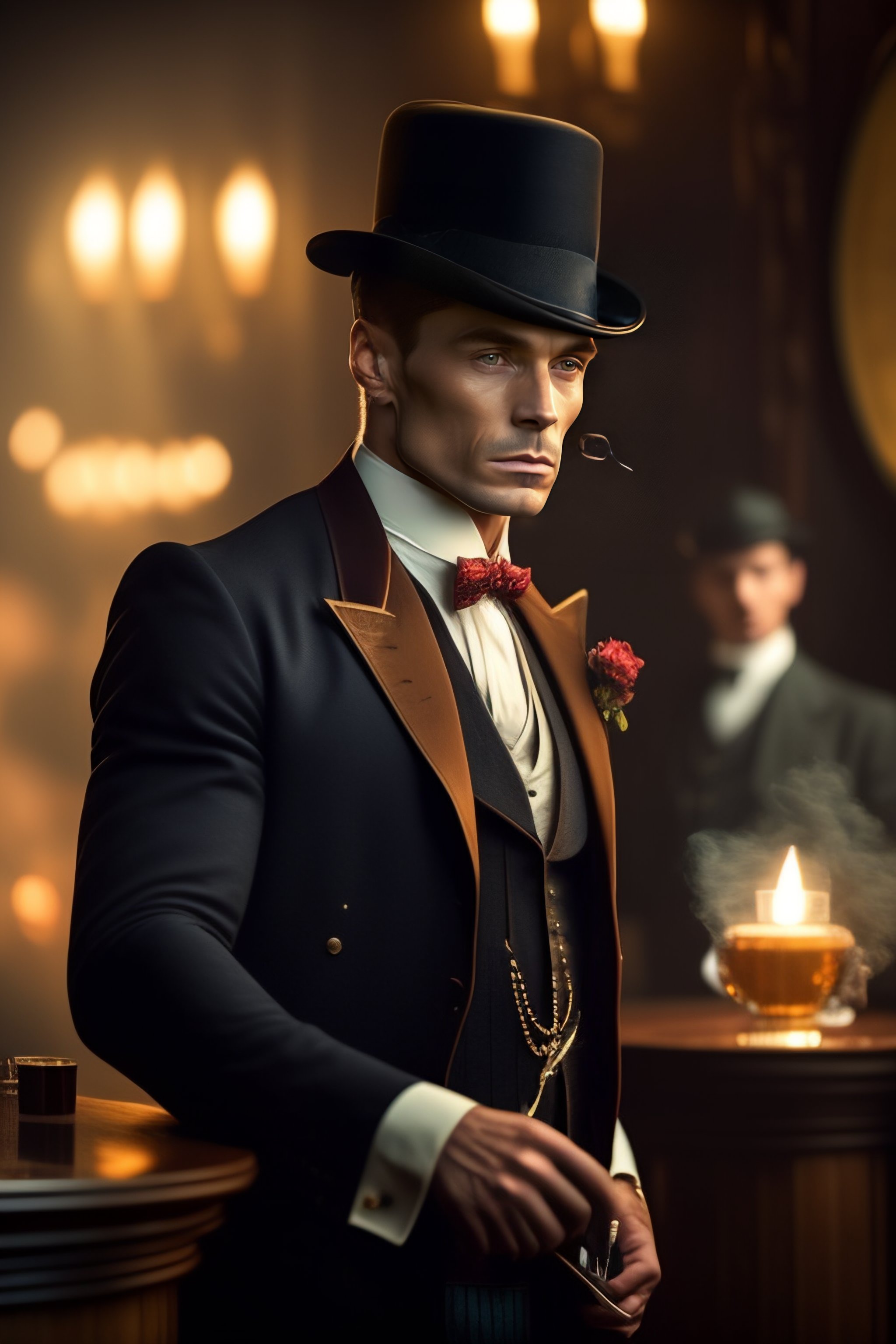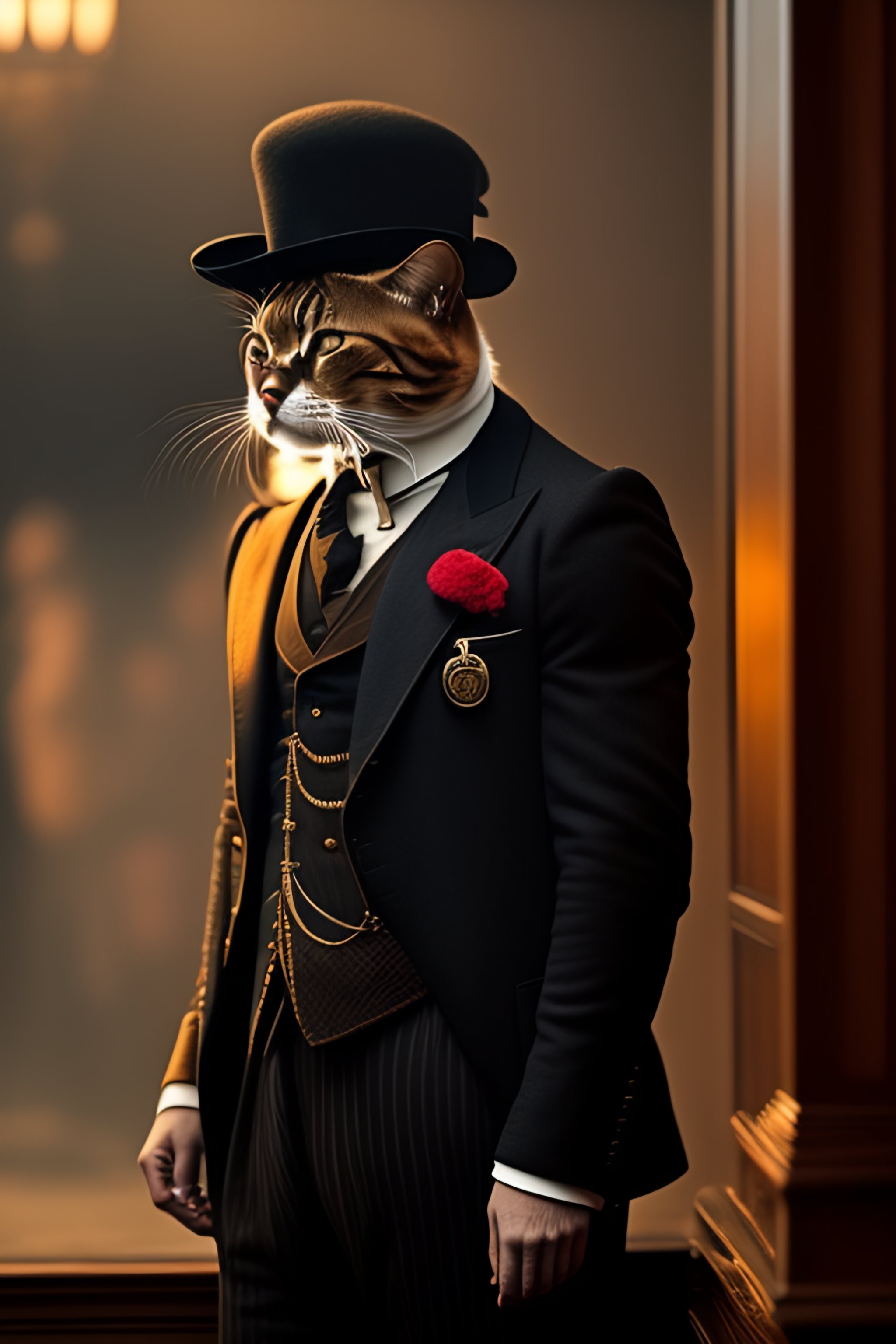 A cat dressed like it's a person on the show "peaky blinders"