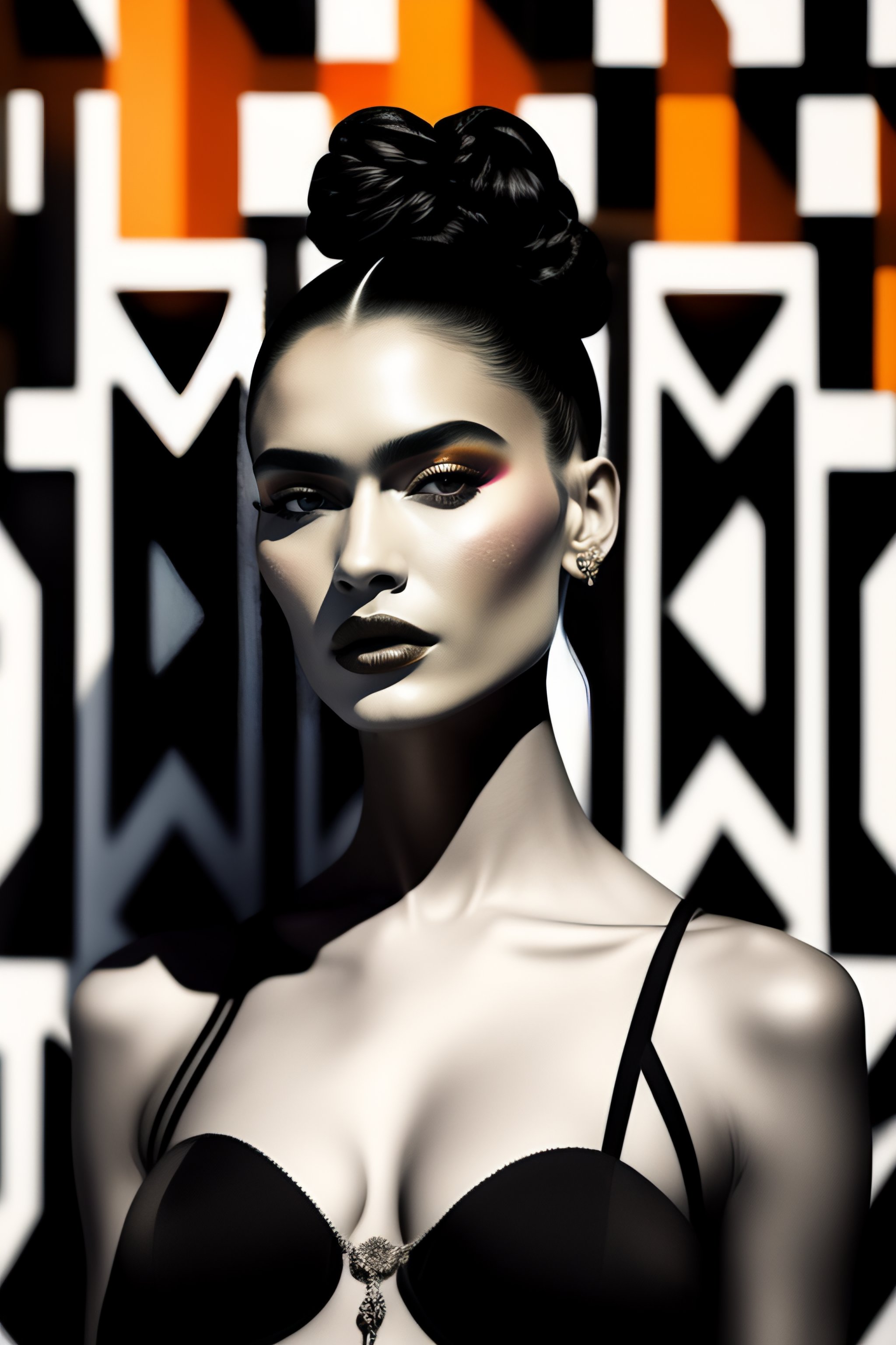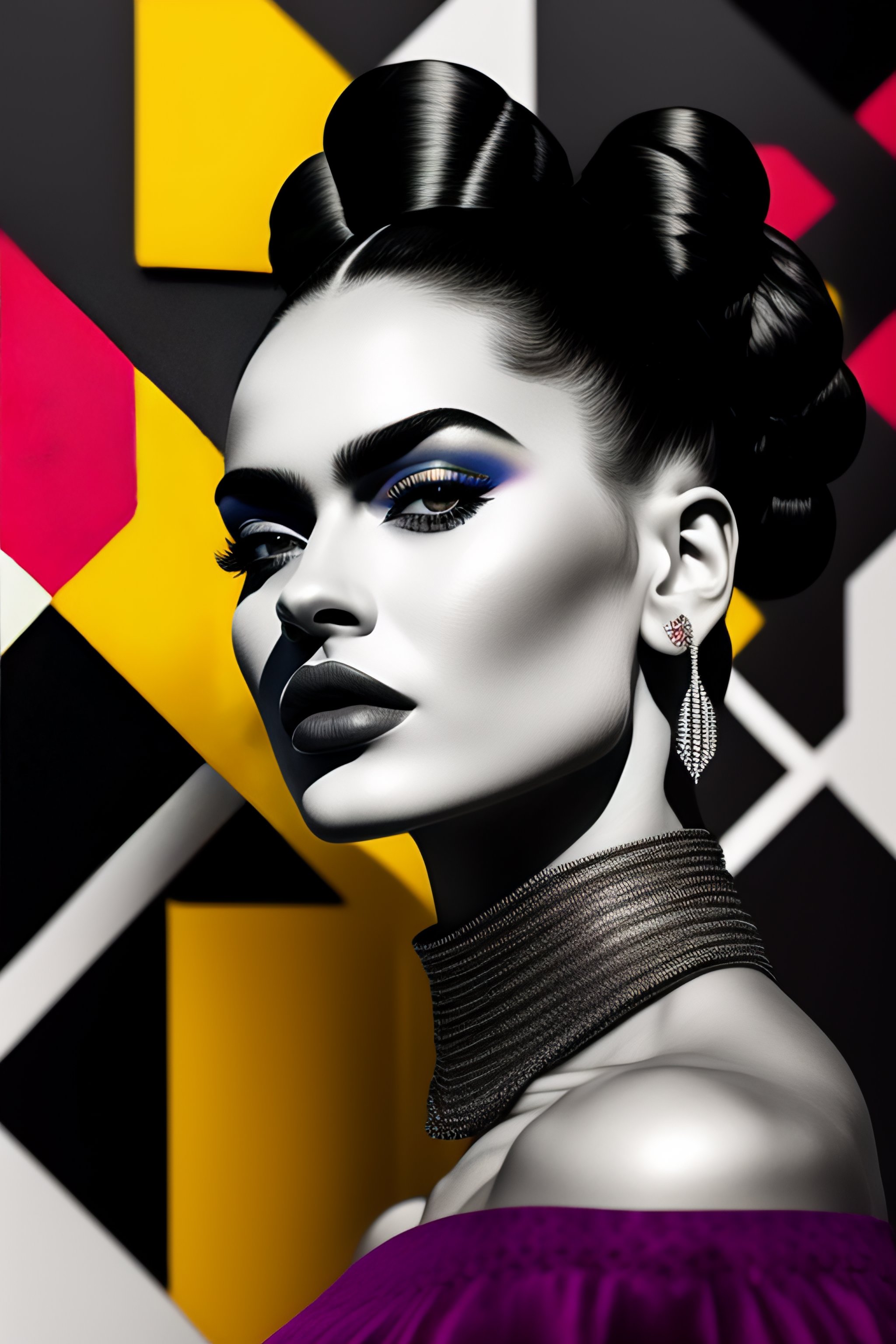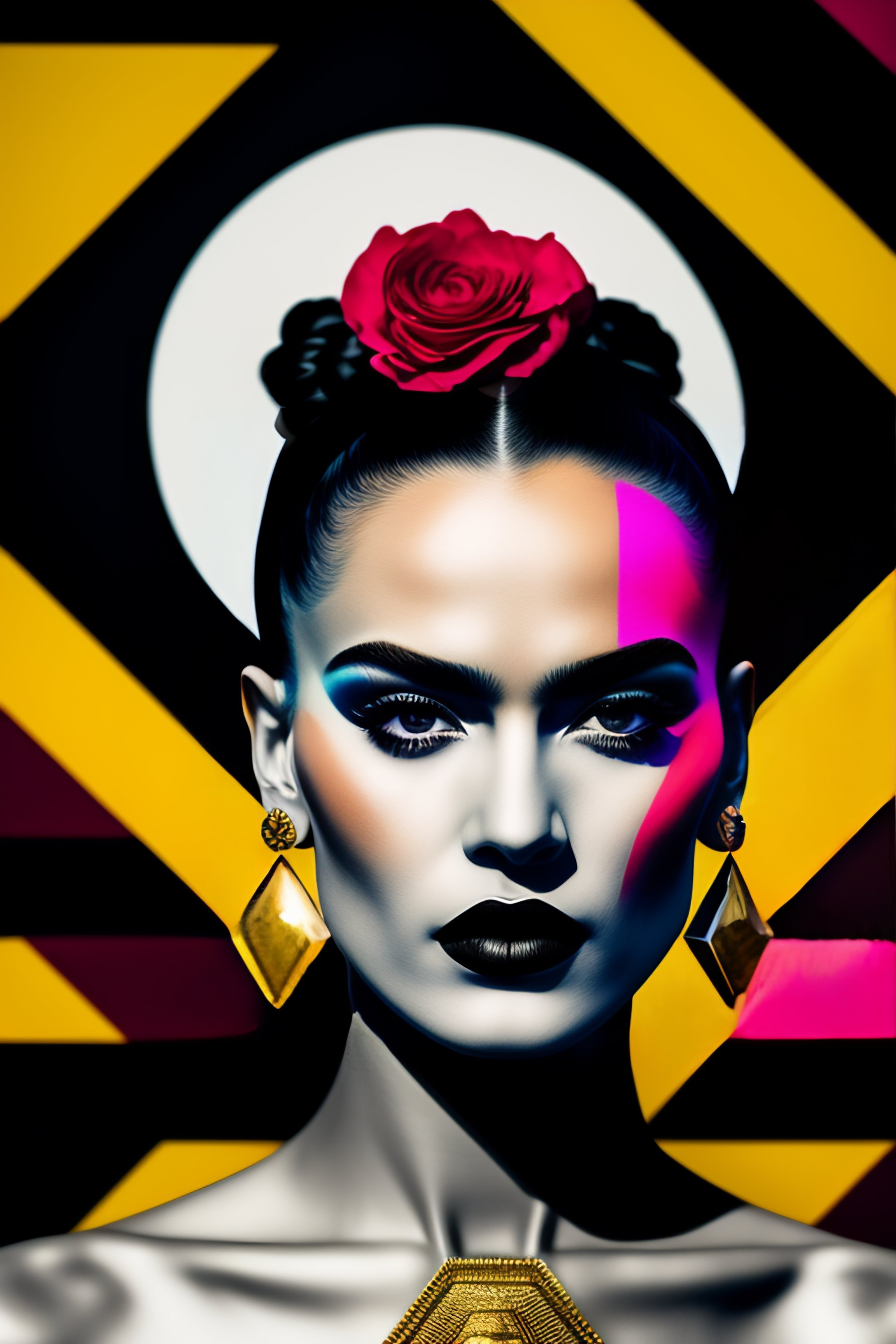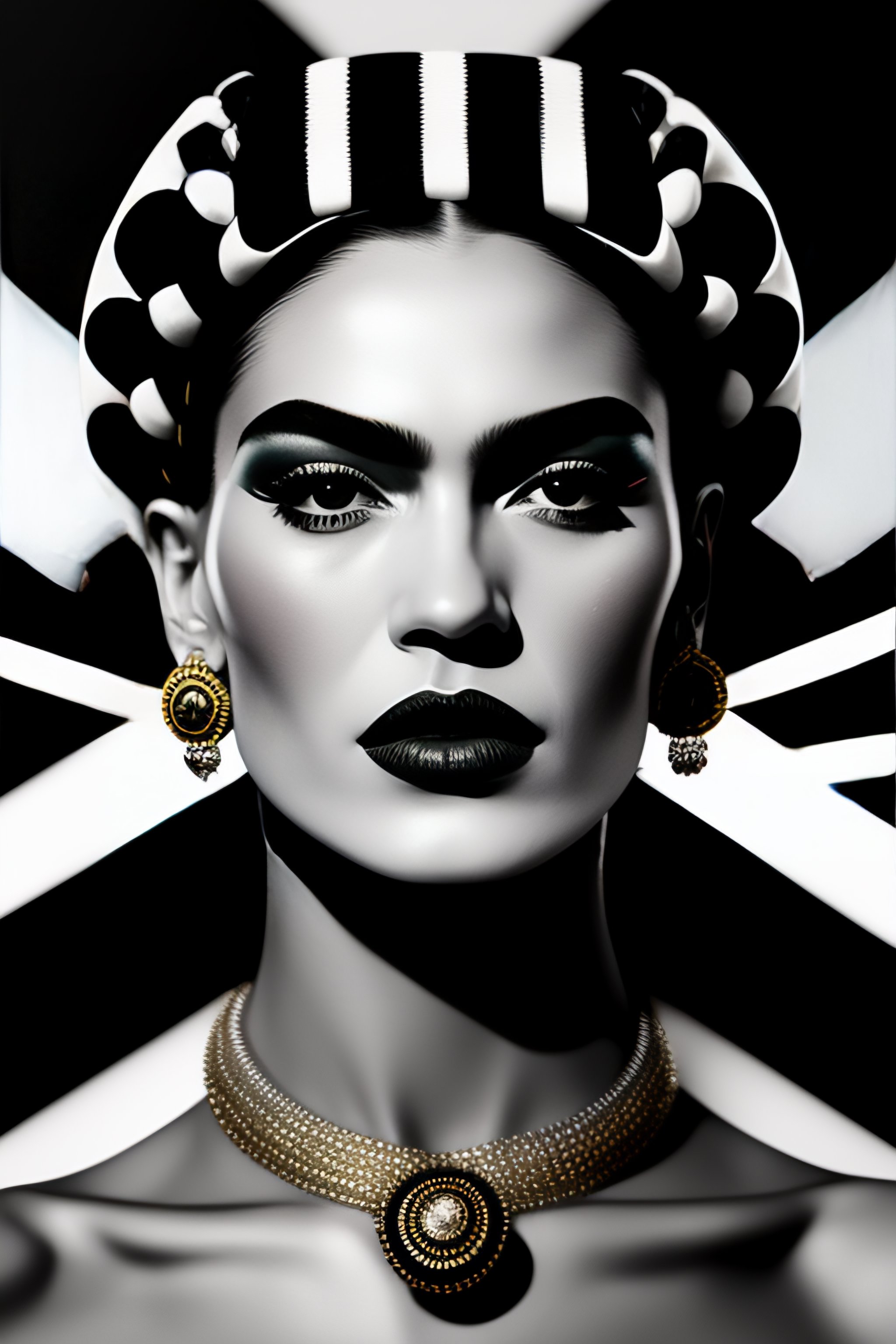 Op art, frida kahlo portrait in sexy posture, fashion model in street of graffiti wall, collage, goldblocks, brutalism, arabic calligraphy black and white, portrait by christian hilfgott brand, behance contest winner, pop surrealism, behance hd, dc comics, reimagined by industrial light and magic silver