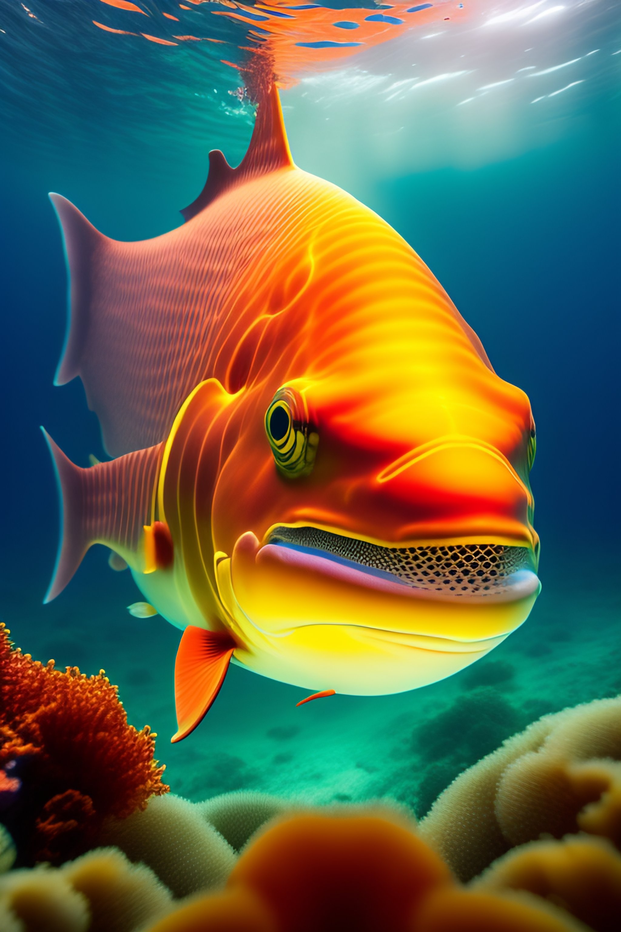 An orange leviathan at the bottom of the sea