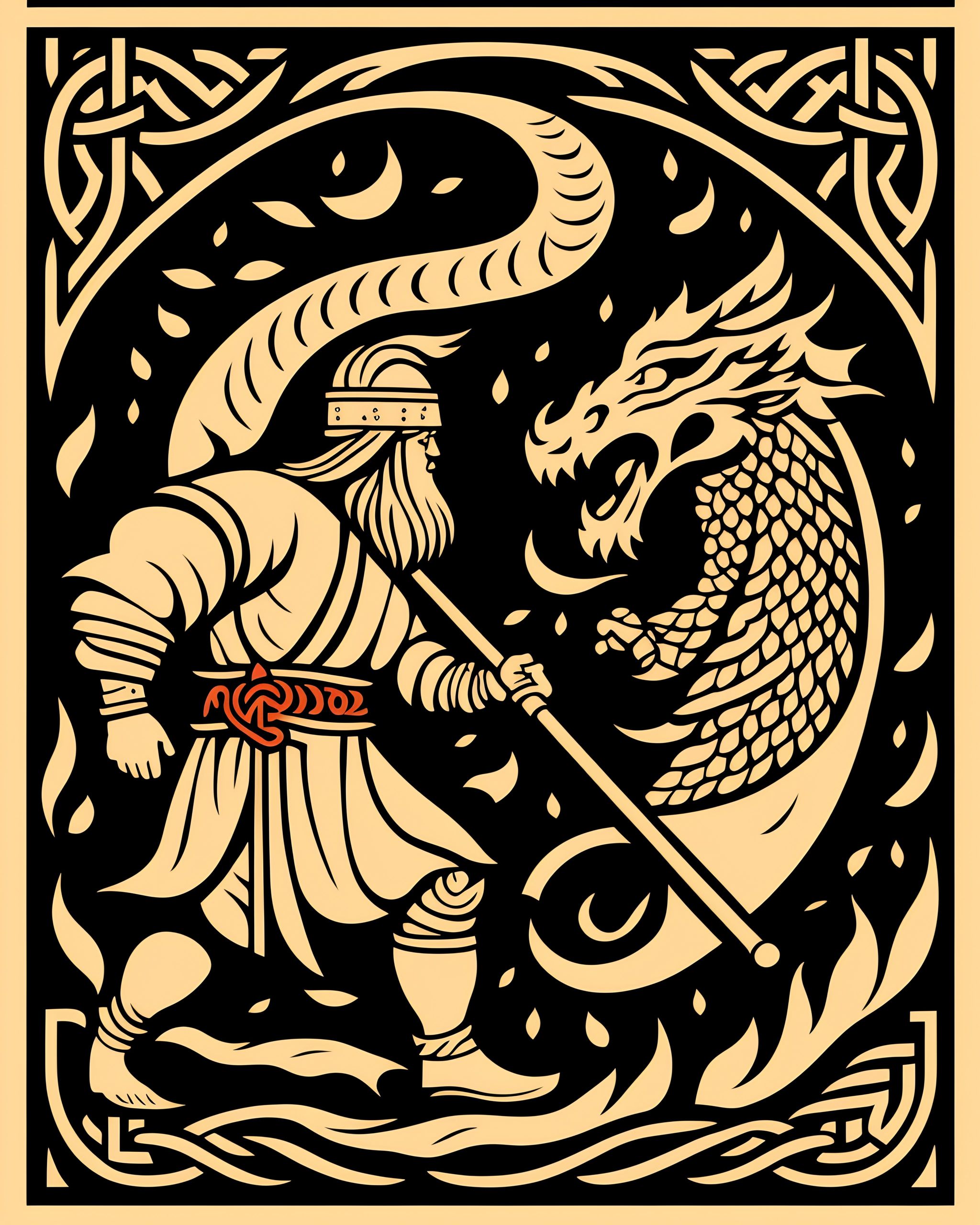 Peasant and dragon combat
