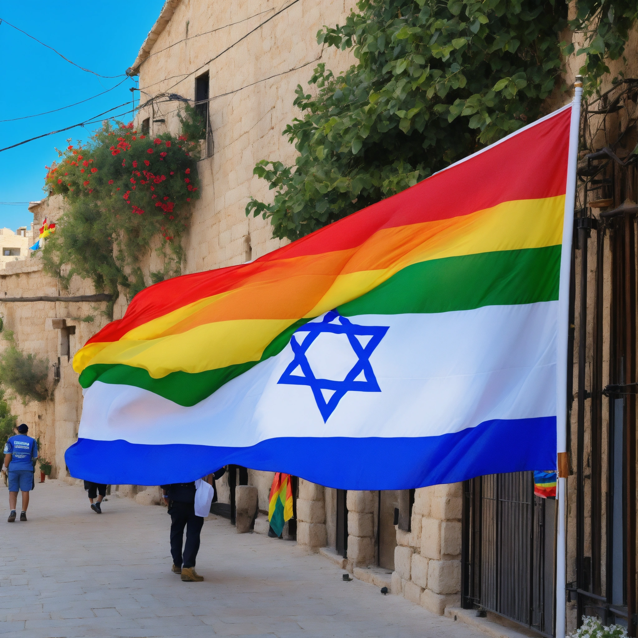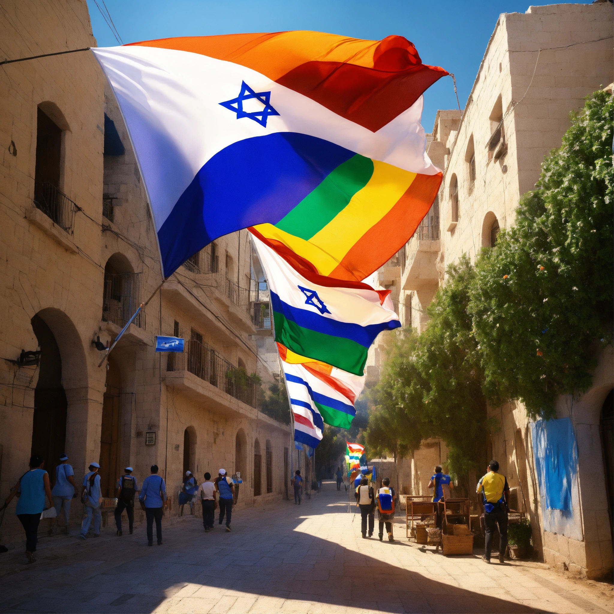 The israeli flag combined with the colors of pride in an atmosphere of assistance and help to the community