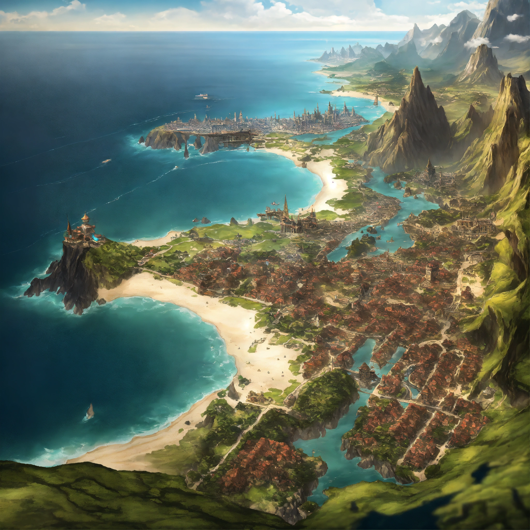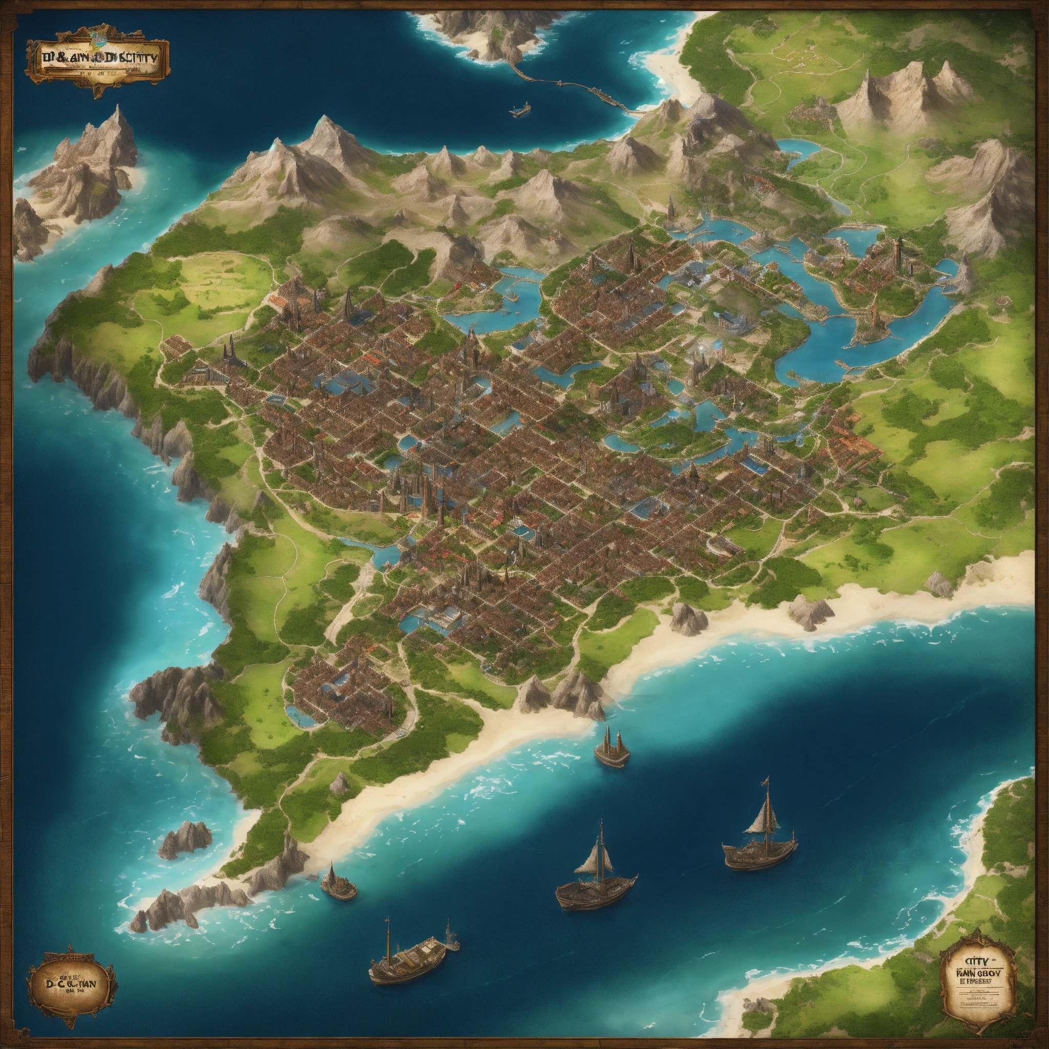 D&d city map with an ocean on the right side. d&d
