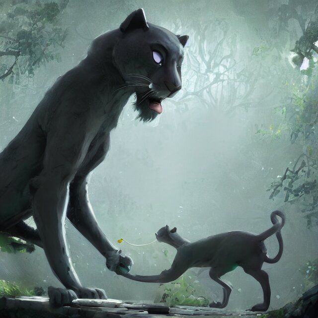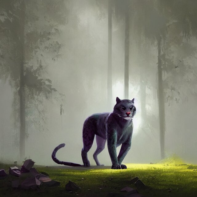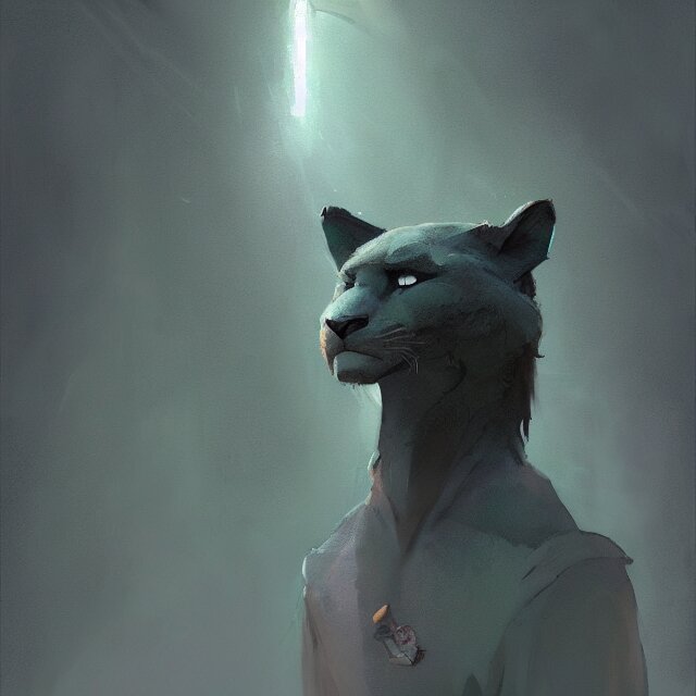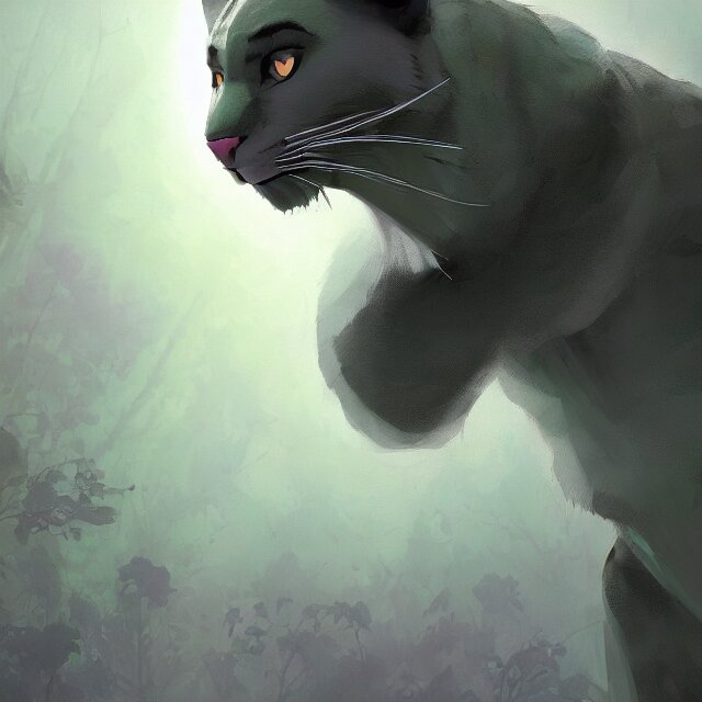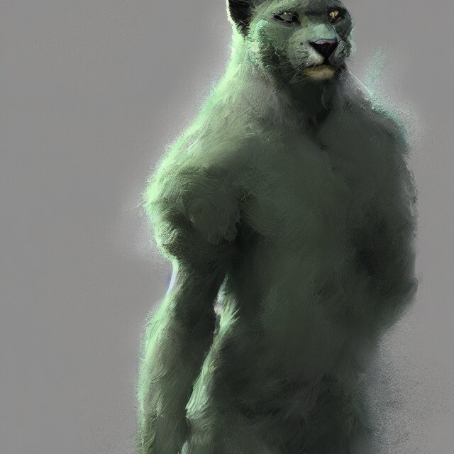 A beautiful painting of a handsome anthropomorph gray panther furry fursona. green fog. disney character design by cory loftis, fenghua zhong, ryohei hase, ismail inceoglu and ruan jia. artstation, volumetric light, detailed, photorealistic, rendered in octane