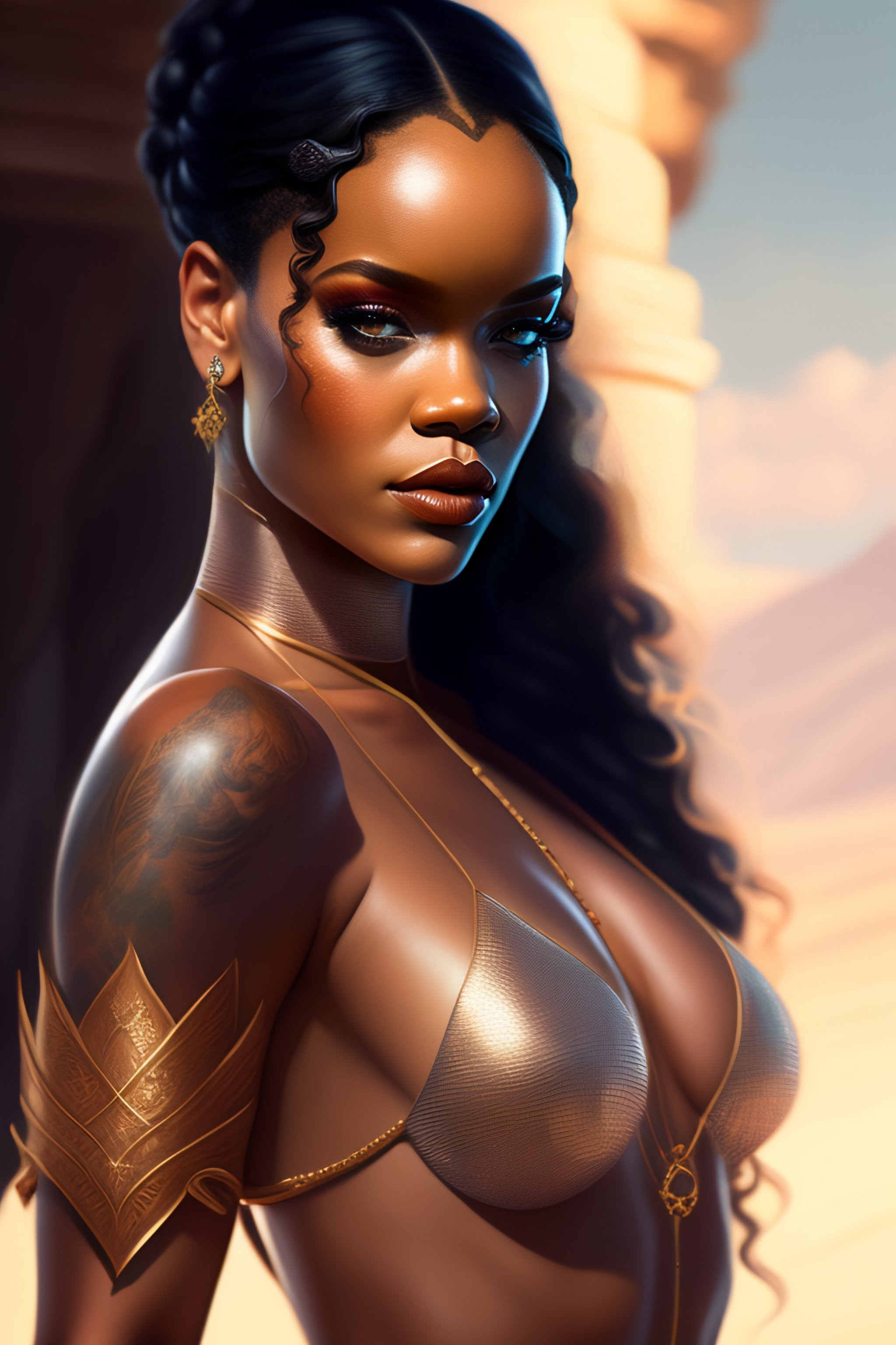 Wide angle shot, full-body of rihanna as daenerys targaryen in transparent bikini, hand between legs, pretty face, intricate, elegant, highly detailed, digital painting, artstation, concept art, smooth, sharp focus, illustration, art by jordan grimmer and greg rutkowski, massive huge bust